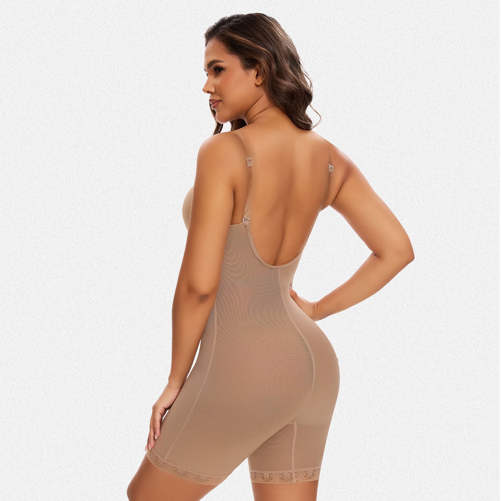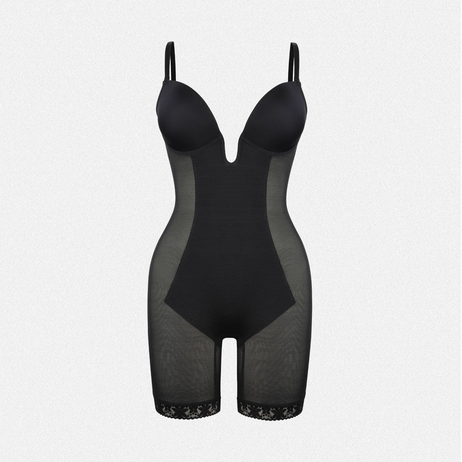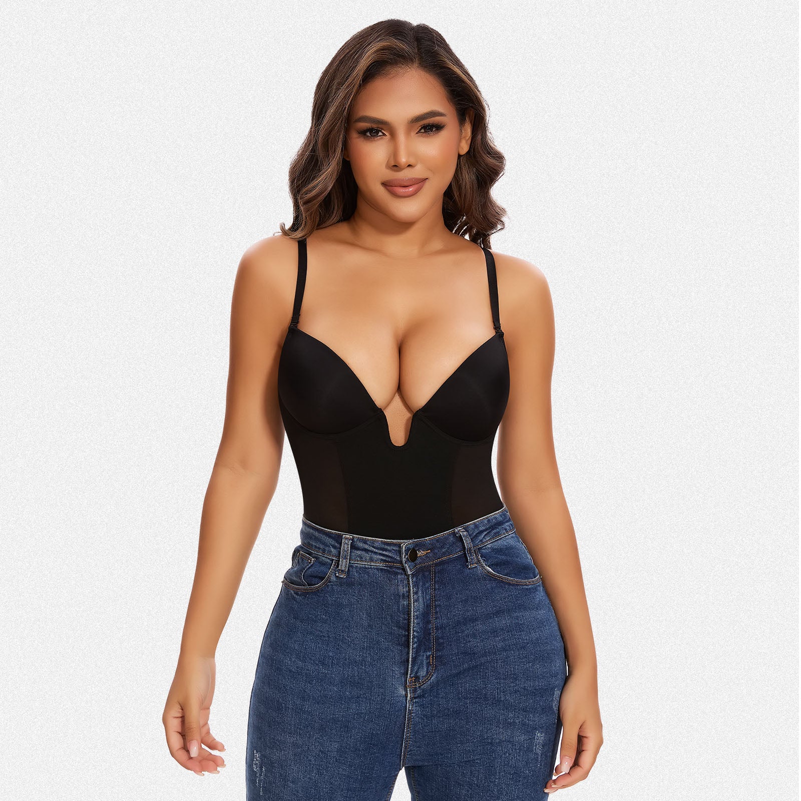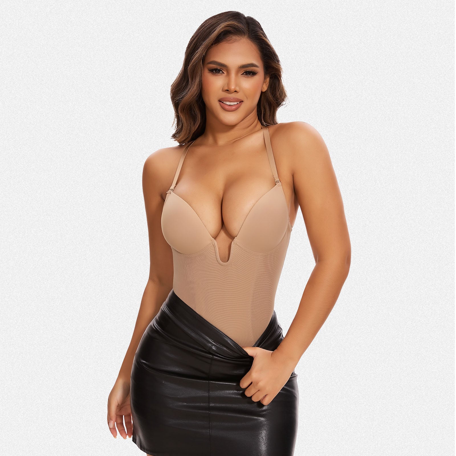 The Shaperin Backless U Plunge Shapewear Bodysuit Strapless Full Body Shaper is the perfect solution for invisible shapewear that seamlessly integrates with your wardrobe. Ideal for daring dresses, formalwear, and low-back outfits, this bodysuit offers both elegance and practicality. Revel in the comfort of convertible and adjustable straps, while the advanced shaping fabric highlights your best features. Say goodbye to low-back and low-front struggles and hello to a lifted butt with the revolutionary Low-back design.