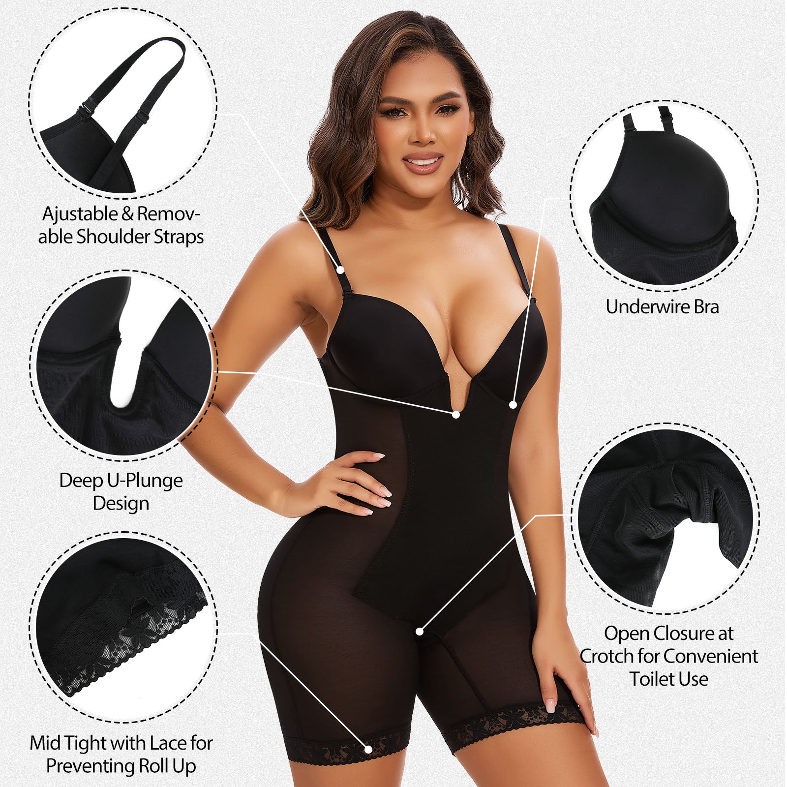 Shaperin Backless U Plunge Shapewear Bodysuit Strapless Full Body Shaper