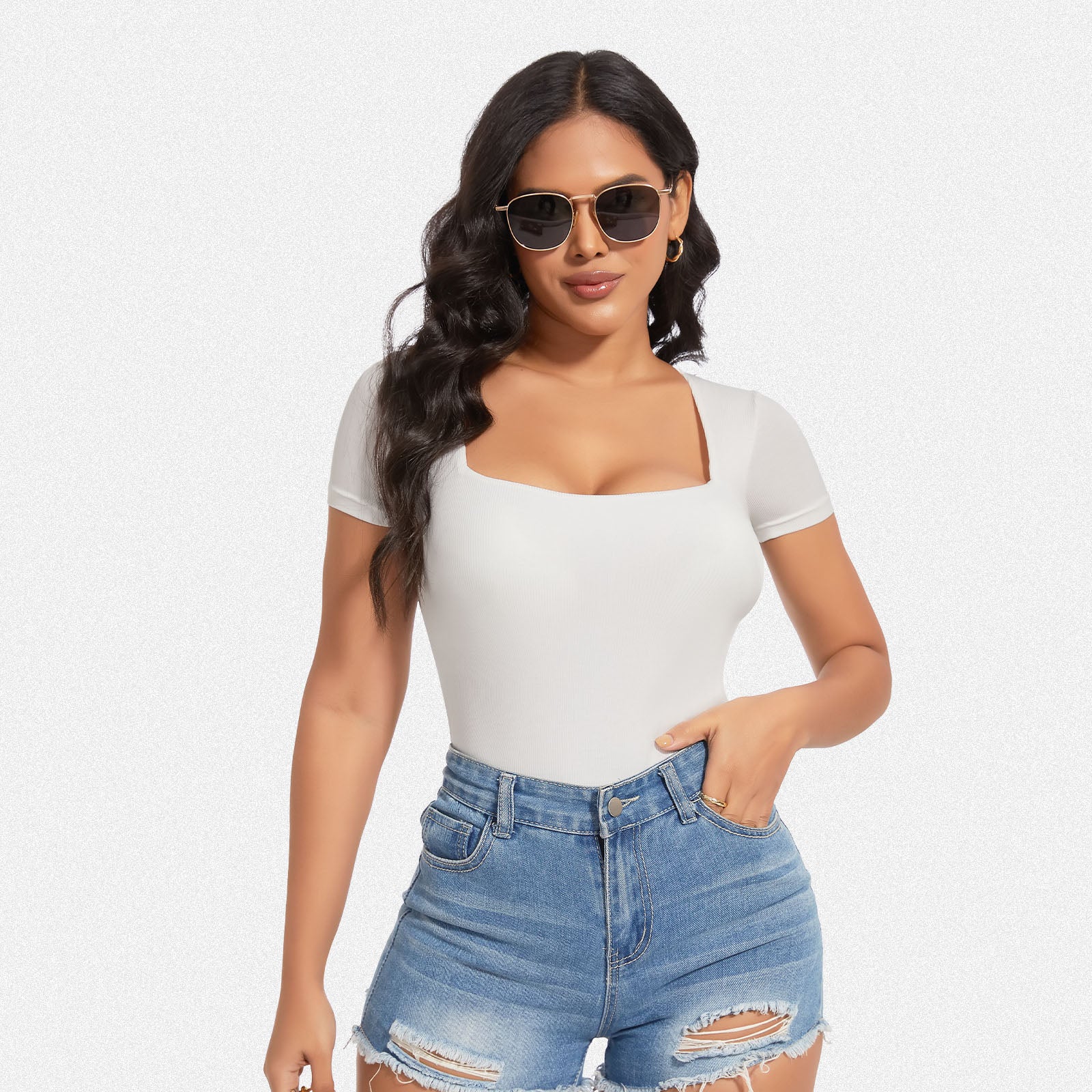 Shaperin Built-In Shapewear Bodysuit 3-In-1 Short Sleeve Top
