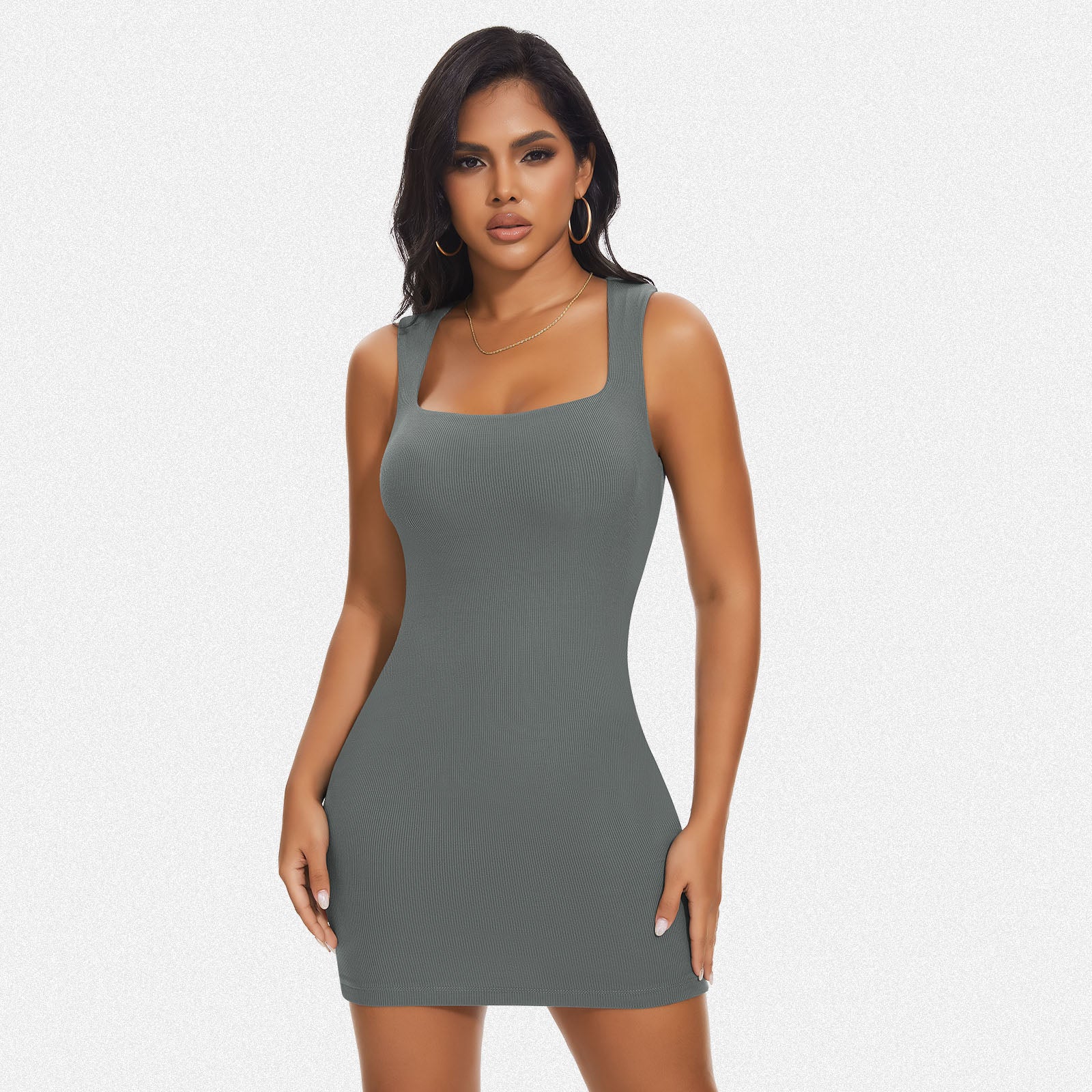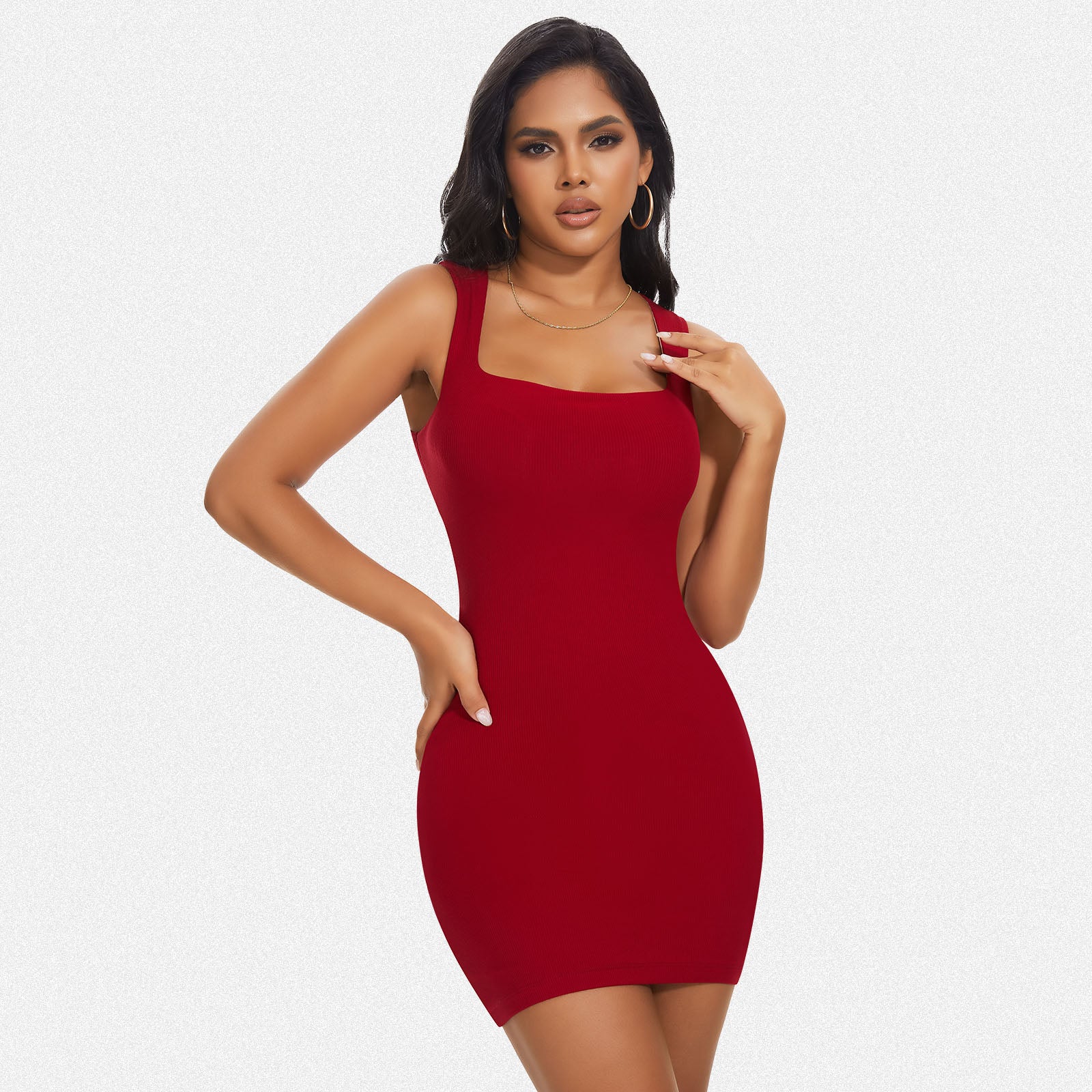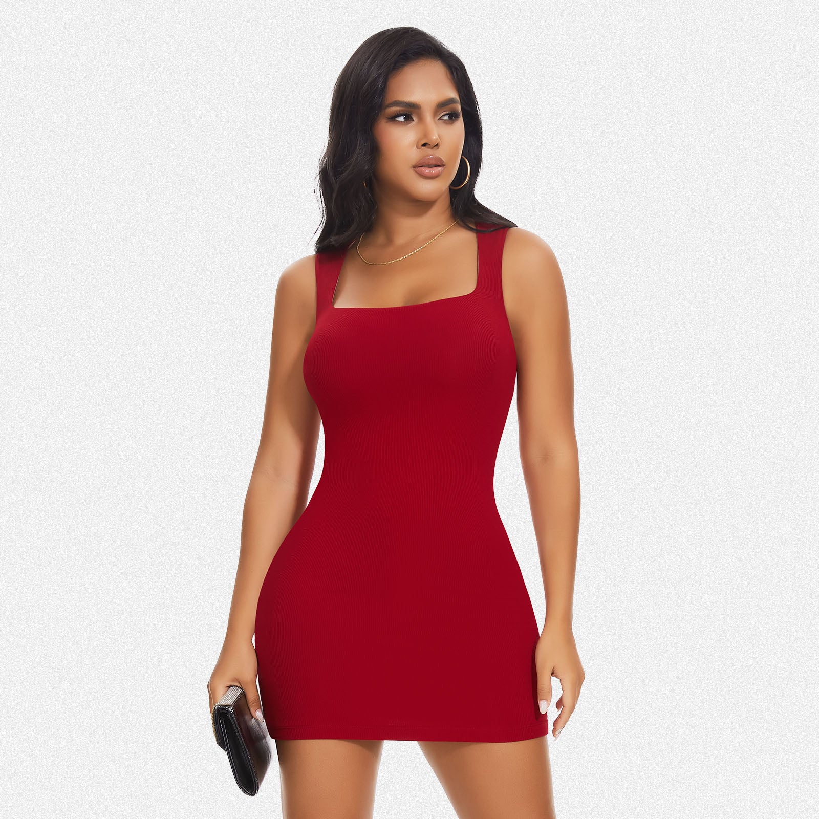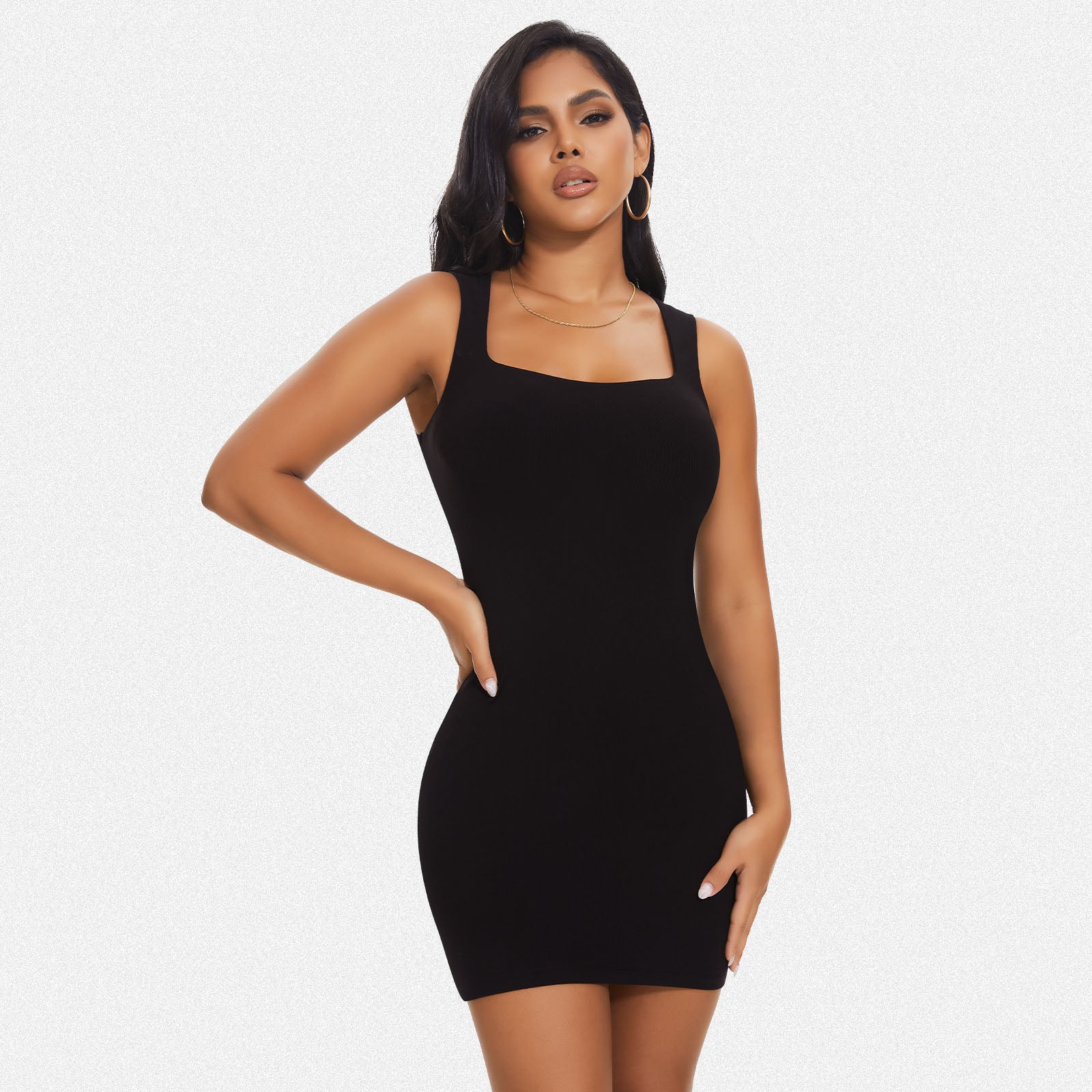 The Shaperin Built in Shapewear Dress Square Neck Sleeveless is a fitted dress with built-in shapewear lining. Our tummy control shapewear dress offers a more seamless and comfortable fit, effortlessly sculpting your perfect hourglass figure in just one step.