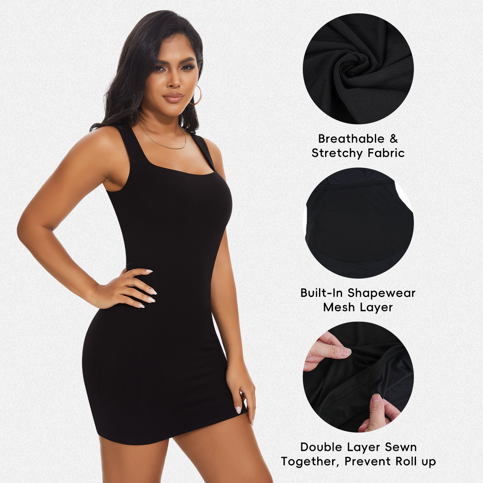 - 2 in 1 Tummy Control Shapewear Dress - This dress features a built-in shapewear lining at the waist and abdomen, smoothing your body curves and offering tummy control. Outer fitted square neck dress is a great way to highlight your fashion sense.