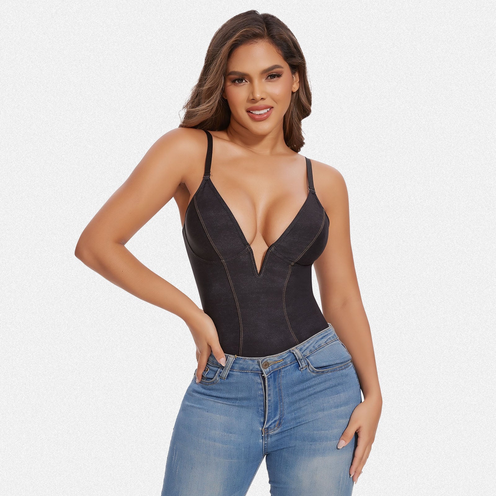 Experience the ultimate tummy control with Shaperin Faux Denim Plunging V-Neck Shapewear Bodysuit. Crafted for shaping and comfort, this seamless bodysuit offers effective tummy control, making it a perfect choice for a sleek and sculpted look. Breathable and high stretch body shaper combine denim outlook and soft touchness in one, quite comfy to wear all day.