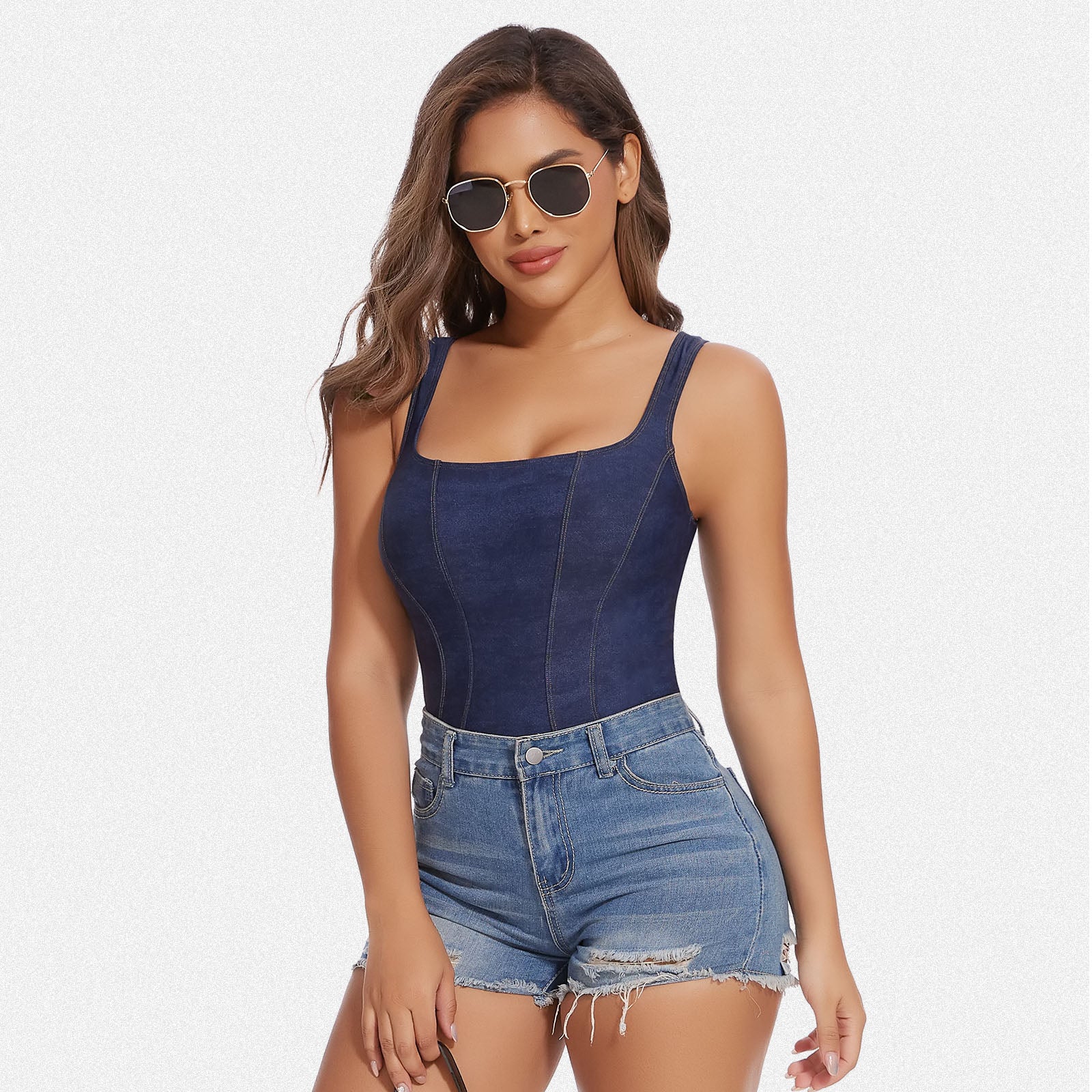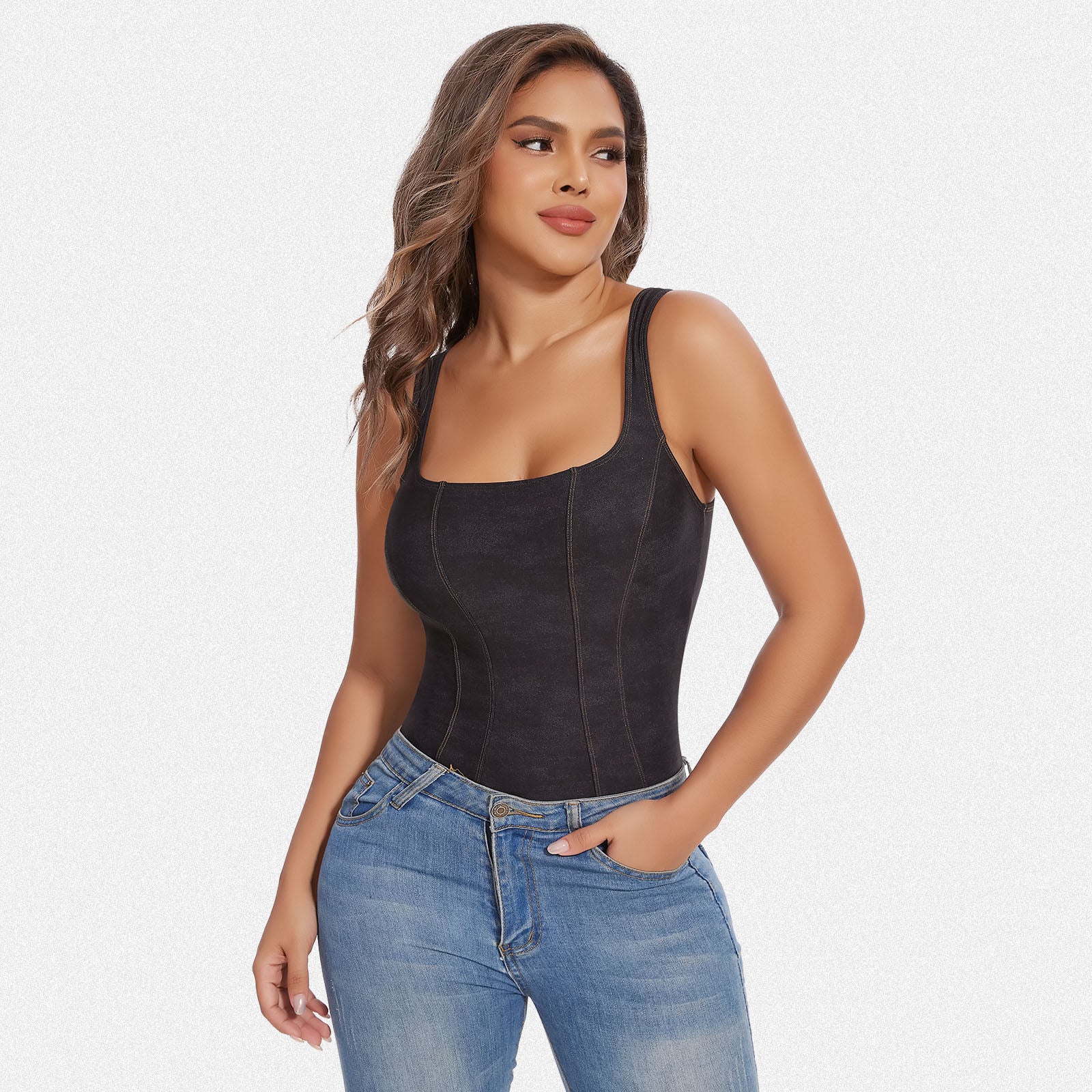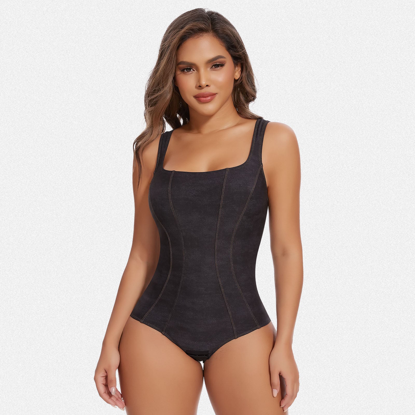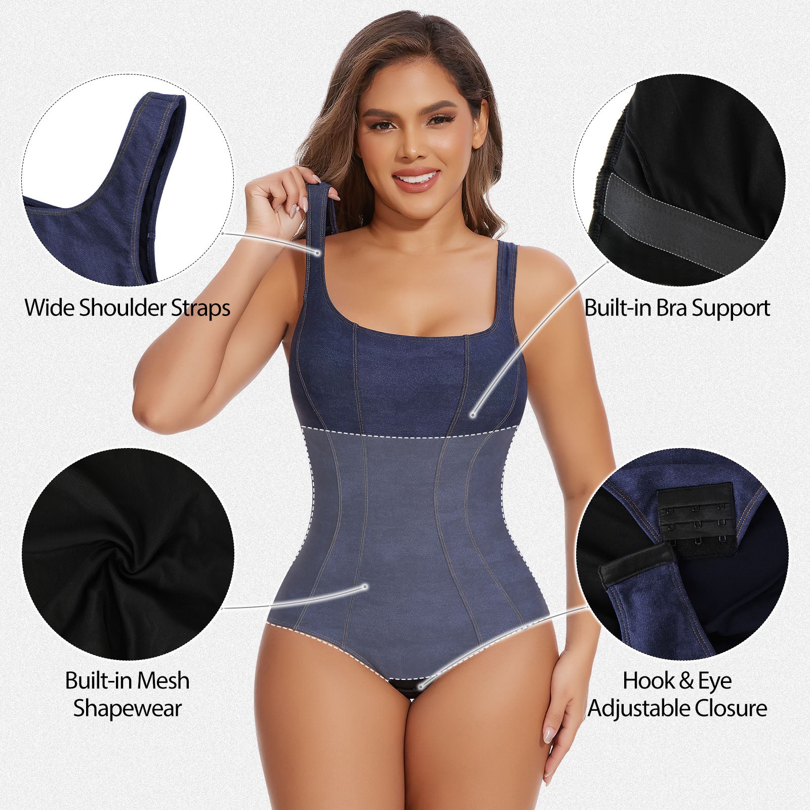 Experience the ultimate tummy control with Shaperin Faux Denim Shapewear Bodysuit. Crafted for shaping and comfort, this seamless bodysuit offers effective tummy control, making it a perfect choice for a sleek and sculpted look. Breathable and high stretch body shaper combine denim outlook and soft touchness in one, quite comfy to wear all day.