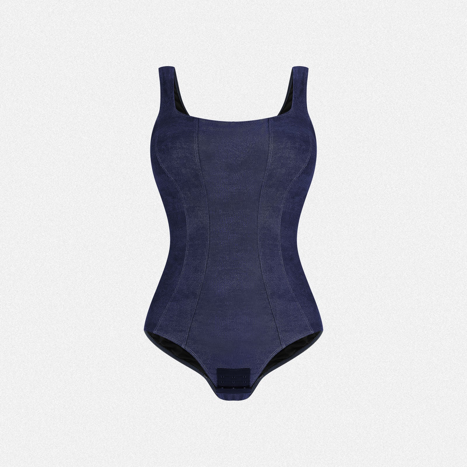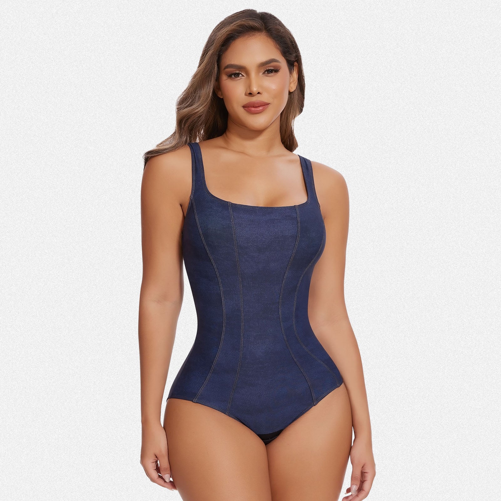 Shaperin Faux Denim Shapewear Bodysuit Tummy Control