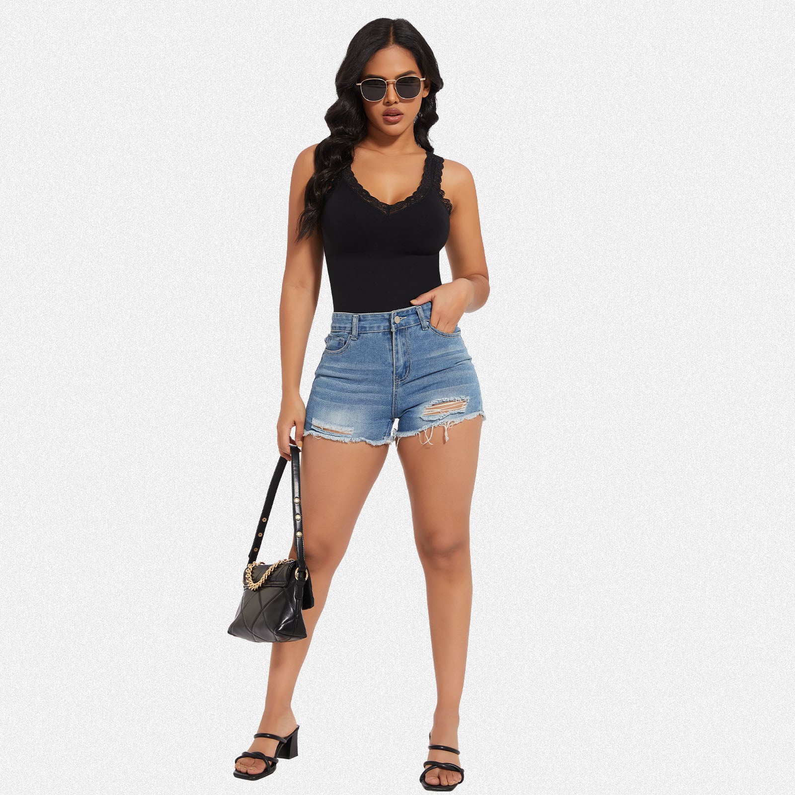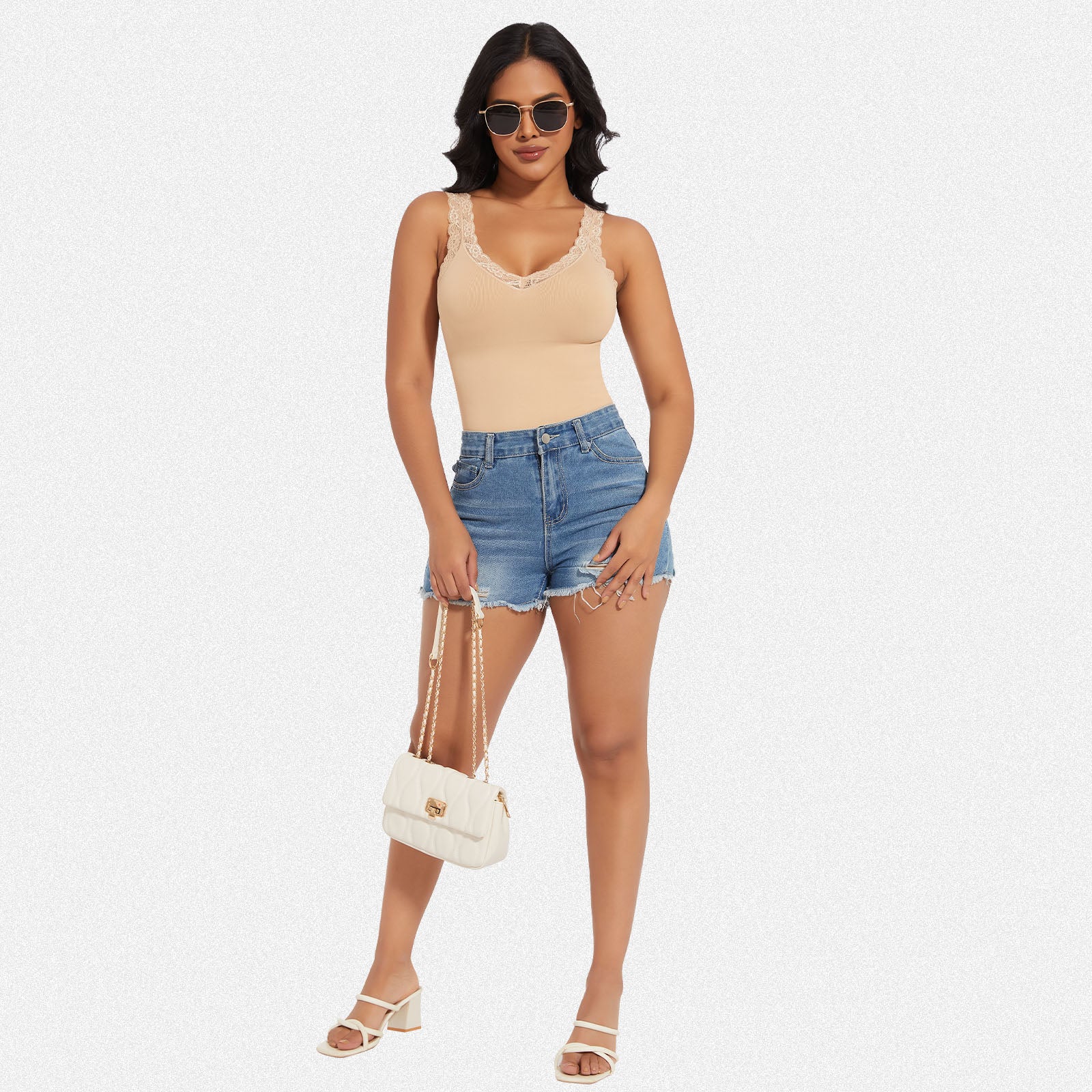 2. Features a lace V-neck for a touch of sensuality and lace shoulder straps for added style