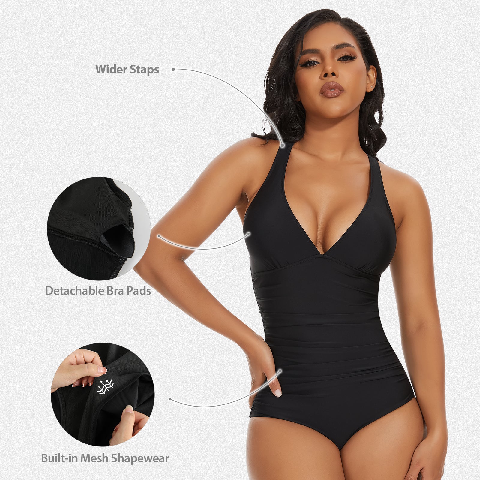 - Tummy control: The SHAPERIN swimsuit features a built-in power mesh panel that provides targeted tummy control, smoothing your midsection and creating a sleek silhouette.