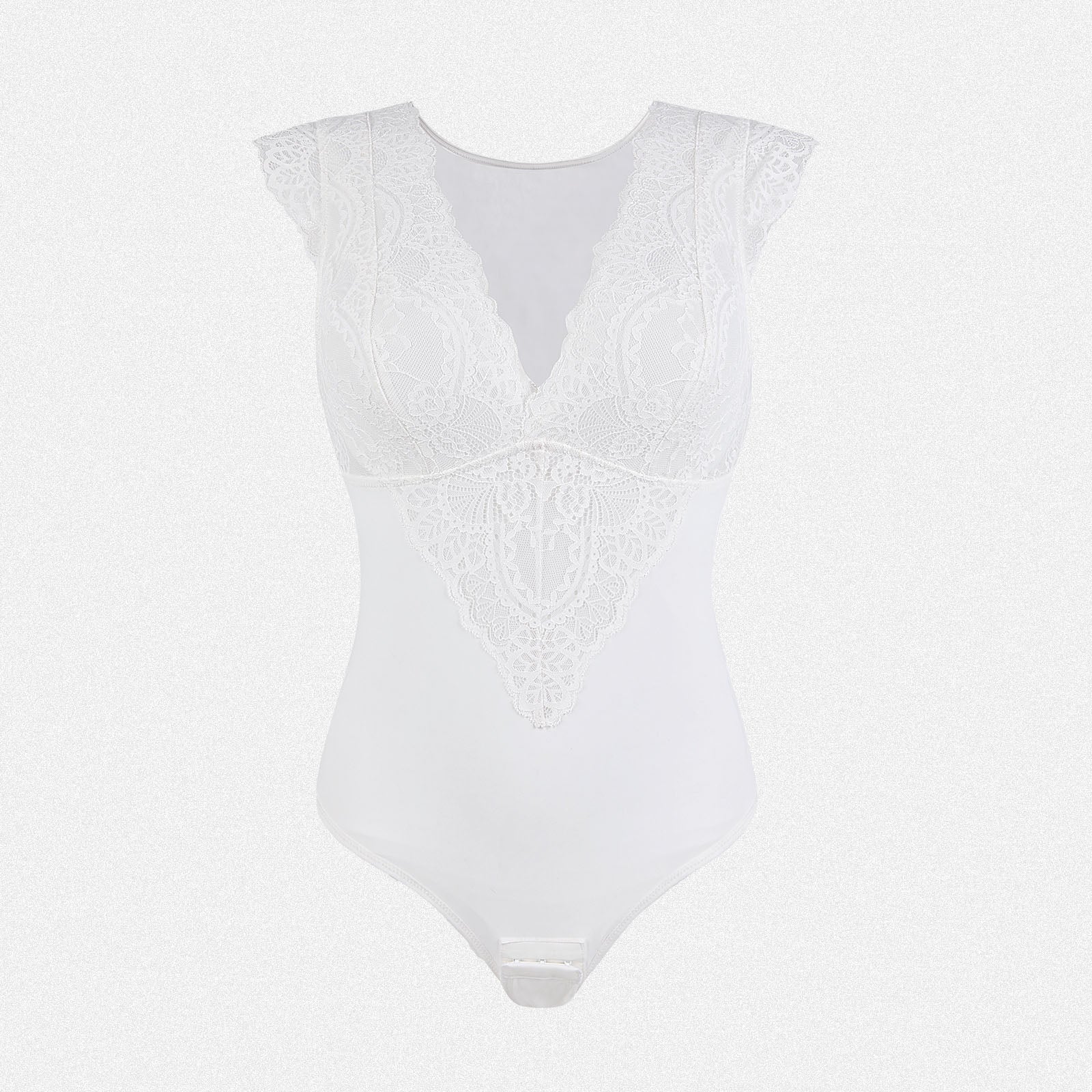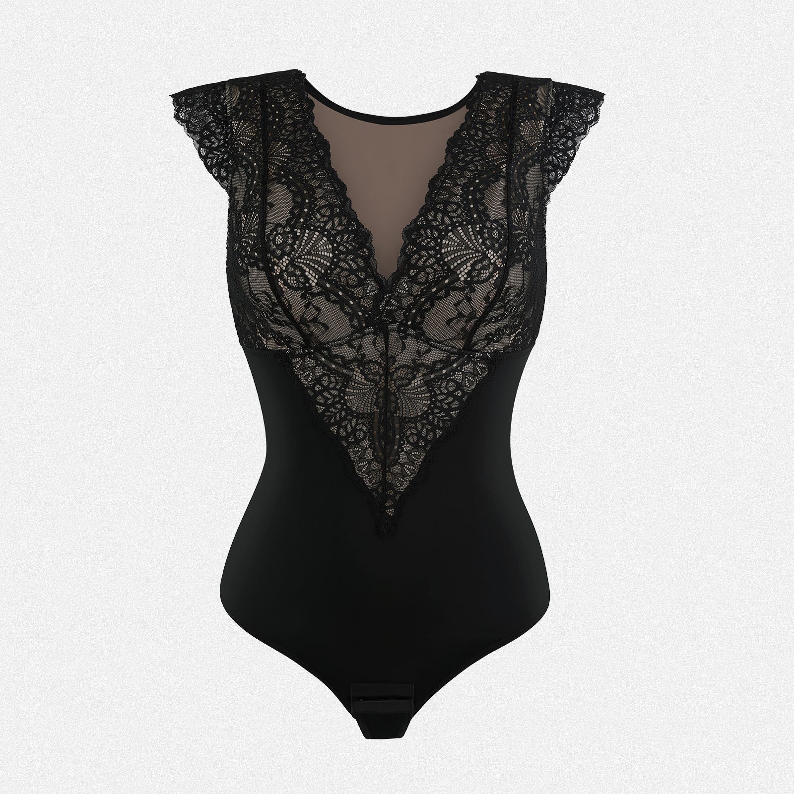 Shaperin Shapewear V-neck Sleeveless Sculpting Lace Bodysuit