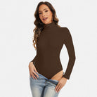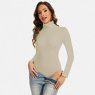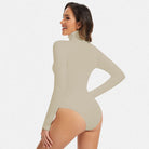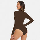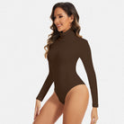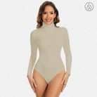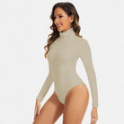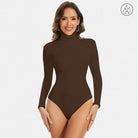 Shaperin Slim-Fit High Neck Long Sleeve Fleece Bodysuit Top