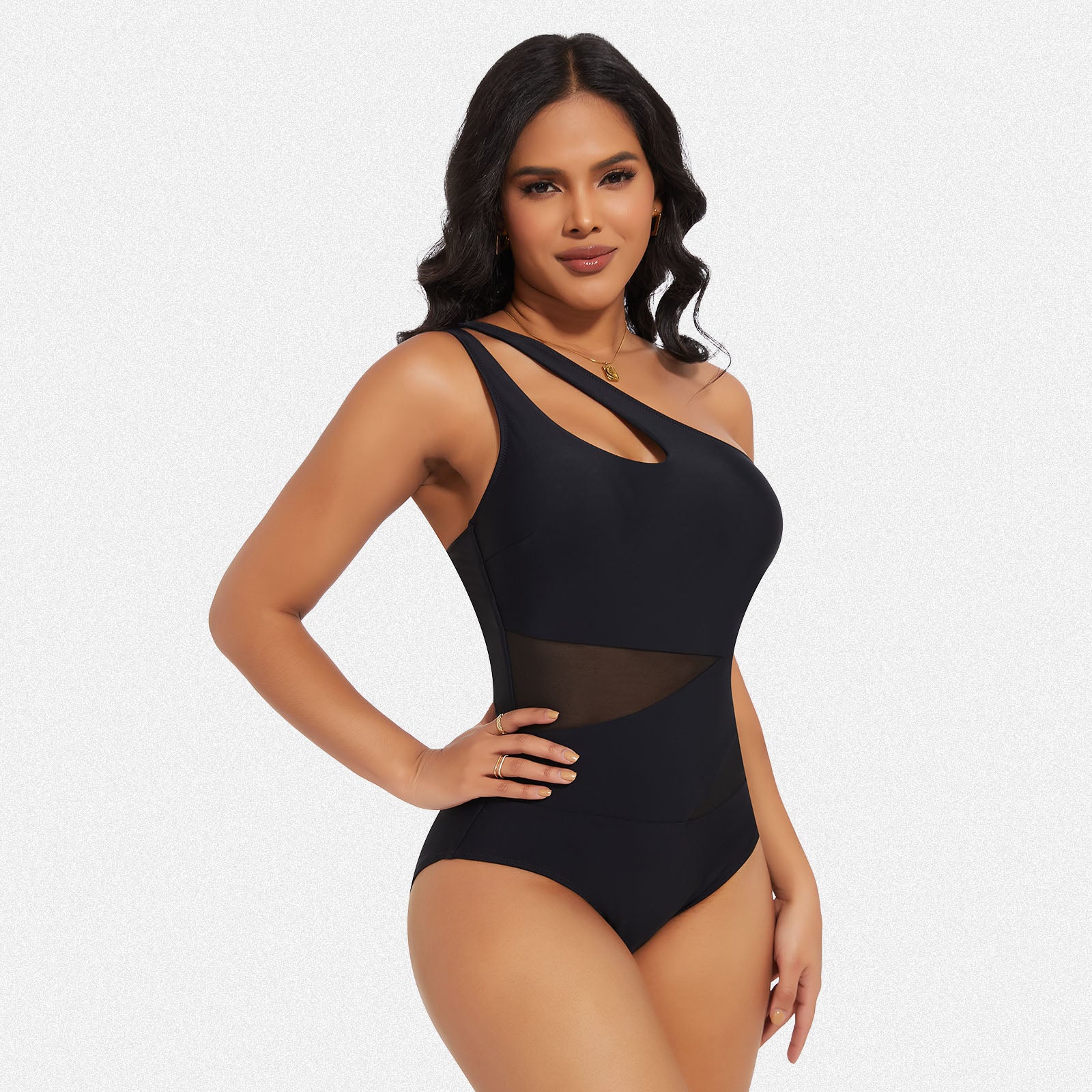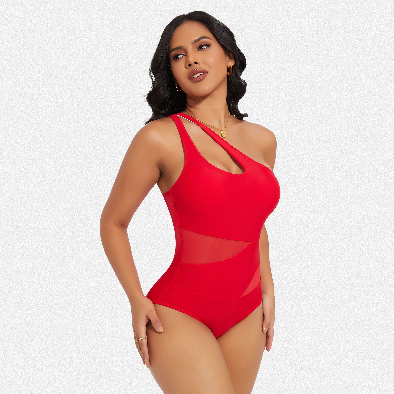 Shaperin Tummy Control One Piece One Shoulder Asymmetrical Swimsuit