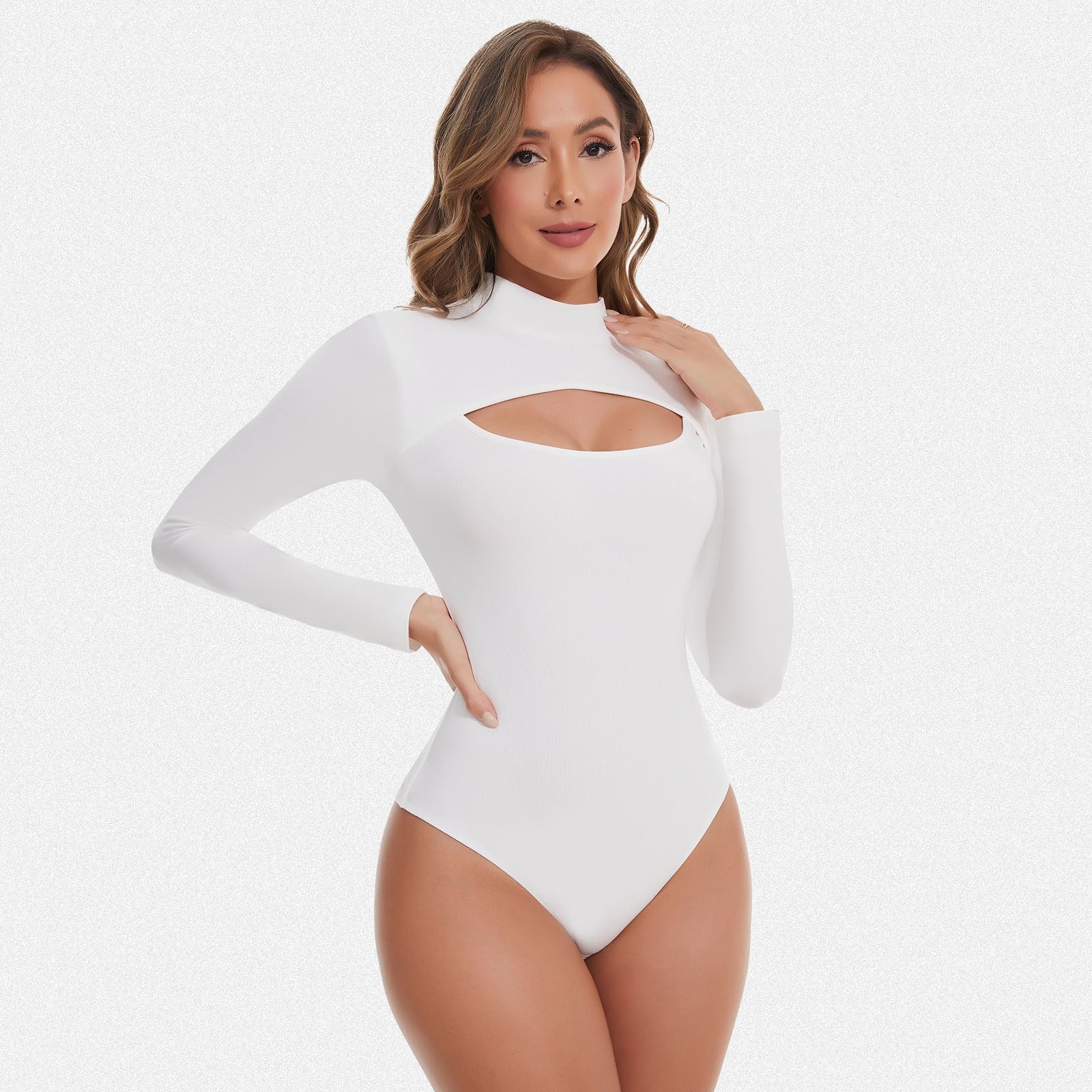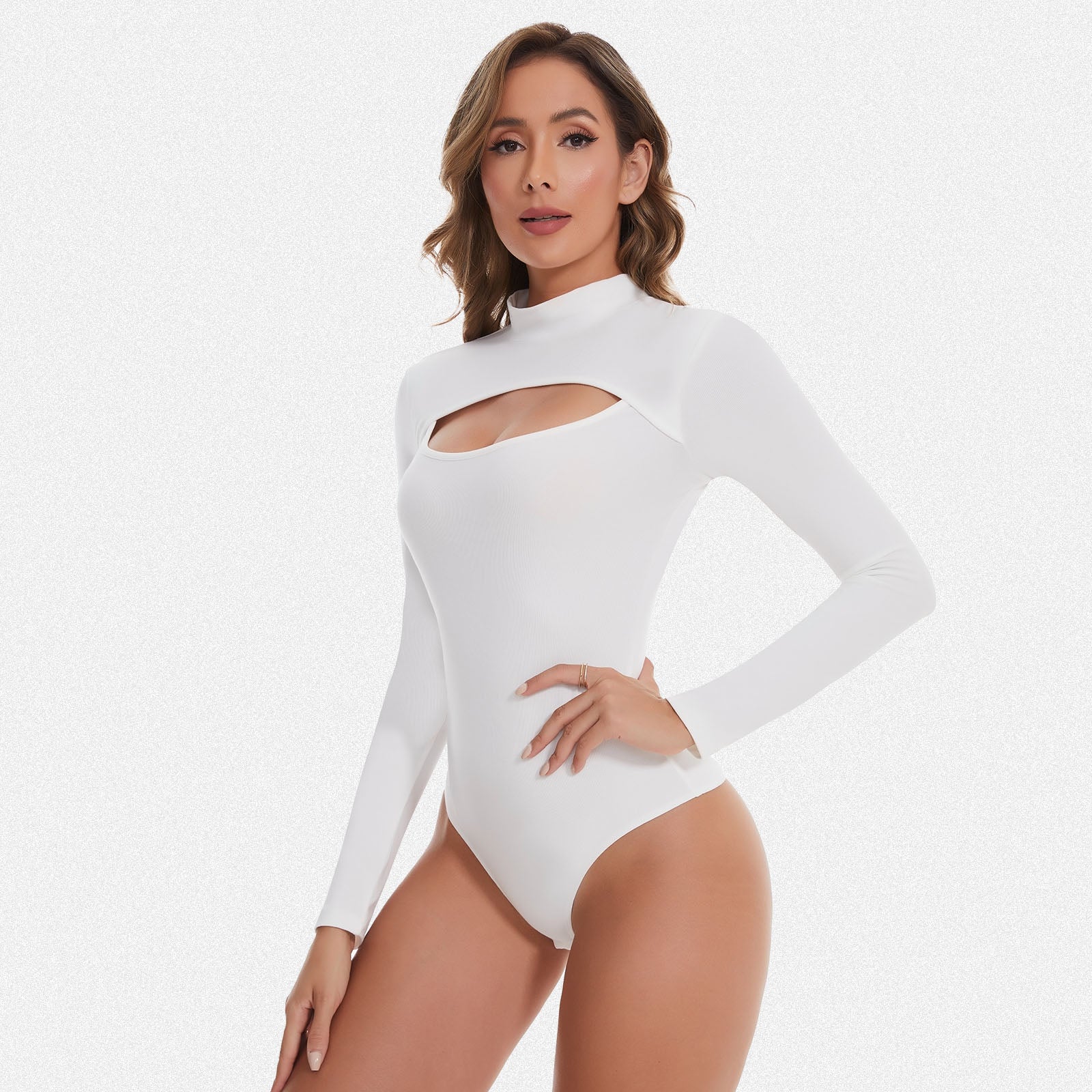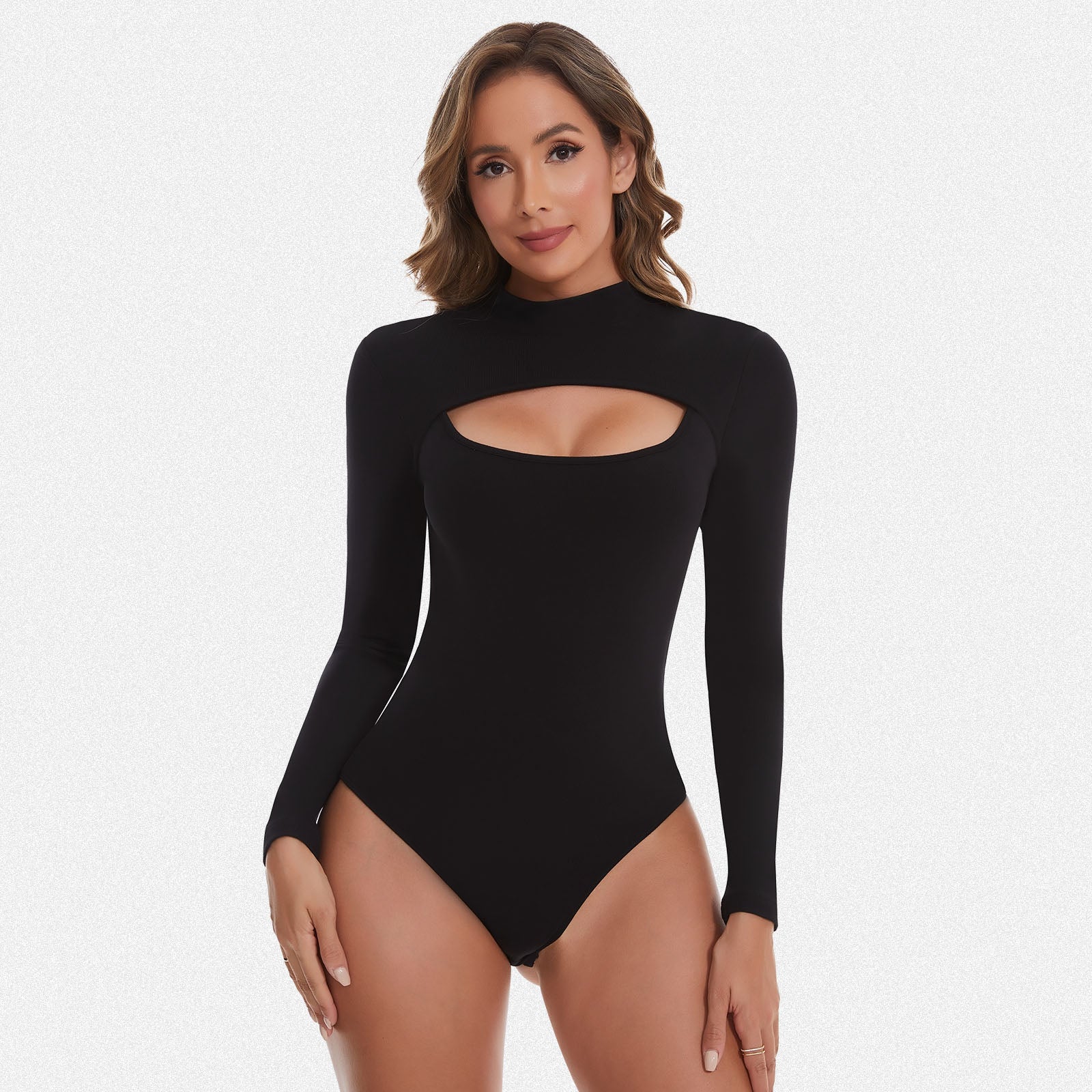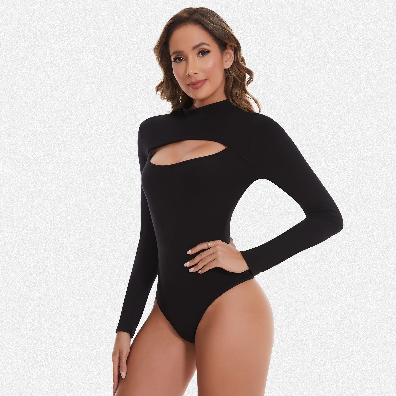 Shaperin Long Sleeve Cut Out Front Bodysuit Top