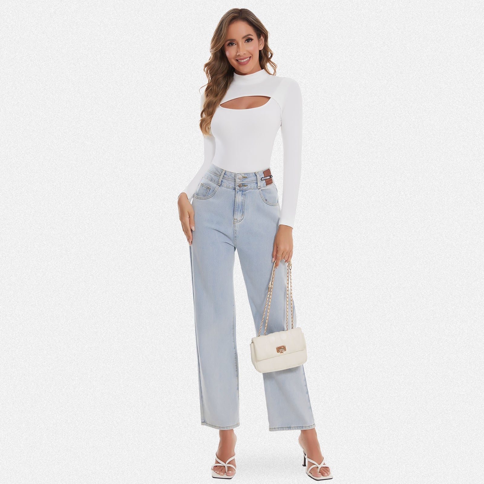 Explore our collection of women's bodysuits designed with a mock turtleneck and long sleeves for a stylish and confident look. Elevate your style with these versatile pieces, perfect for creating a sleek and polished outfit. Embrace comfort and sophistication with our range of bodysuits that exude effortless elegance and provide a flattering fit.