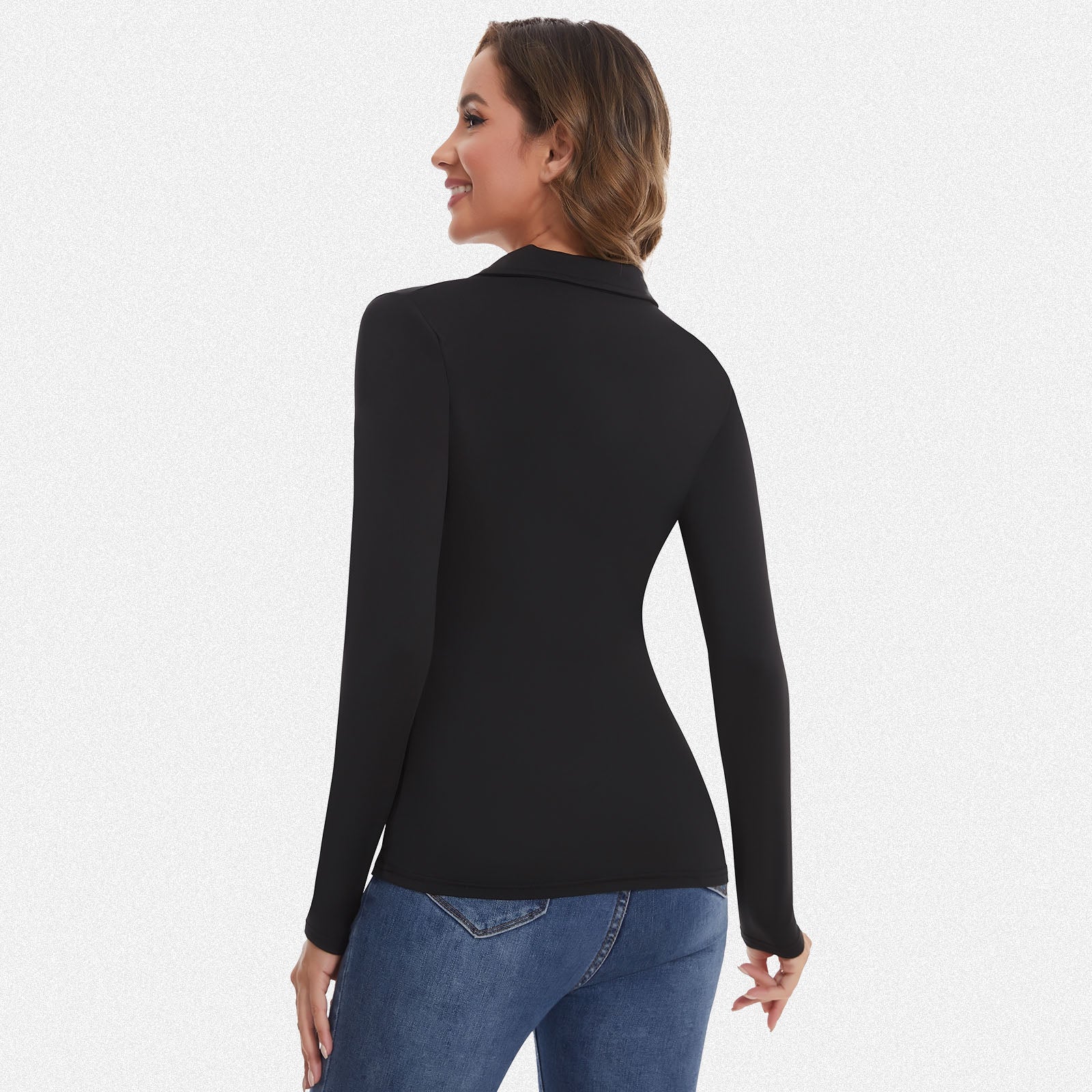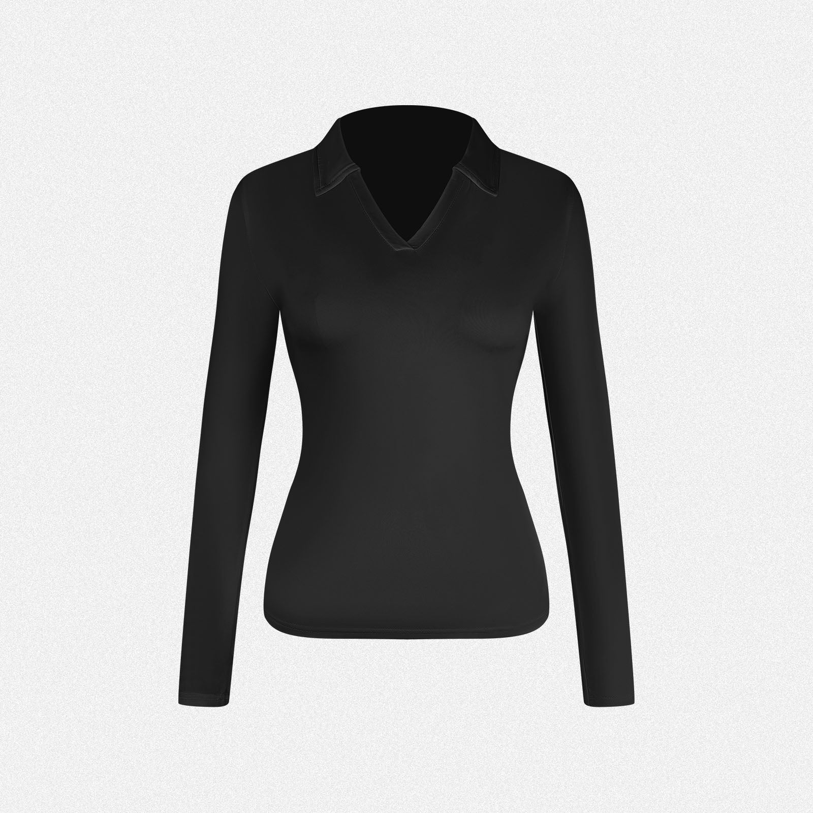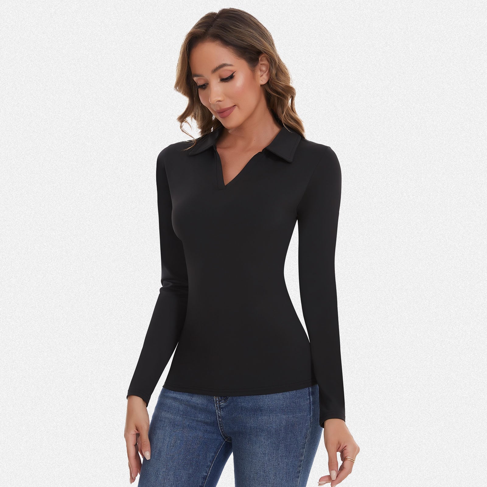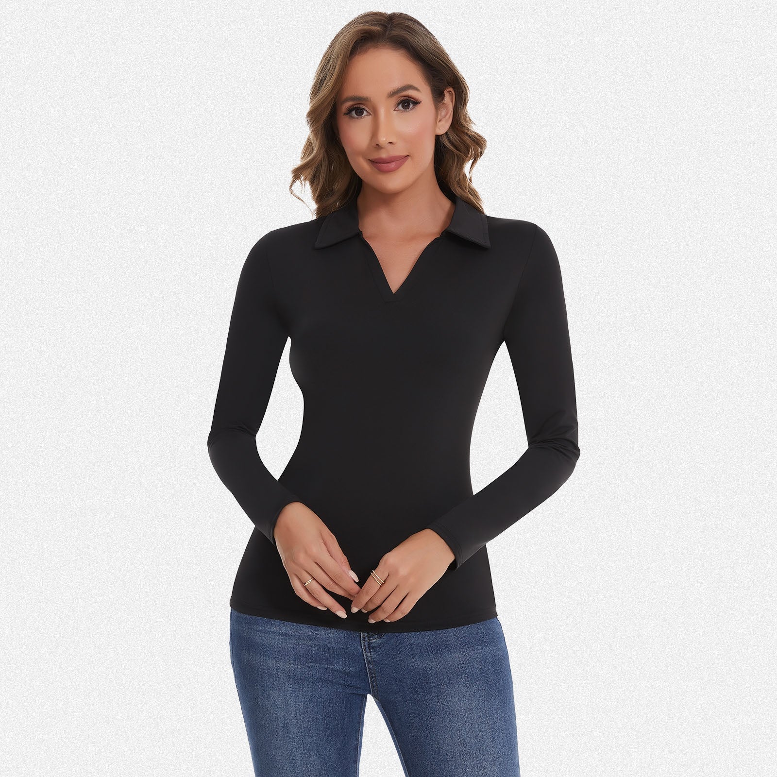 Shaperin Long Sleeve Golf Polo Shirt Collared V Neck Top
