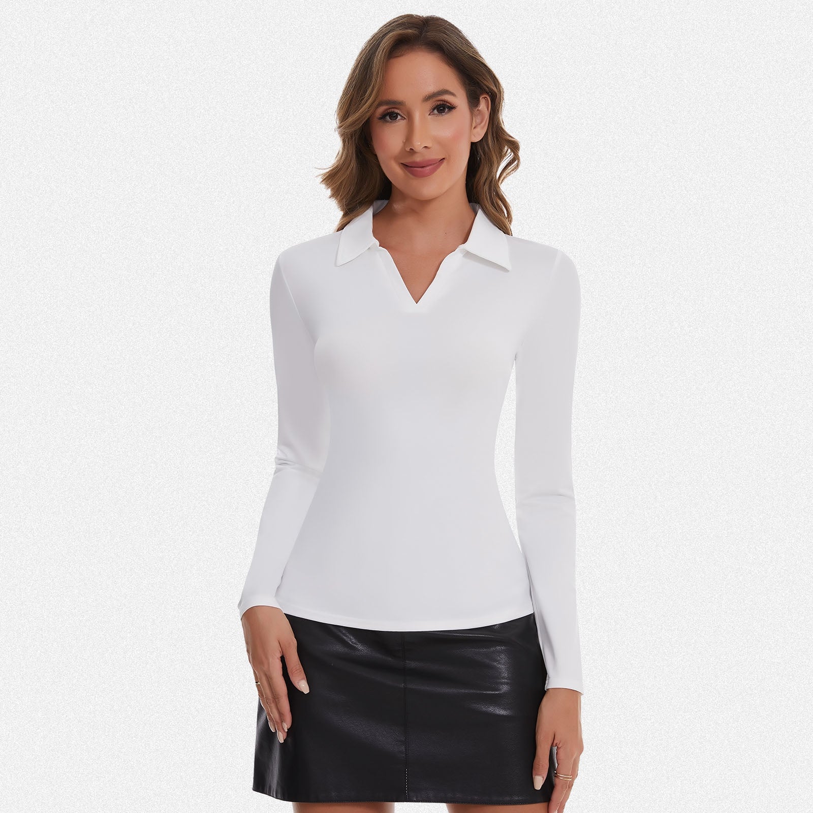 Explore Shaperin Long Sleeve Golf Polo Shirt Collared V Neck Top for a stylish and confident look. Elevate your style with these versatile pieces, perfect for creating a sleek and polished outfit. Embrace comfort and sophistication with our range of slim tops that exude effortless elegance and provide a flattering fit.