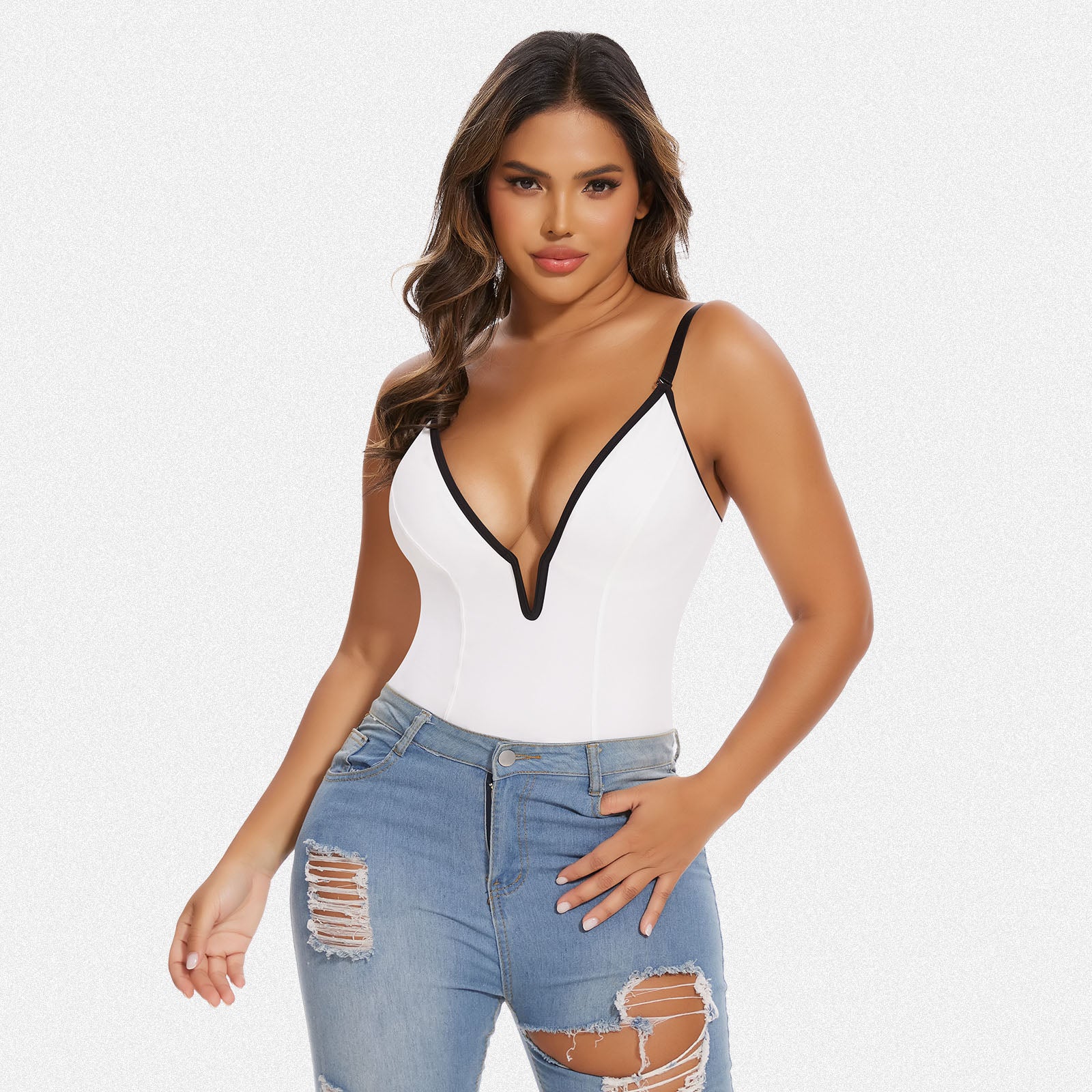 Shaperin Shapewear Bodysuit Deep V Neck Thong