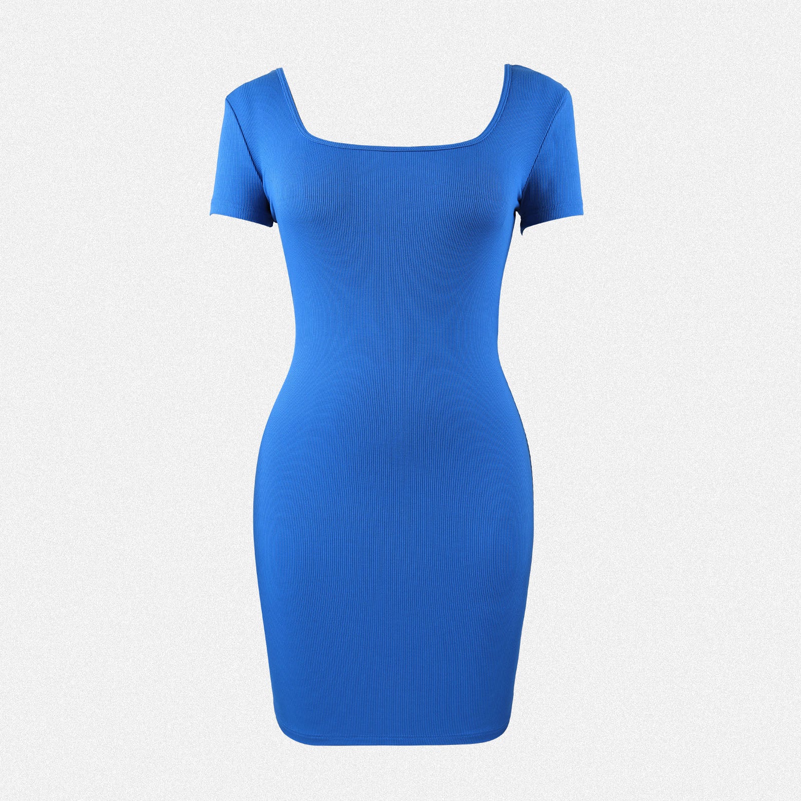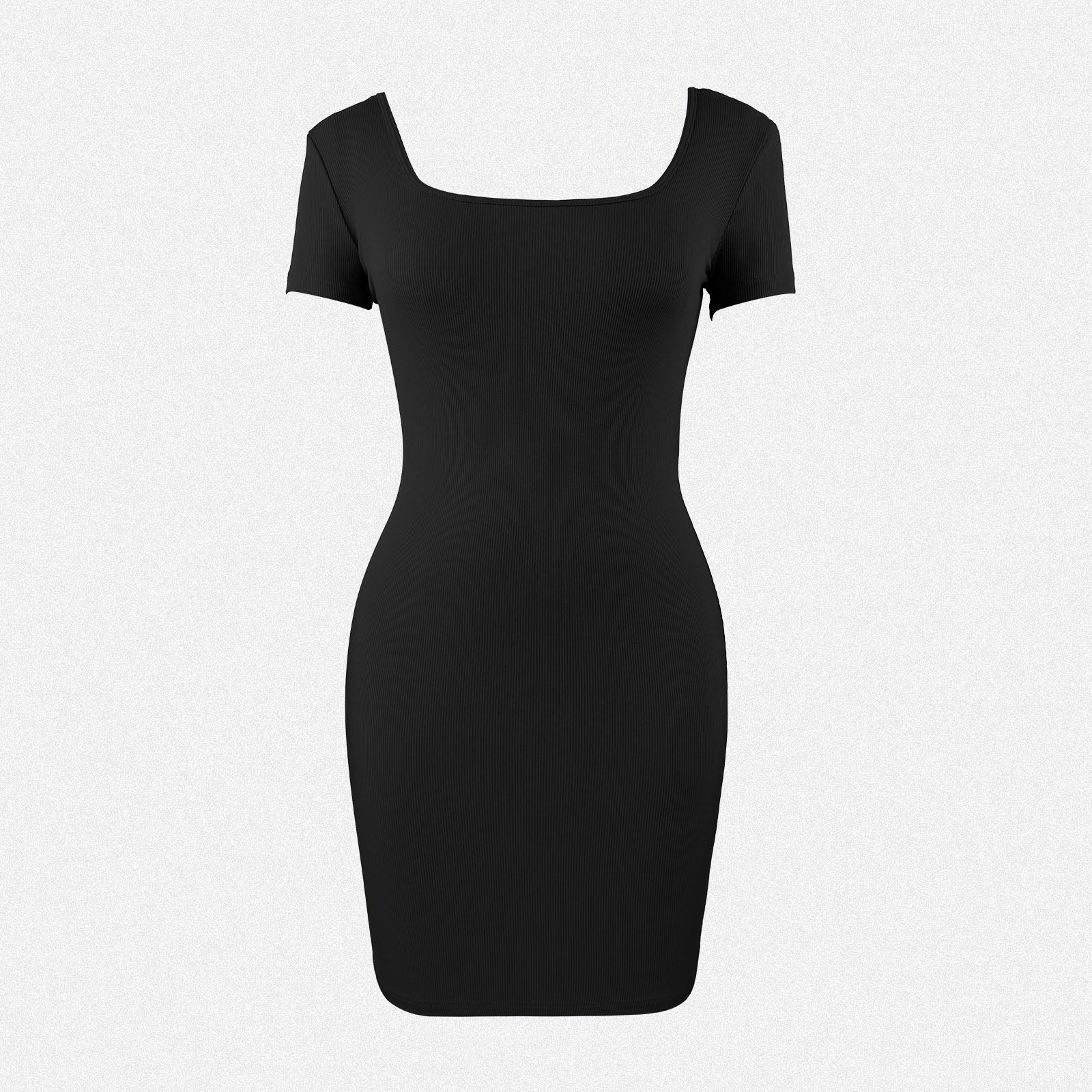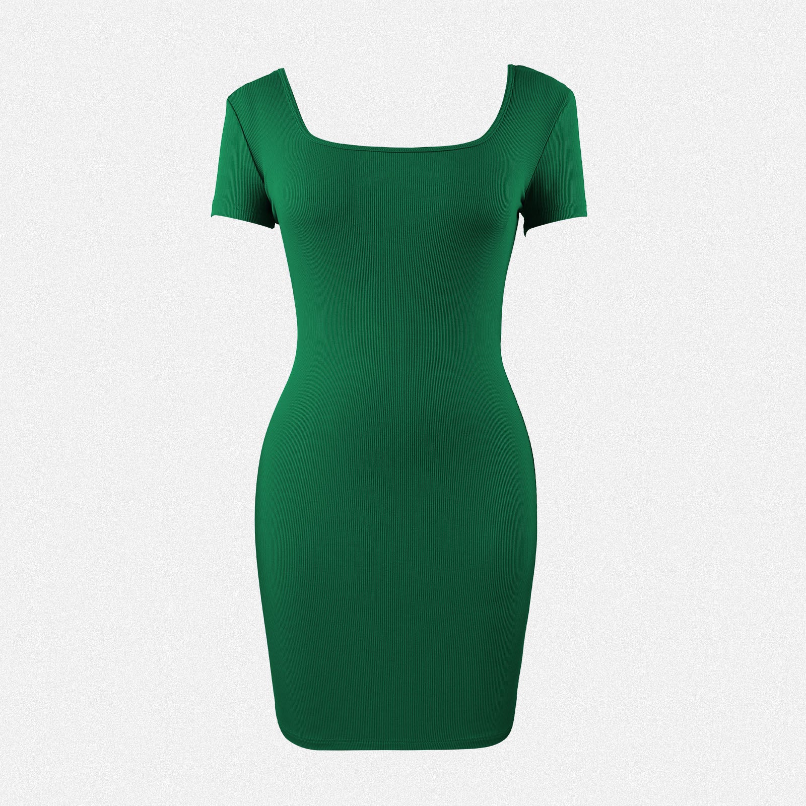 Shaperin Short Sleeve Bodycon Casual Dress Square Neck Wrap Dress