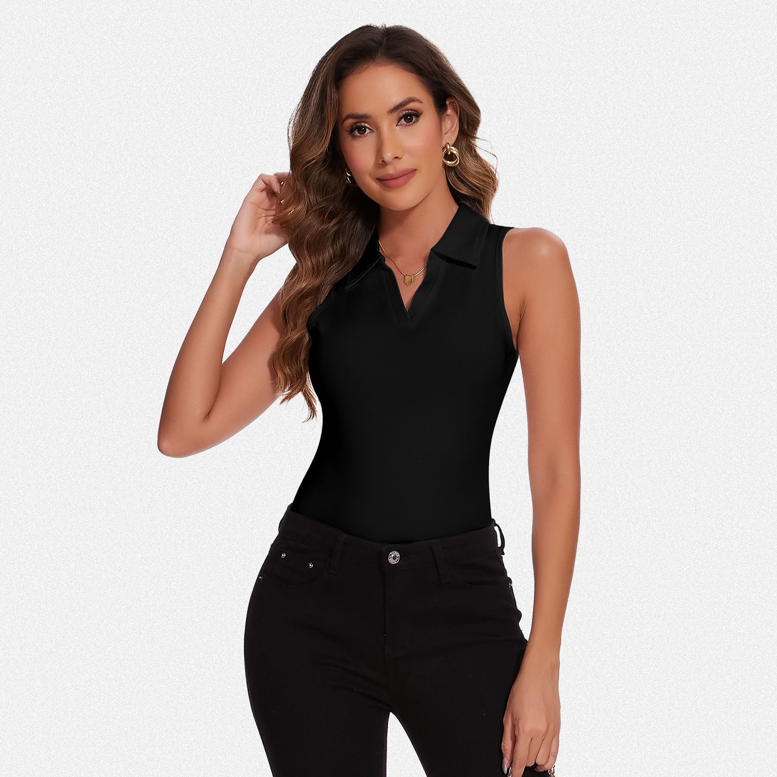 Explore our collection of women's bodysuits designed with a Polo Neck and sleeveless for a stylish and confident look. Elevate your style with these versatile pieces, perfect for creating a sleek and polished outfit. Embrace comfort and sophistication with our range of bodysuits that exude effortless elegance and provide a flattering fit.