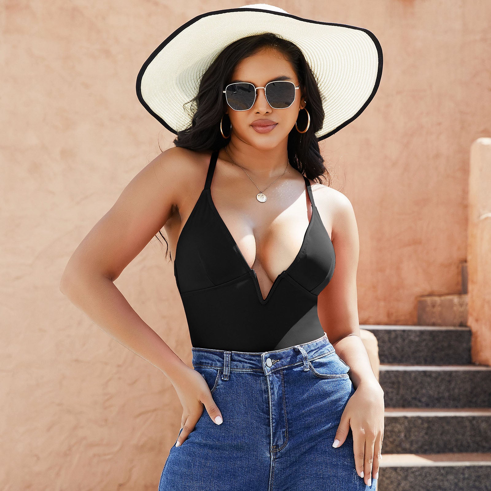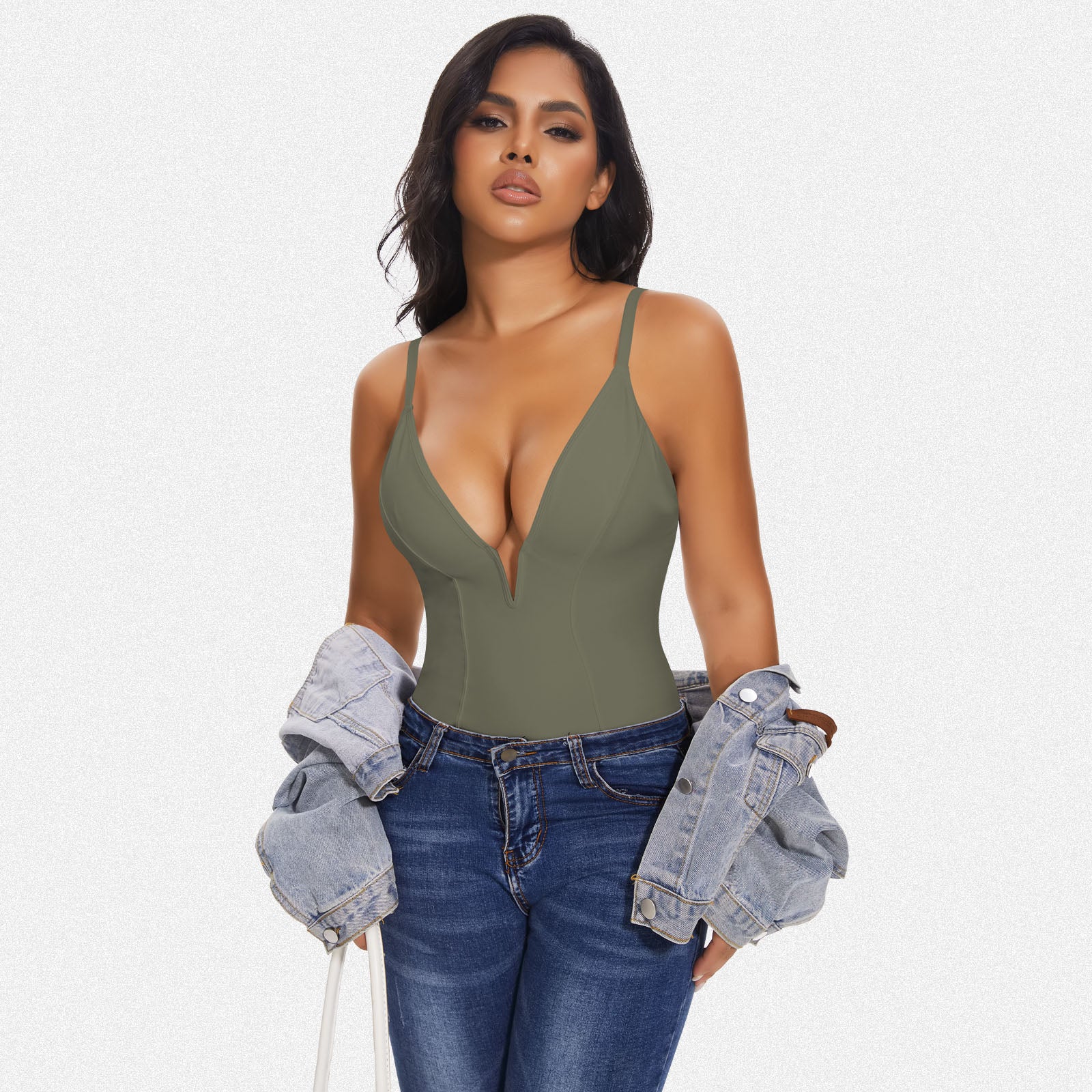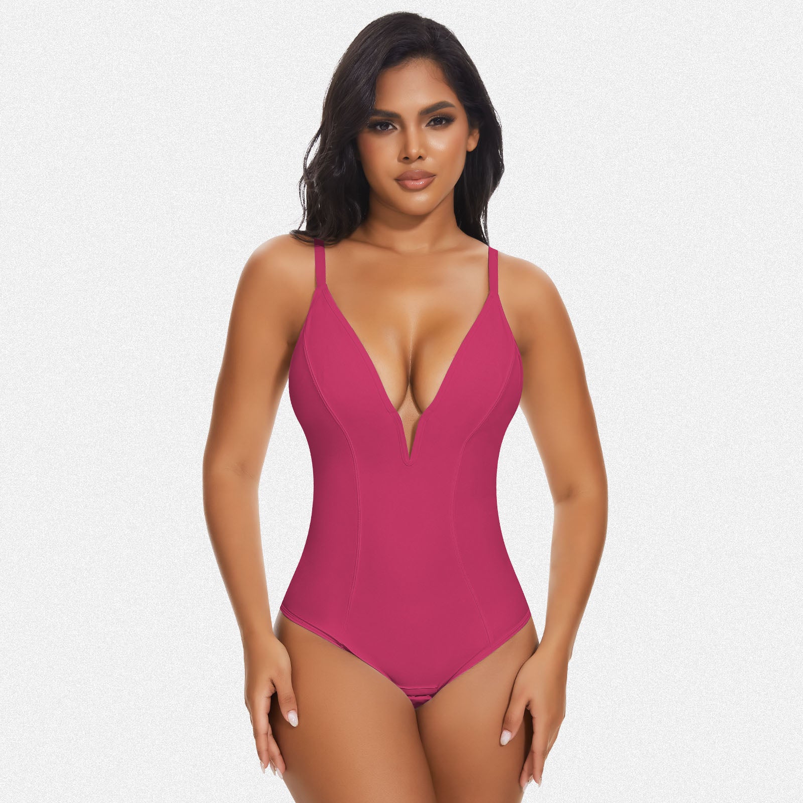 Shaperin Slimming Deep V Plunge Shapewear Tummy Control Thong Bodysuit