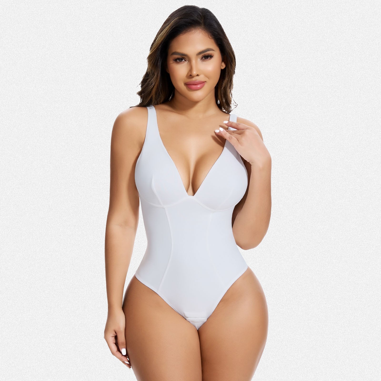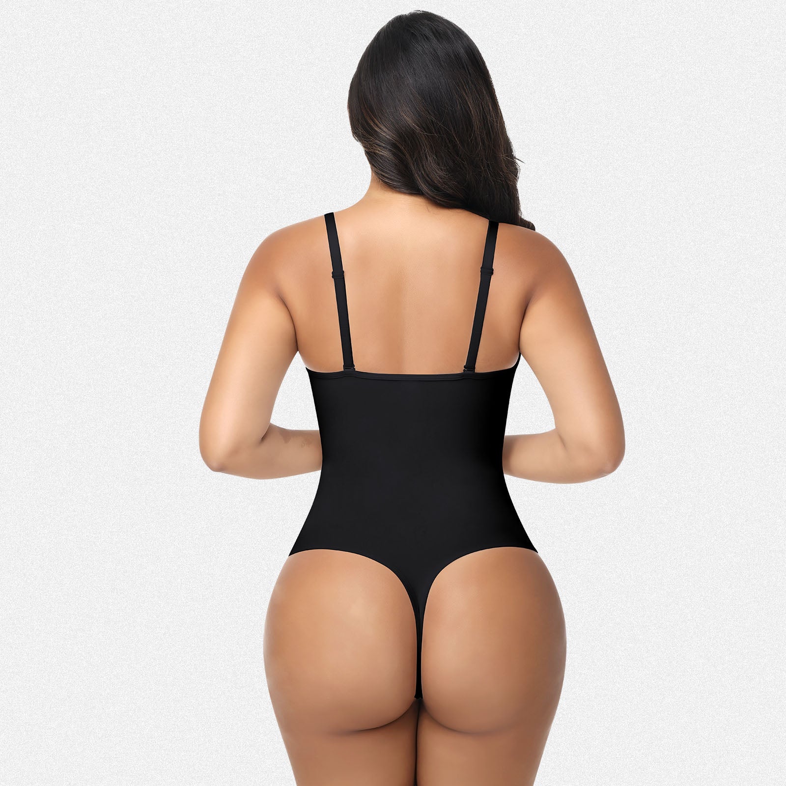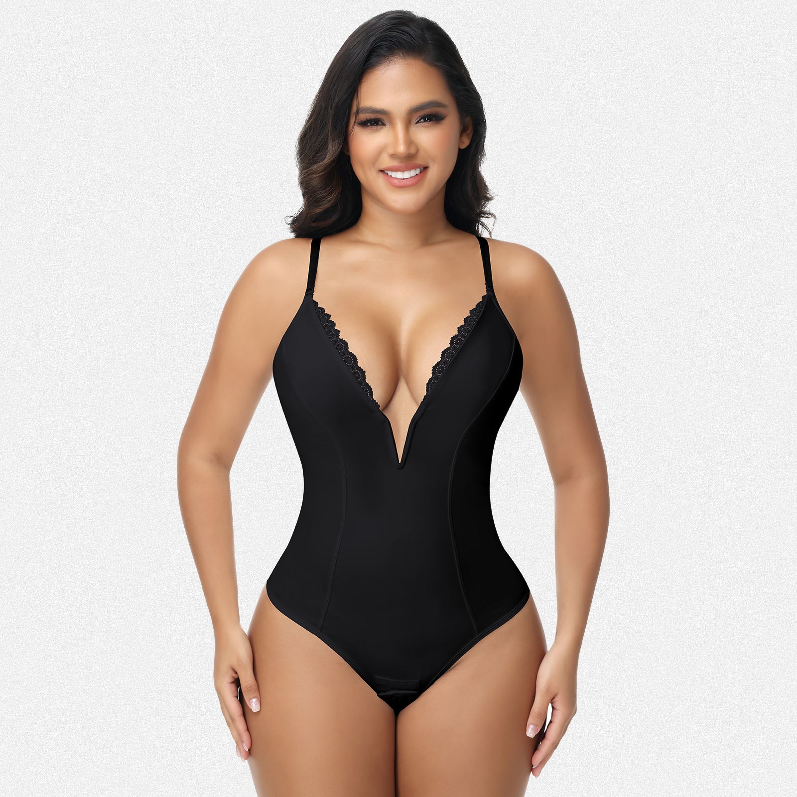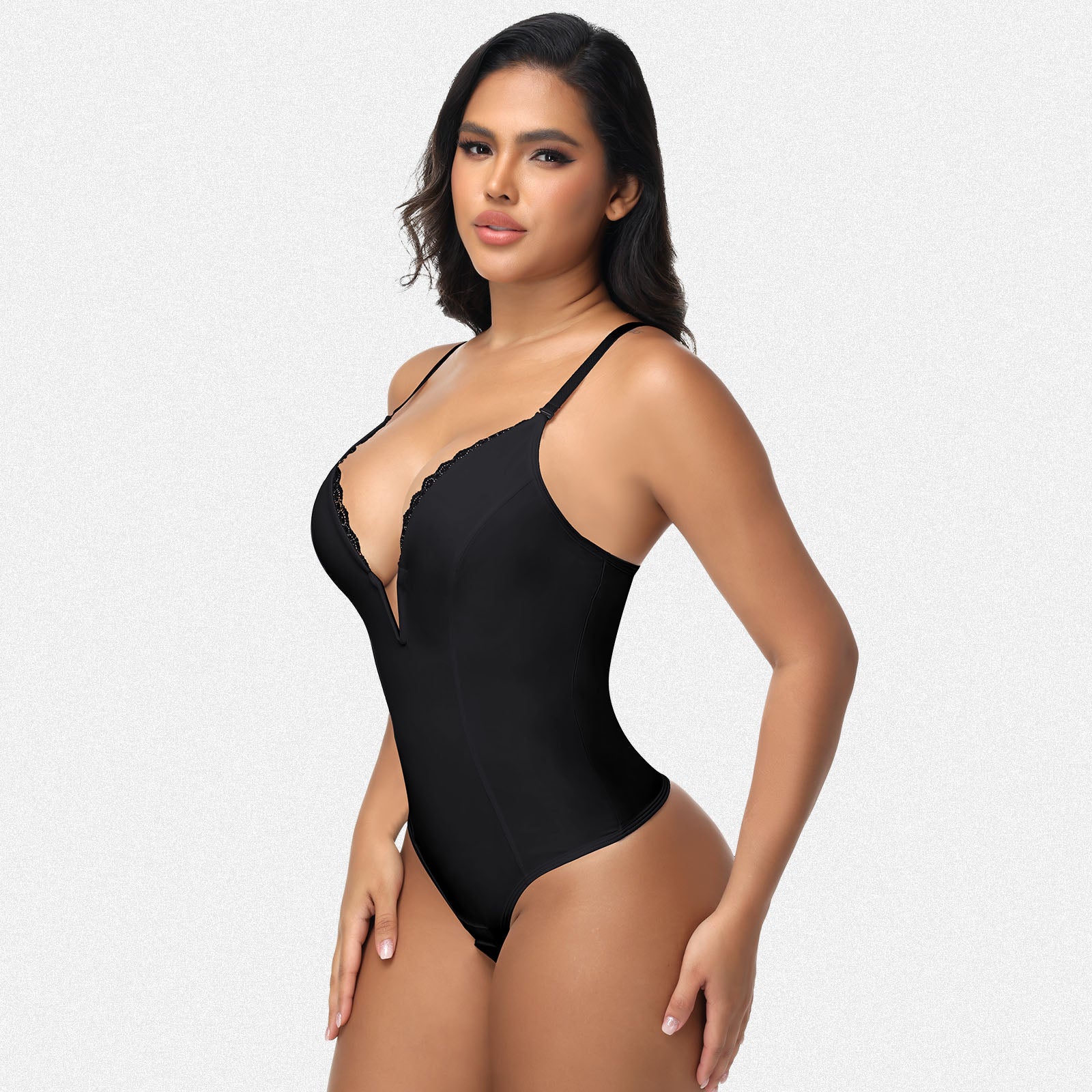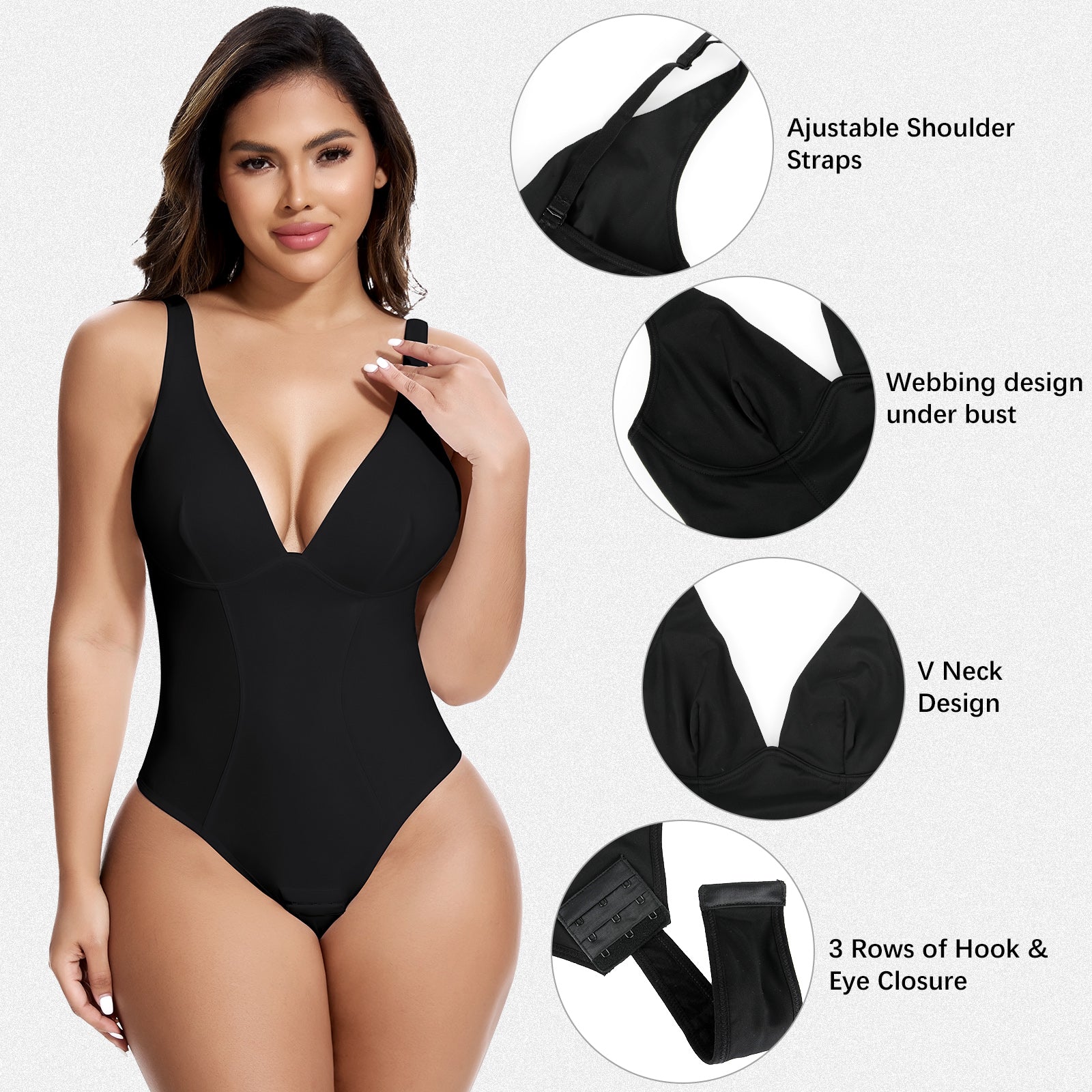 Shaperin Deep V Plunge Low Back Thong Shapewear Tummy Control Bodysuit