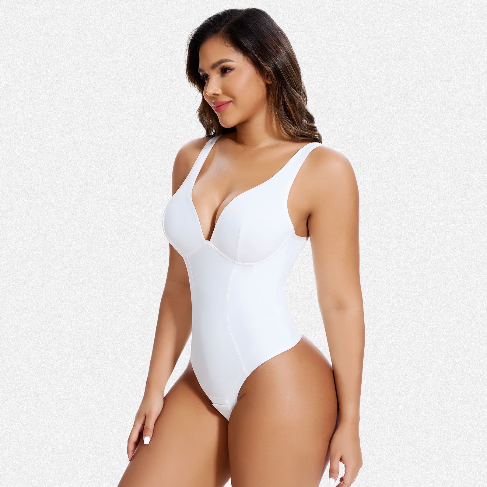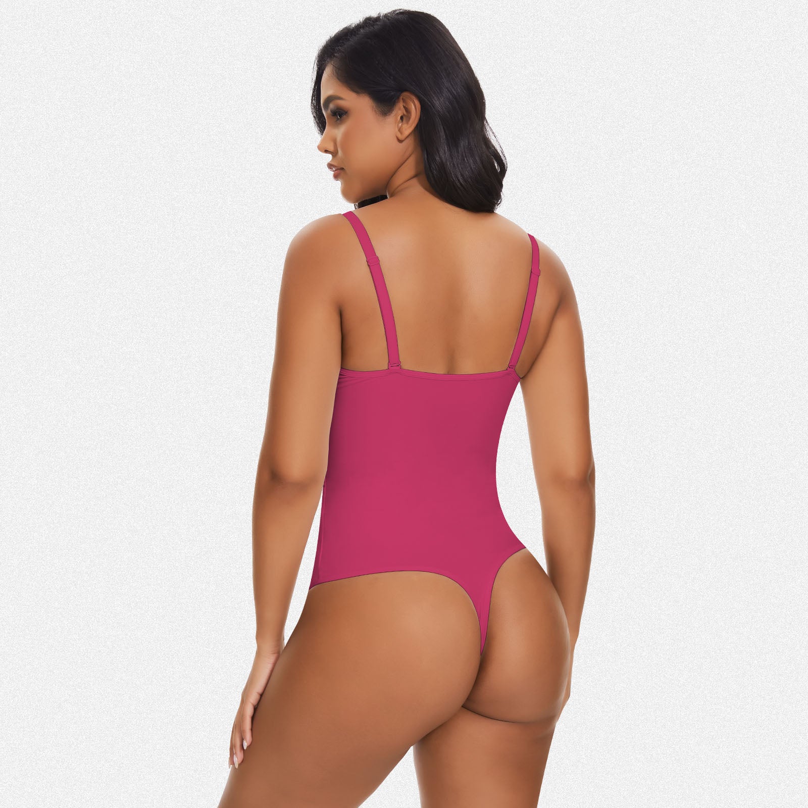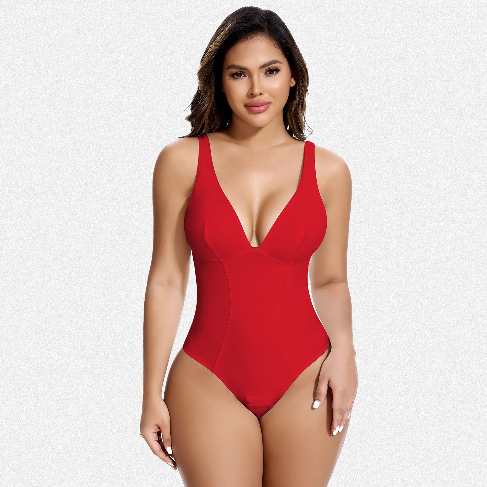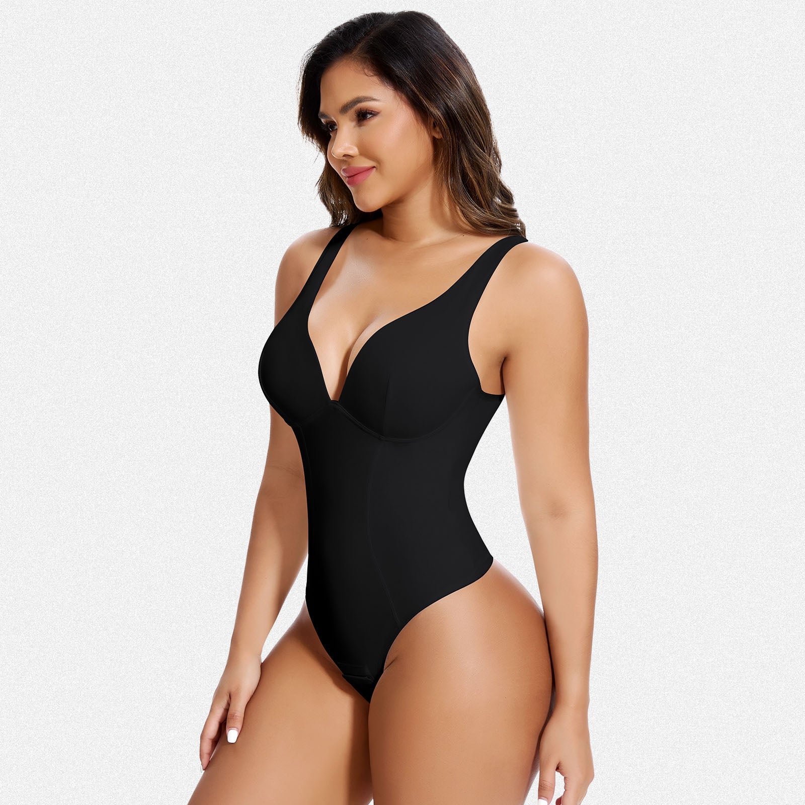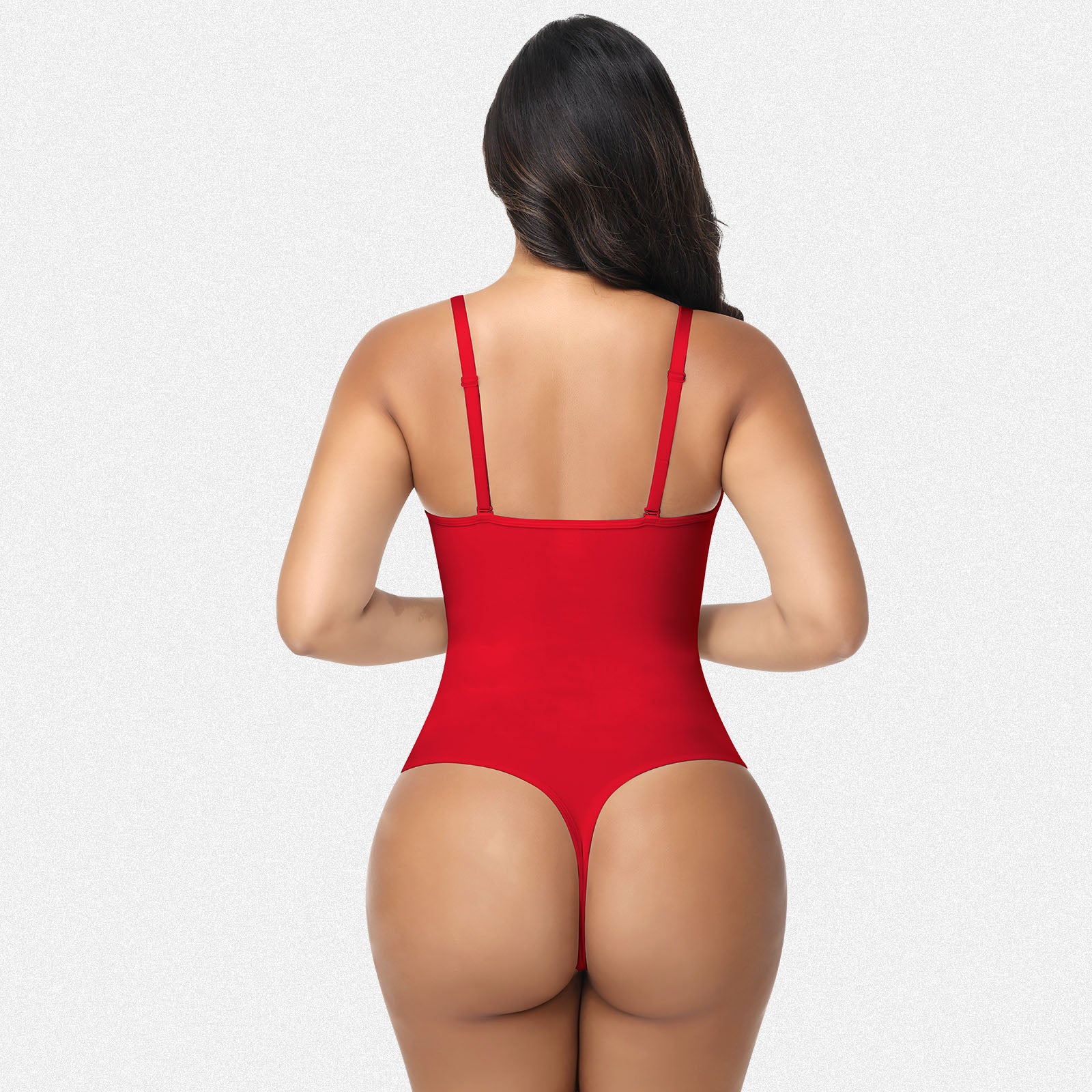 Shaperin Deep V Plunge Low Back Thong Shapewear Tummy Control Bodysuit