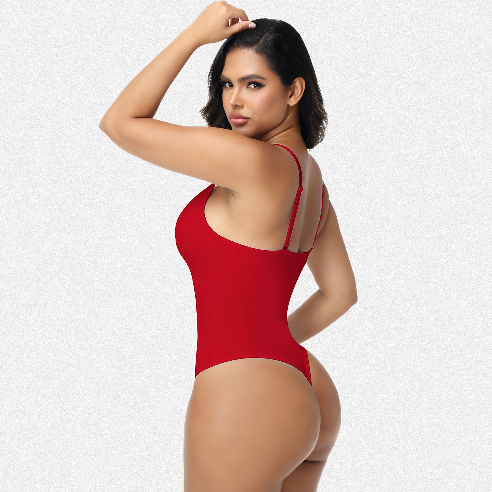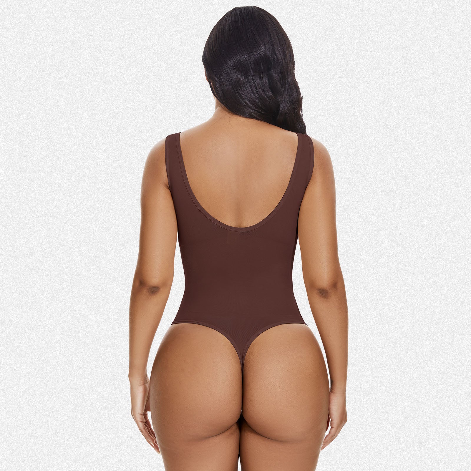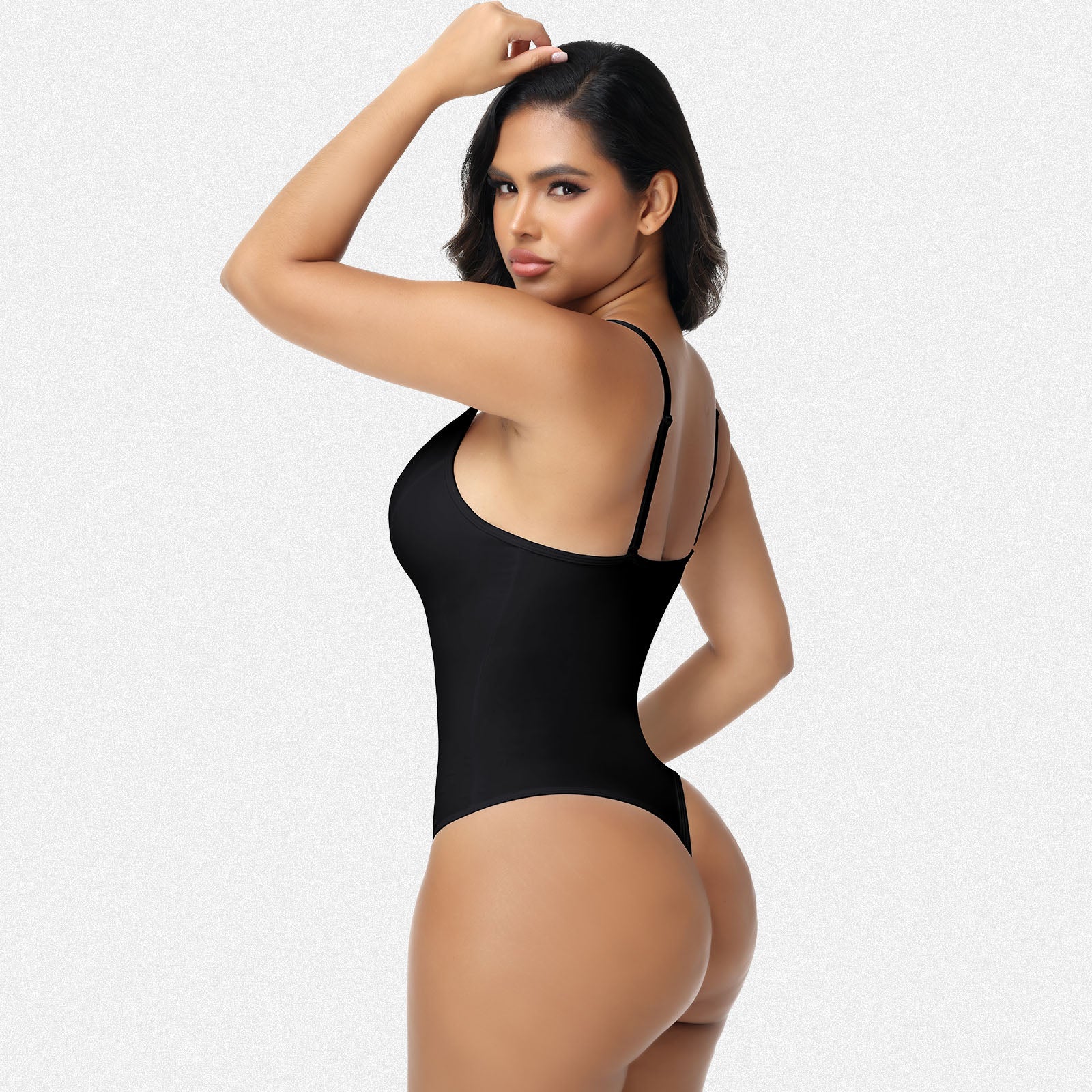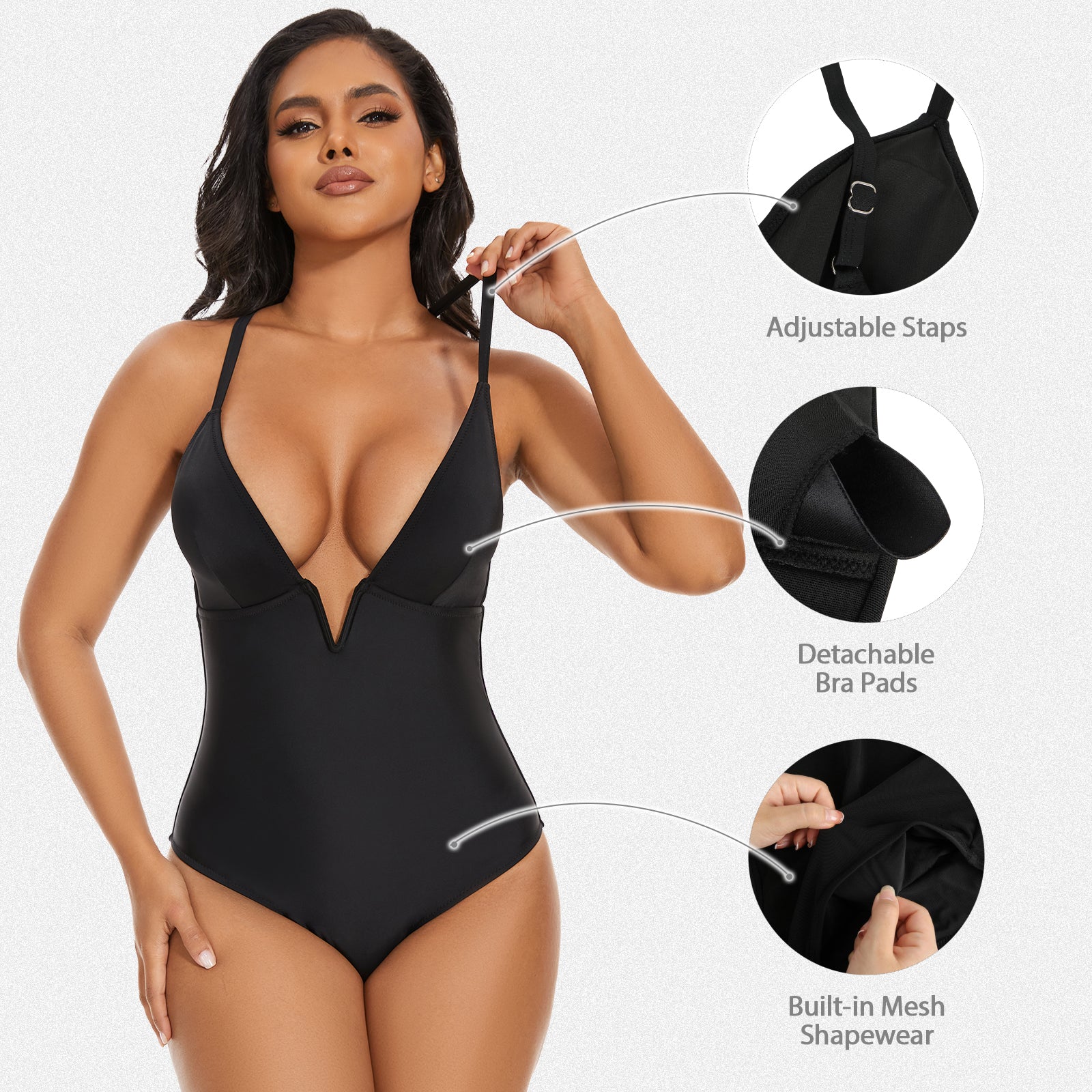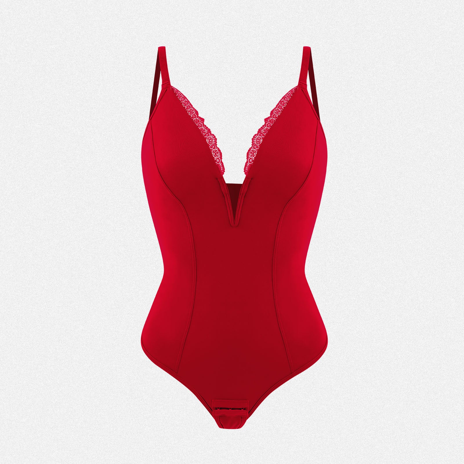 Shaperin Deep V Plunge Low Back Thong Shapewear Tummy Control Bodysuit