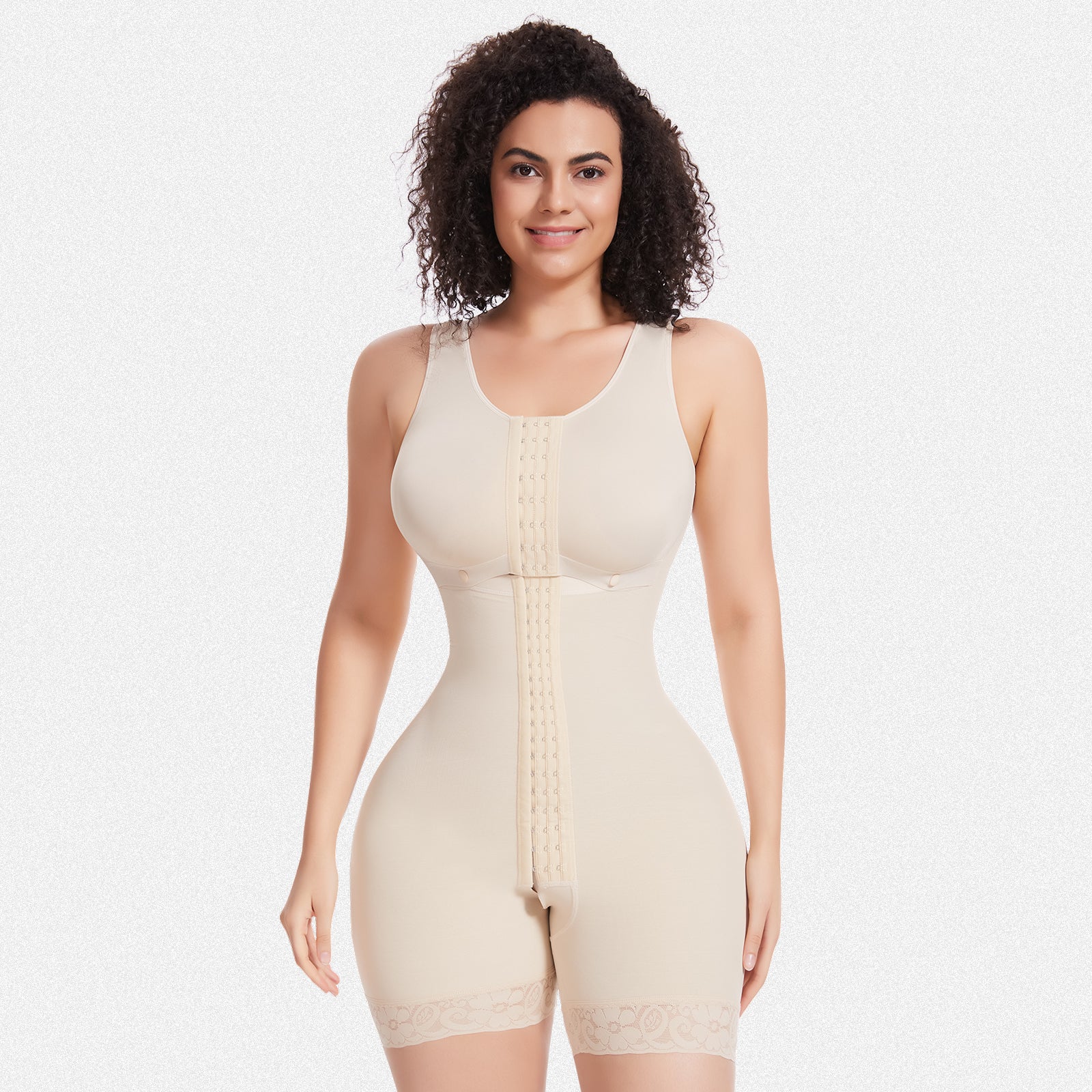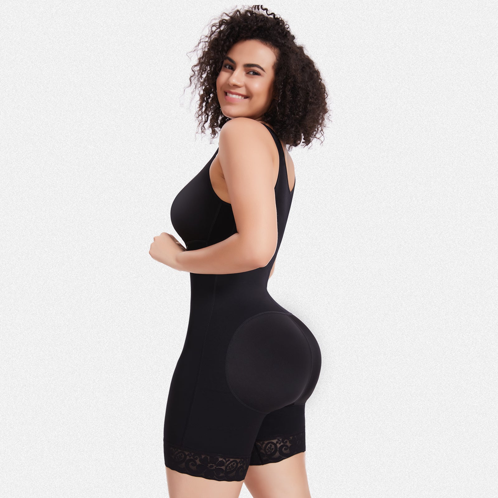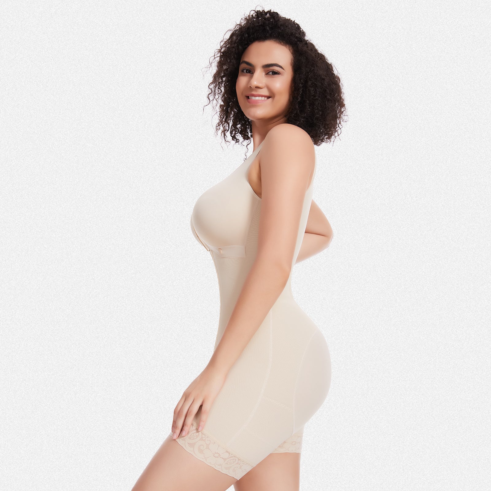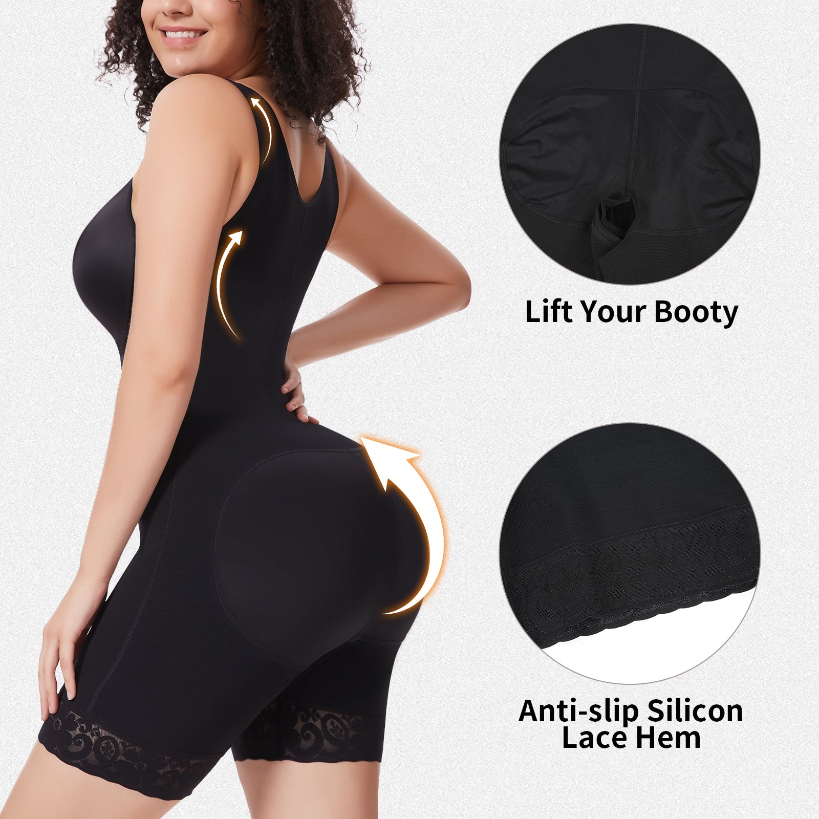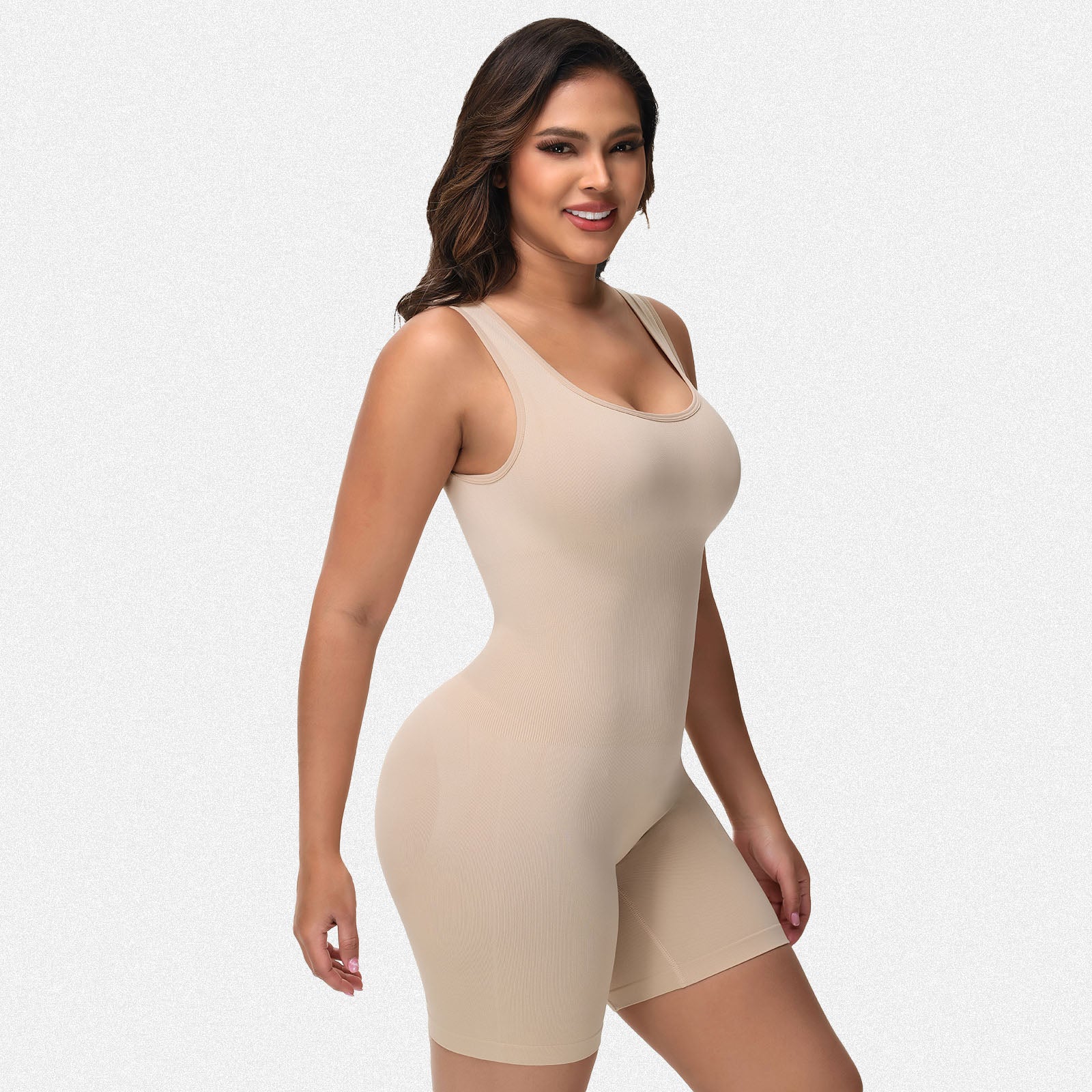 Shaperin Mid Thigh Shapewear Bodysuit with Shoulder Straps