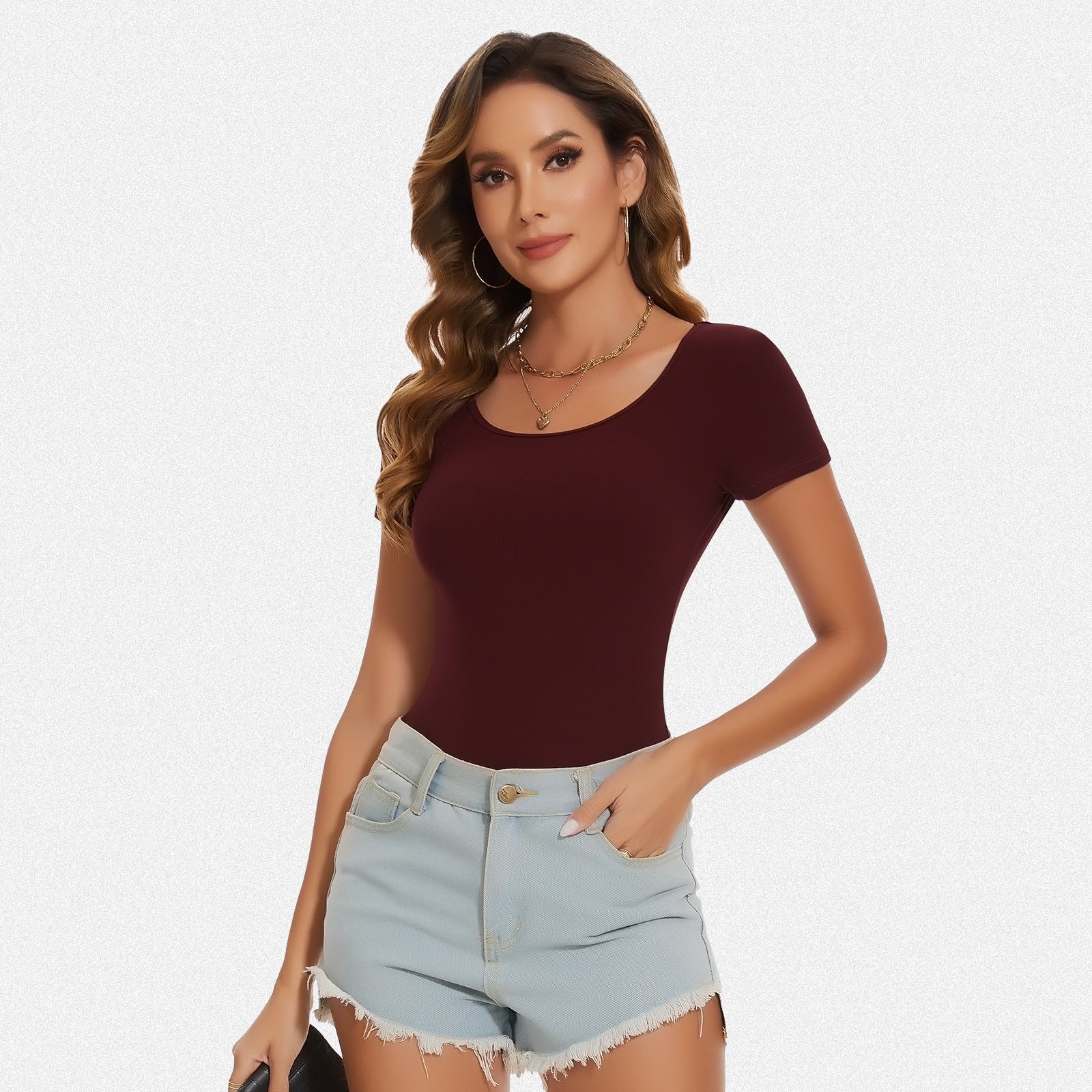 Shaperin Round Neck Short Sleeve Bodysuit Tops