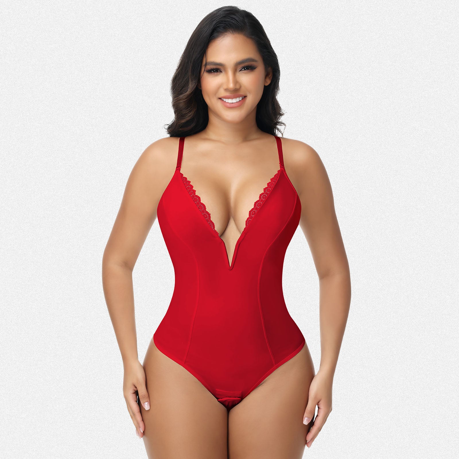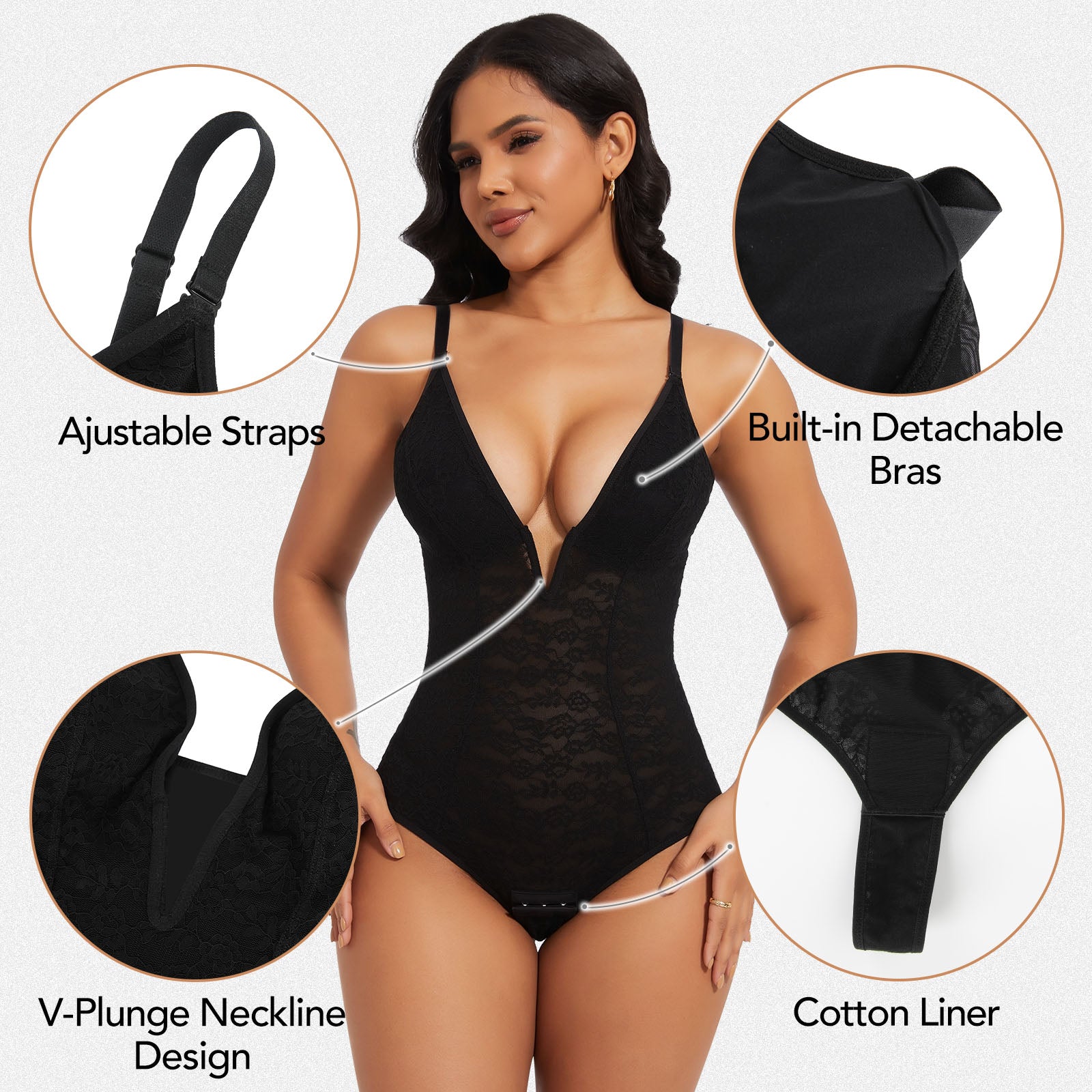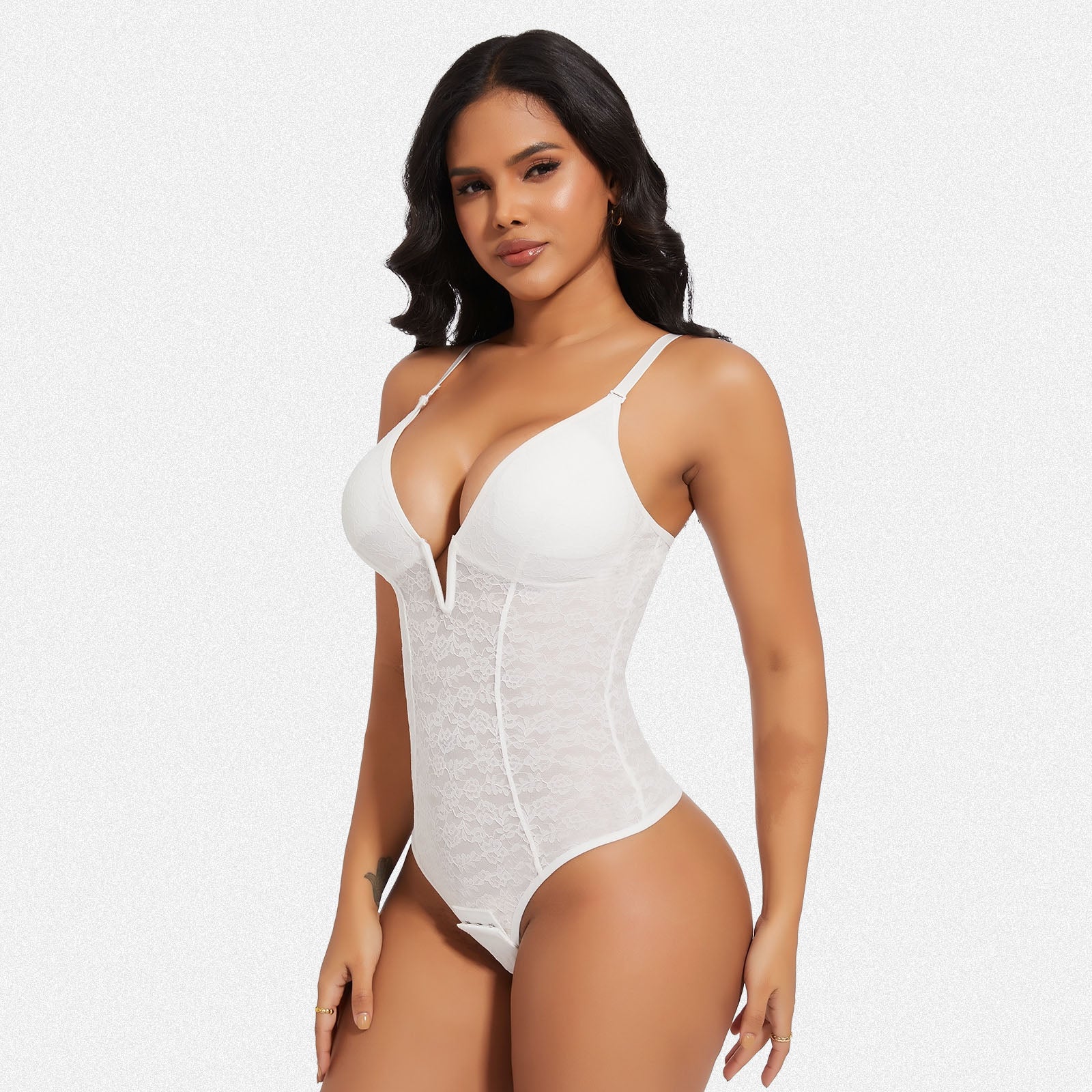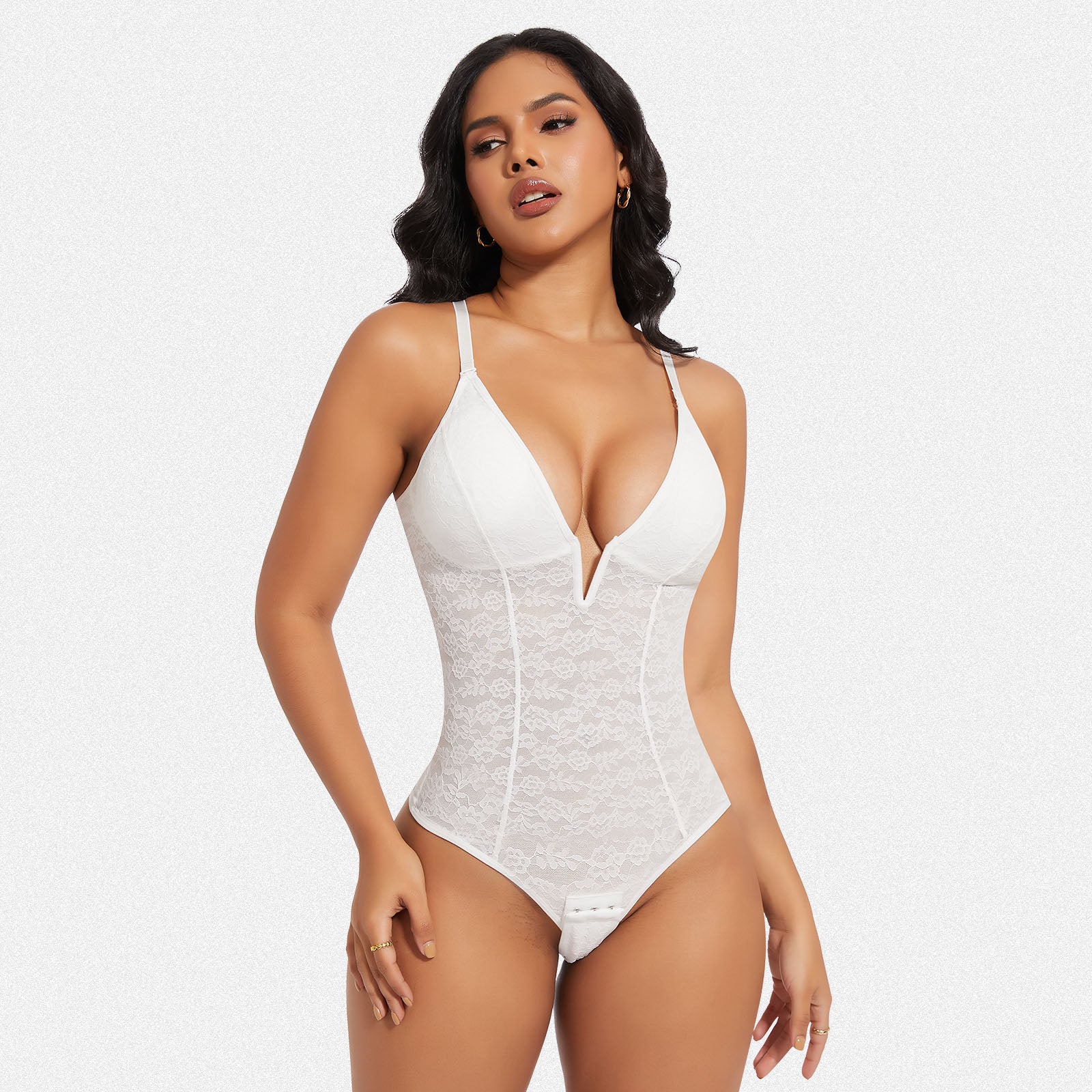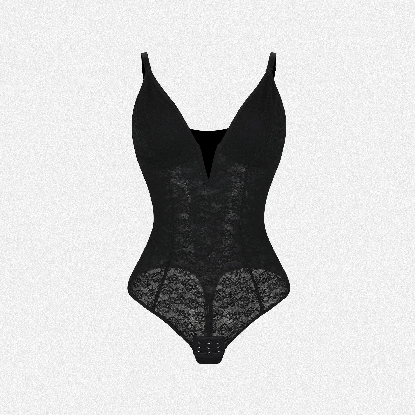 Shaperin Lace Bodysuit Deep V Shapewear Thong