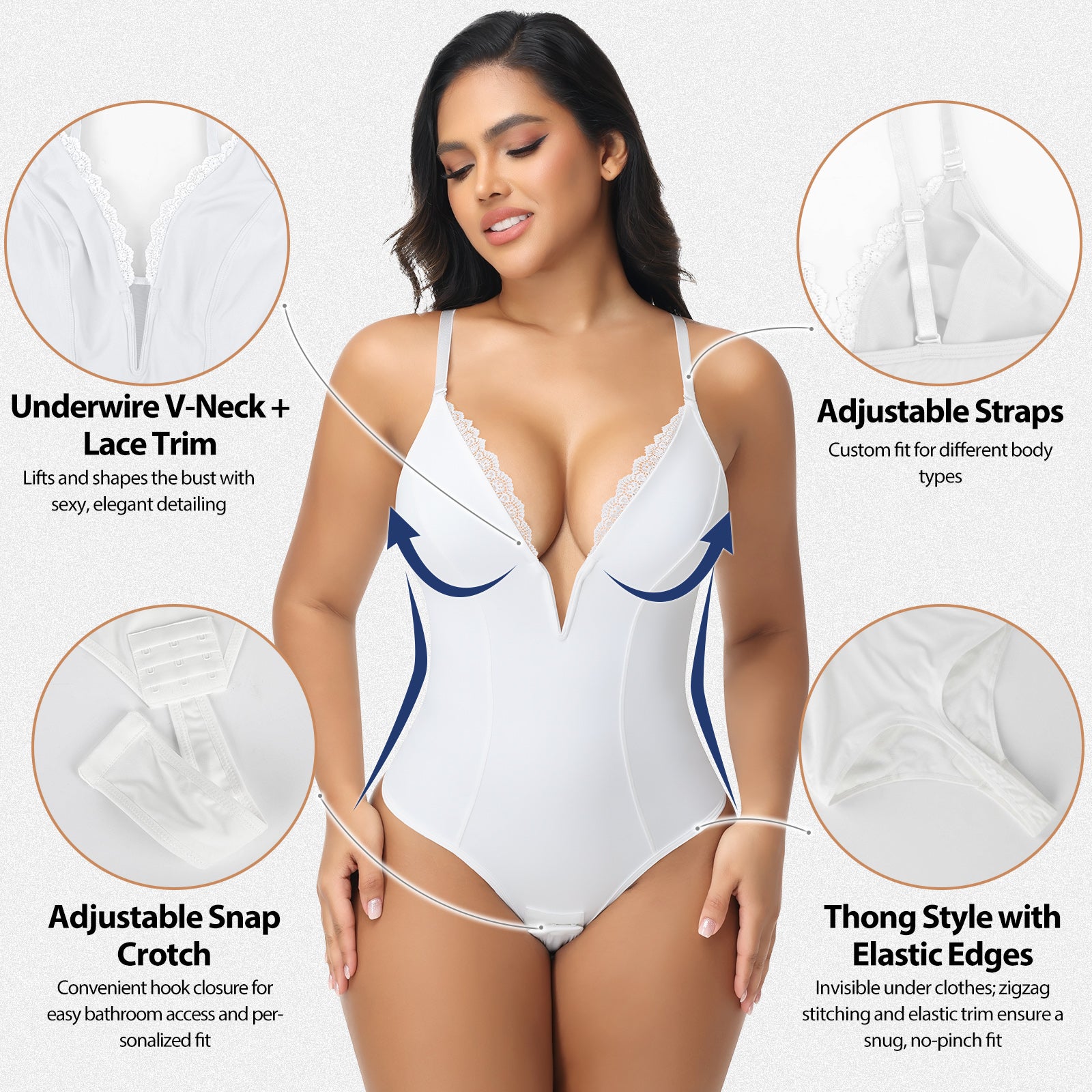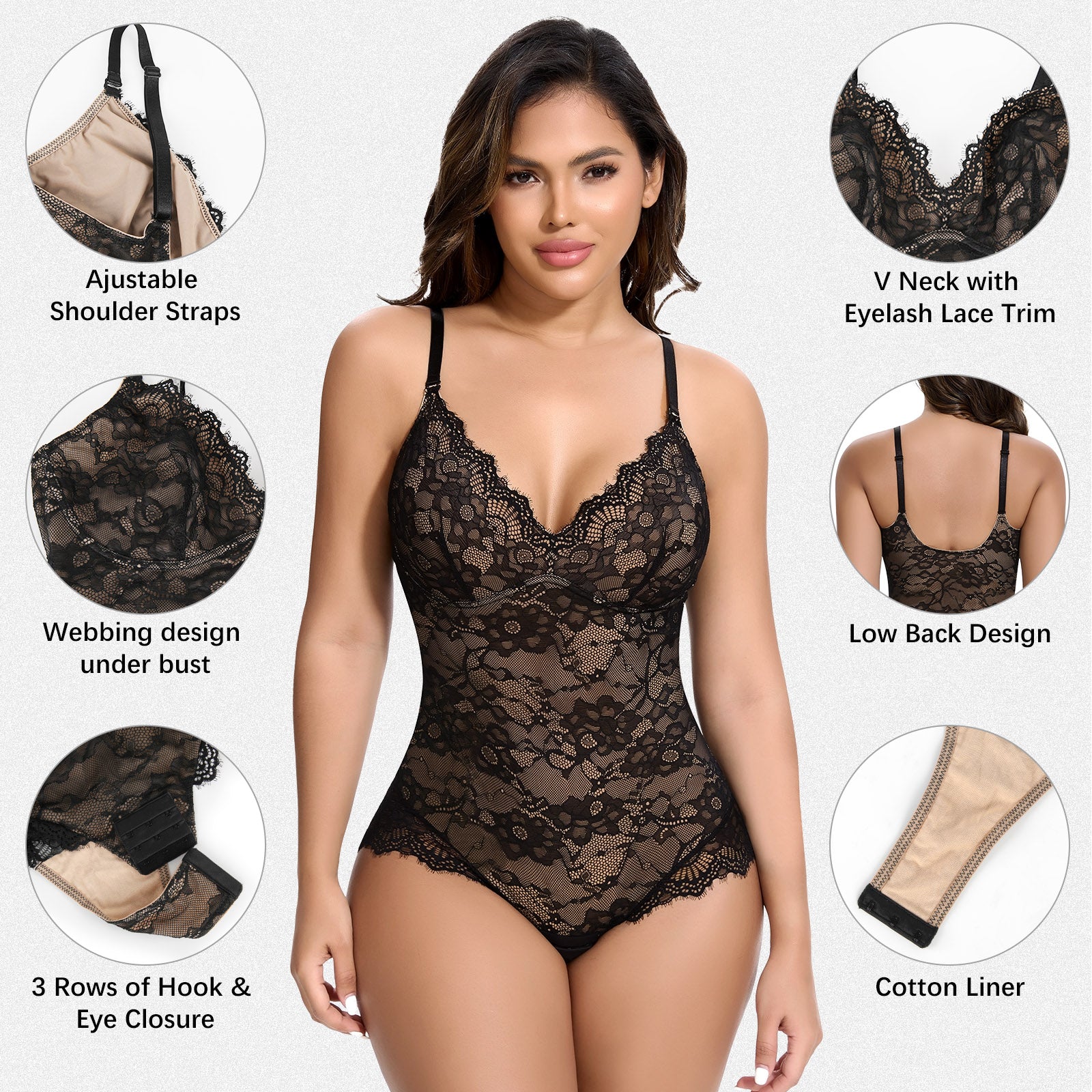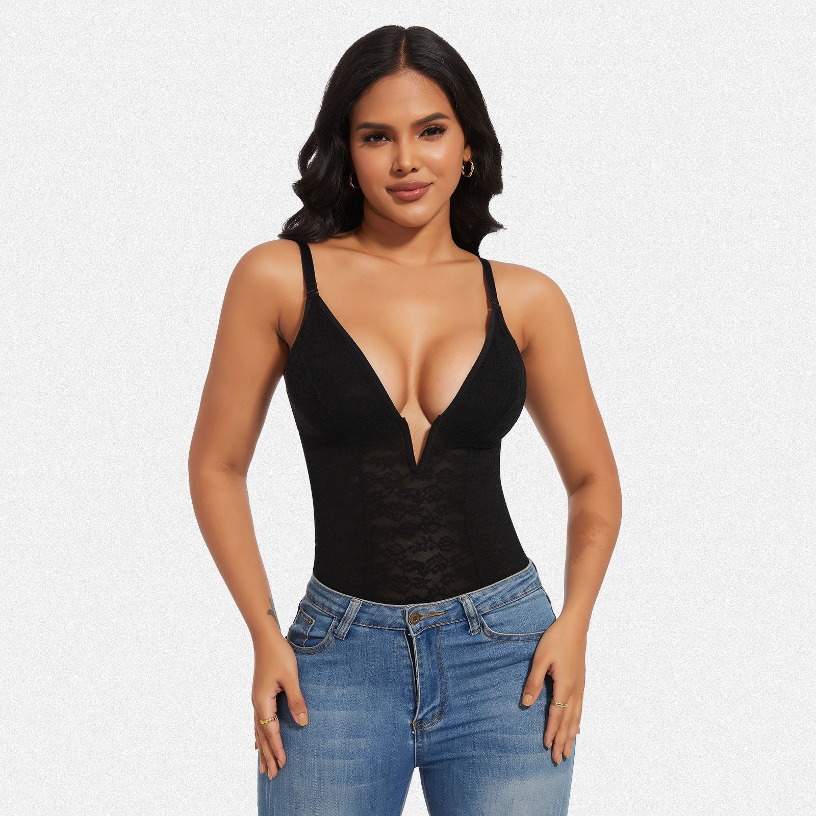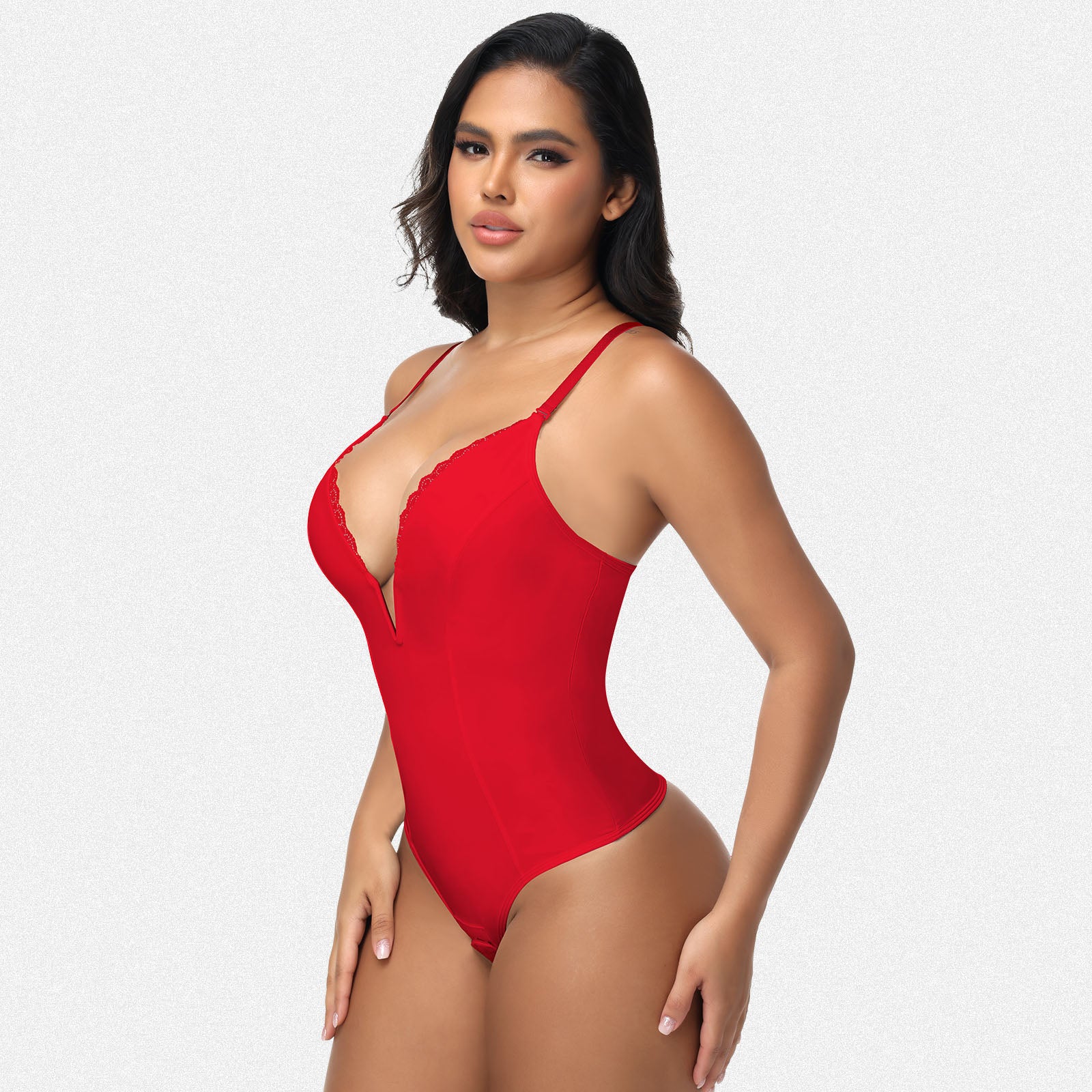 Shaperin Lace Bodysuit Deep V Shapewear Thong