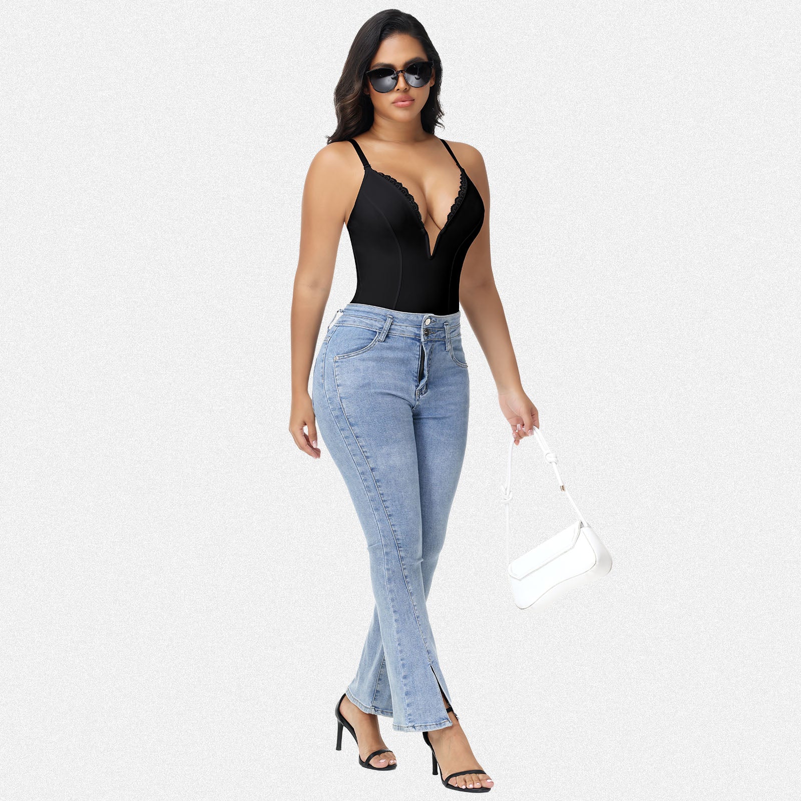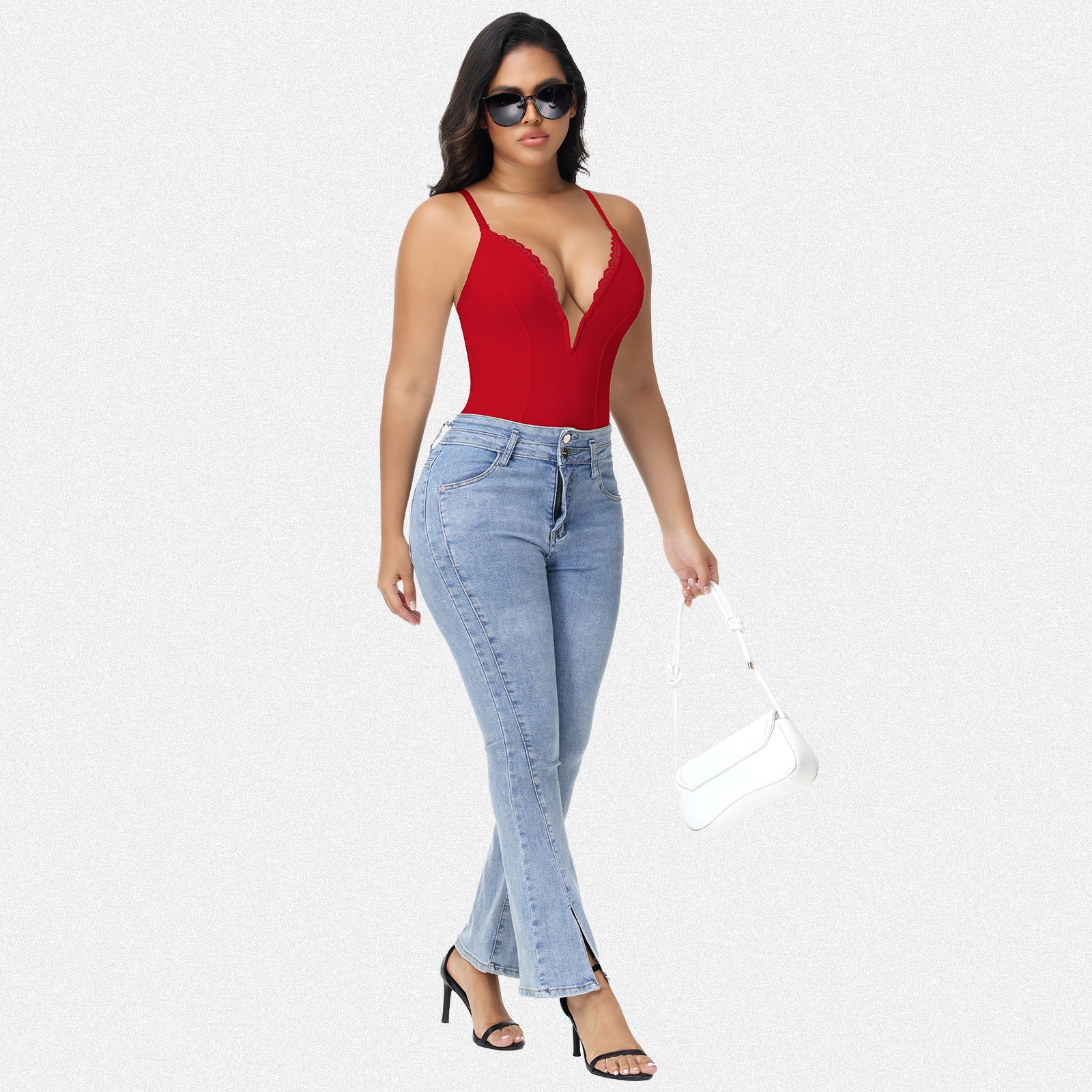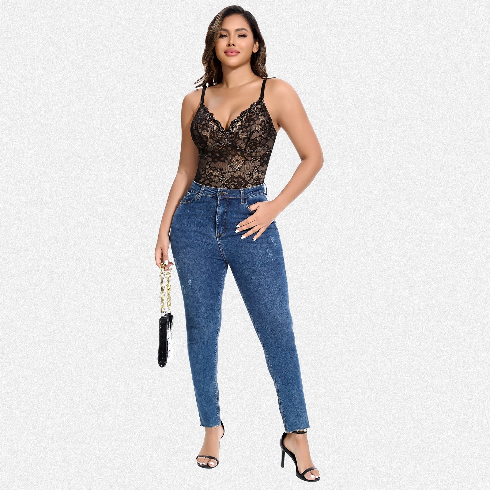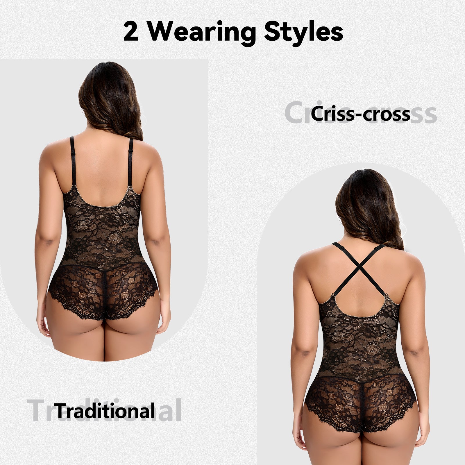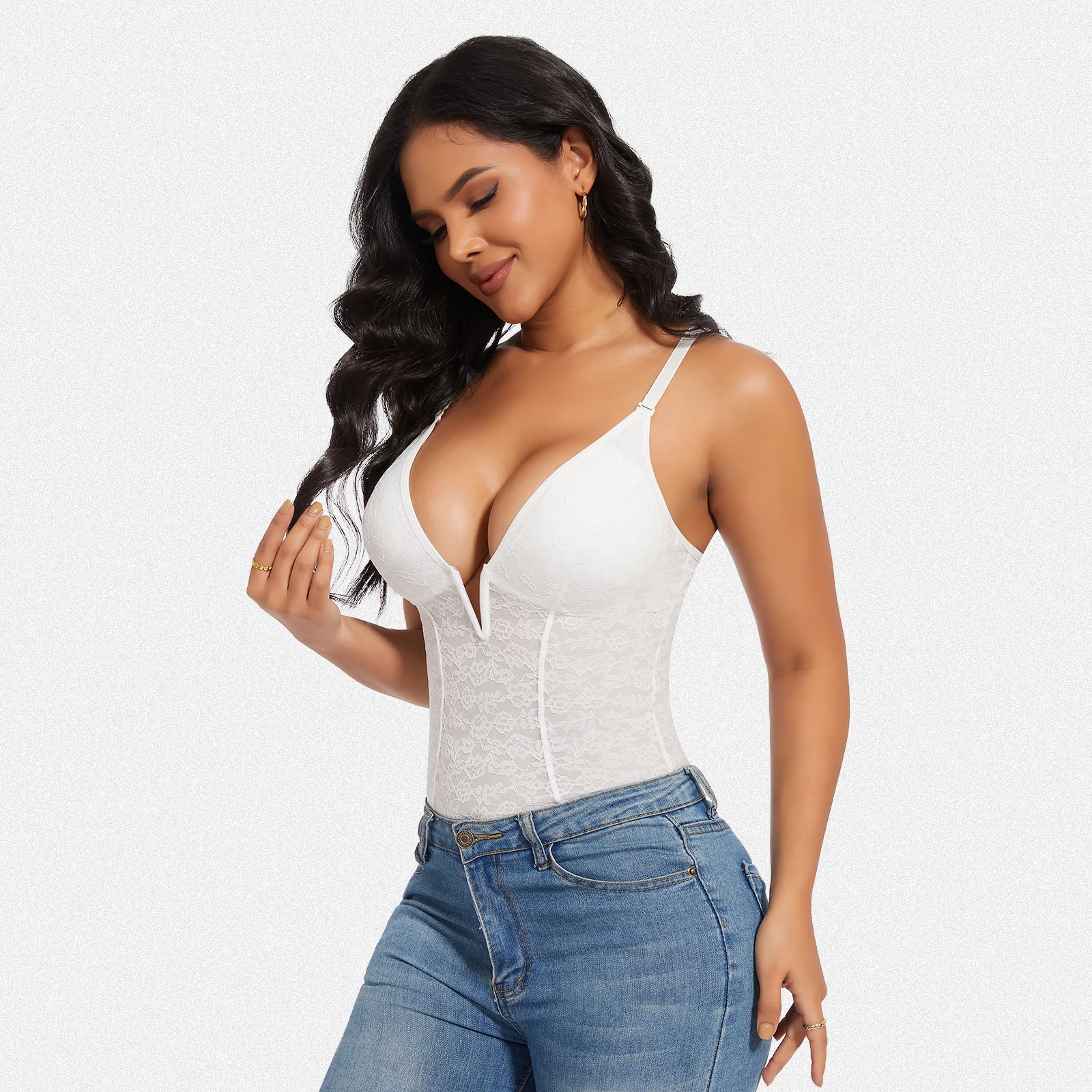 Shaperin Lace Bodysuit Deep V Shapewear Thong