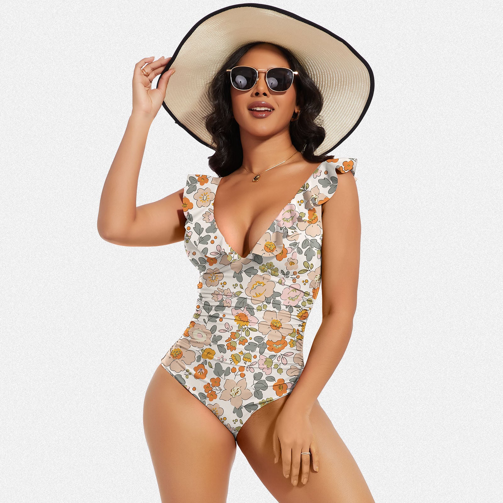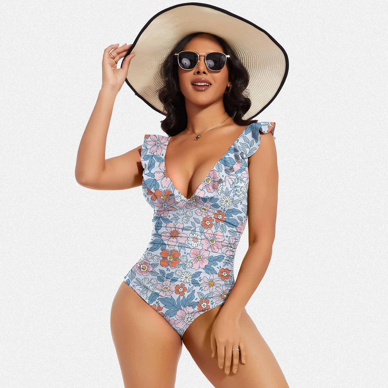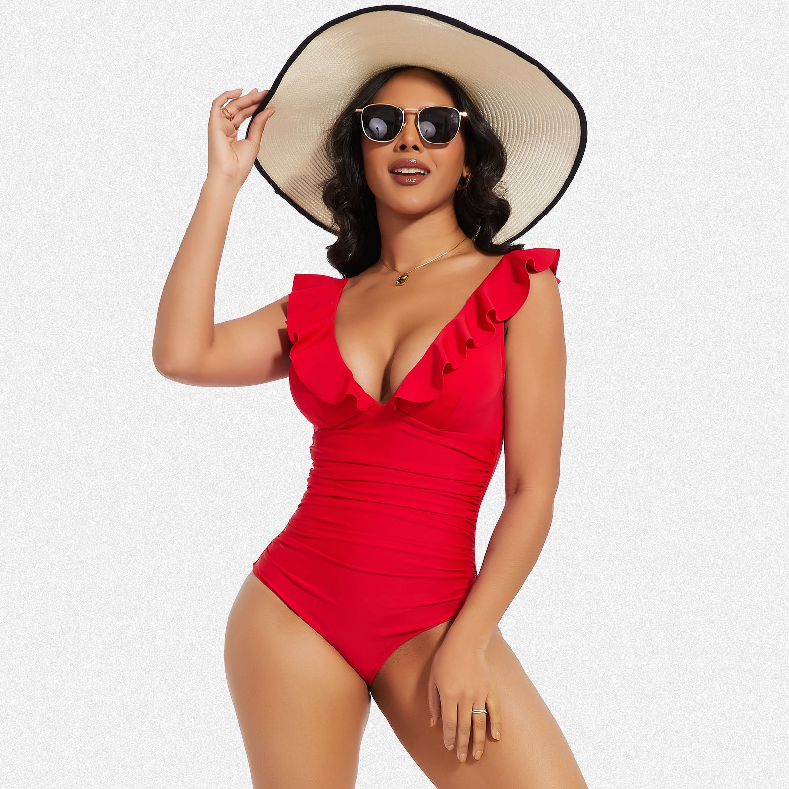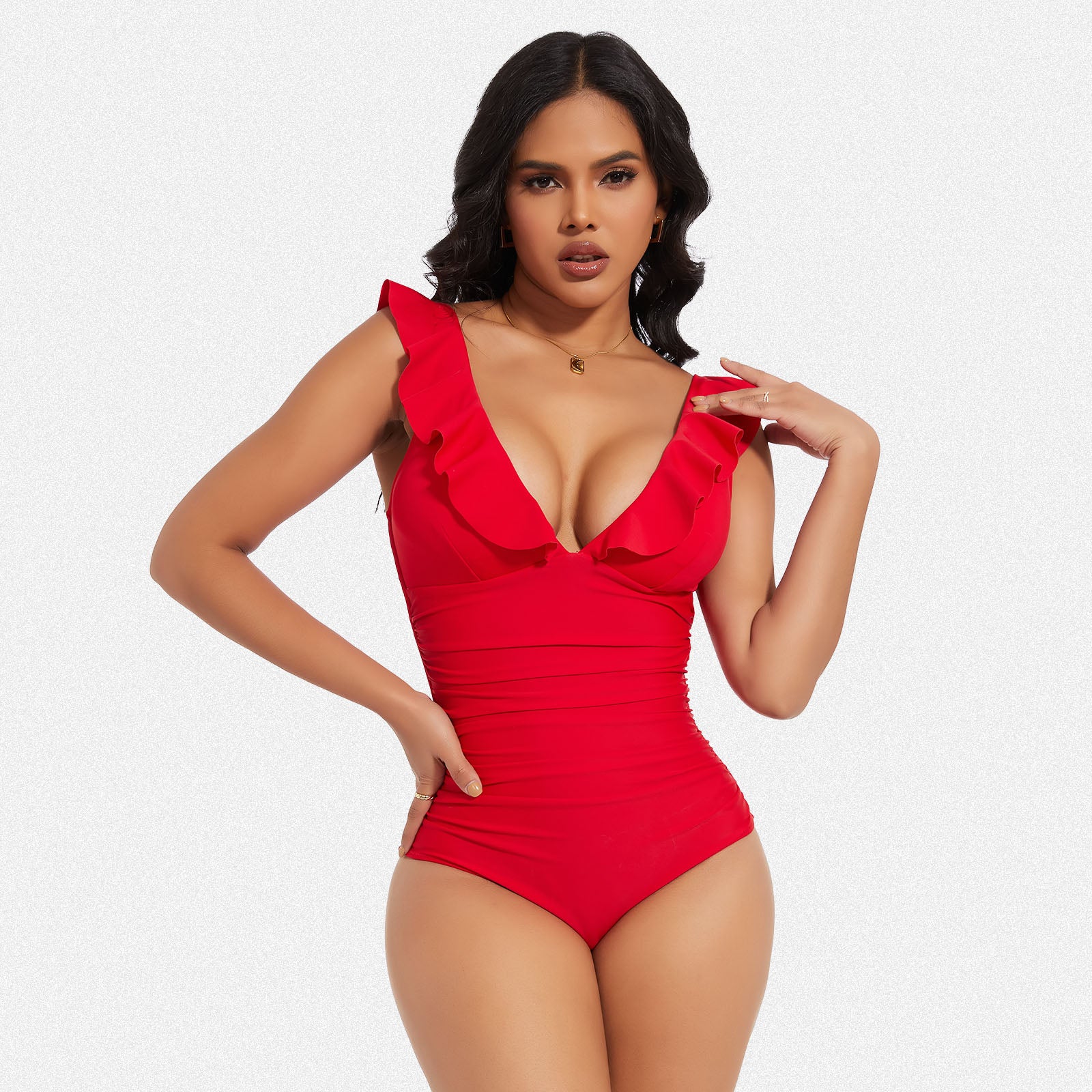 Shaperin Ruffle One Piece Swimsuits Tummy Control Bathing Suit