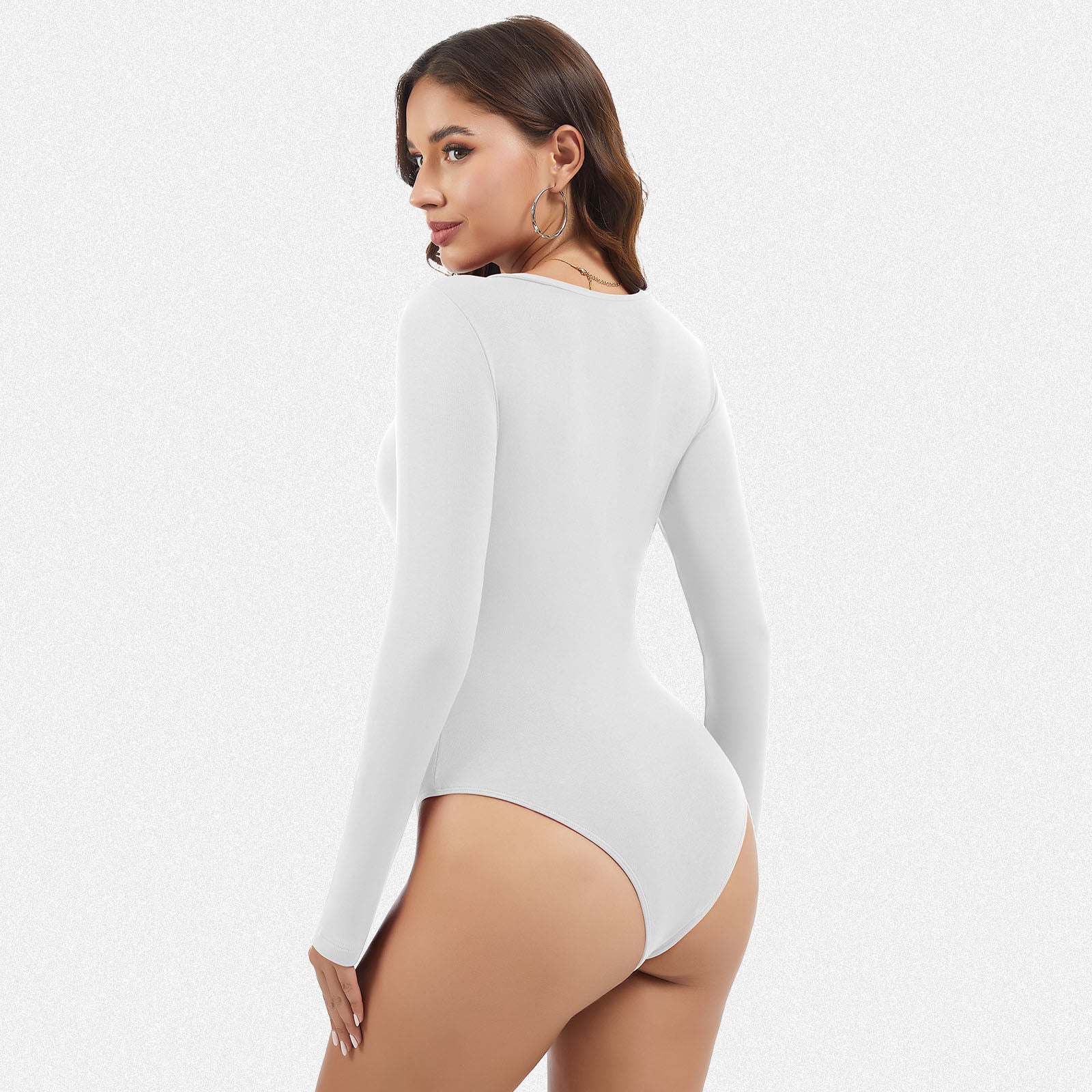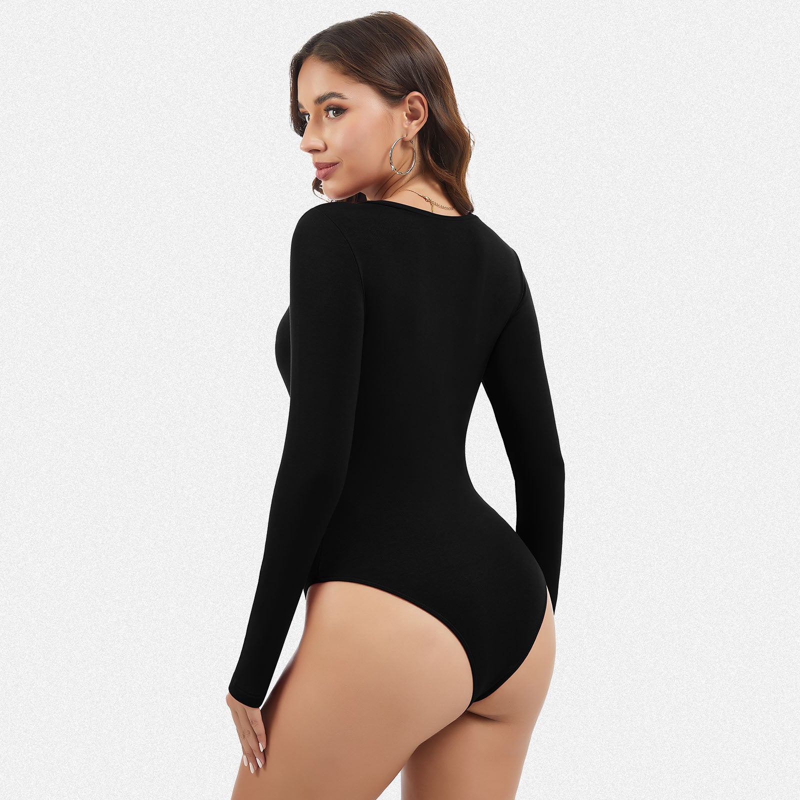 Shaperin Long Sleeve Cut Out Front Bodysuit Top