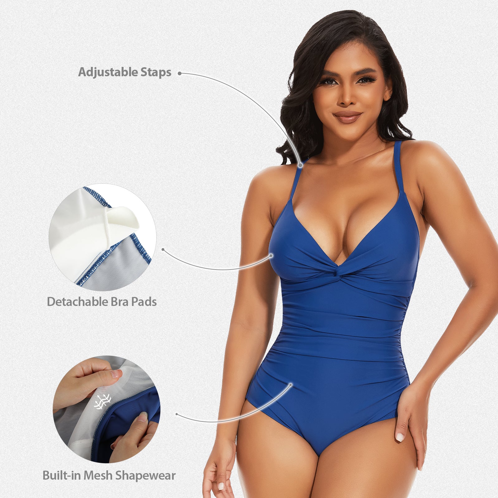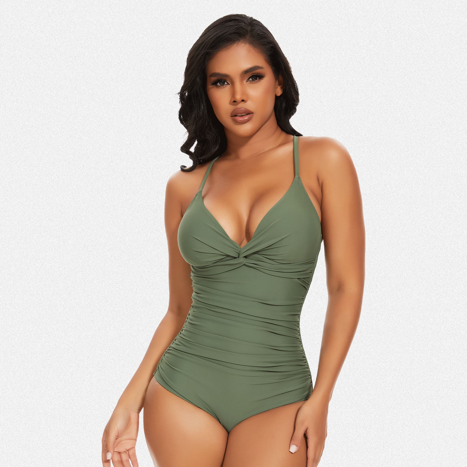 Shaperin Tummy Control One Piece Cross Back Slimming Swimsuit