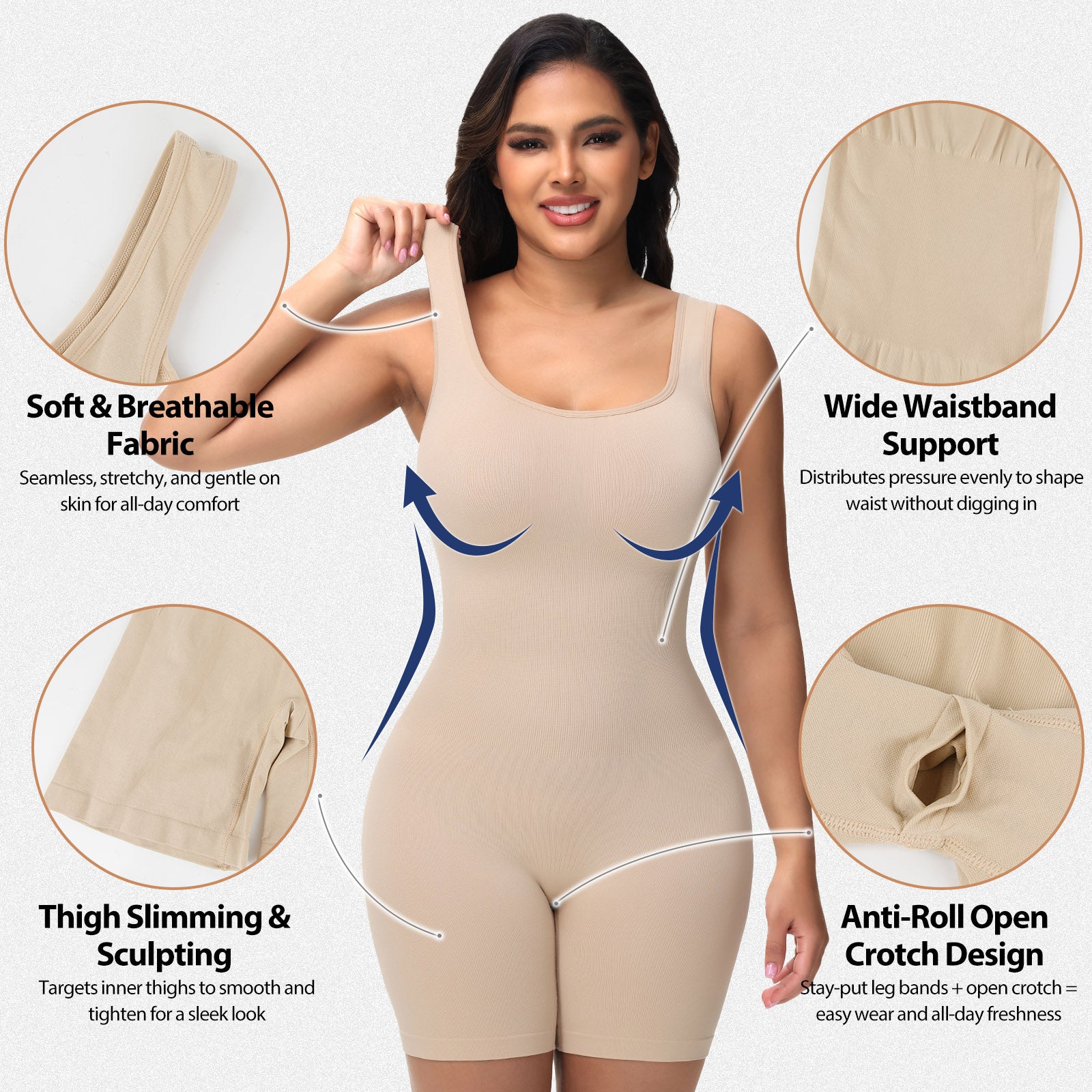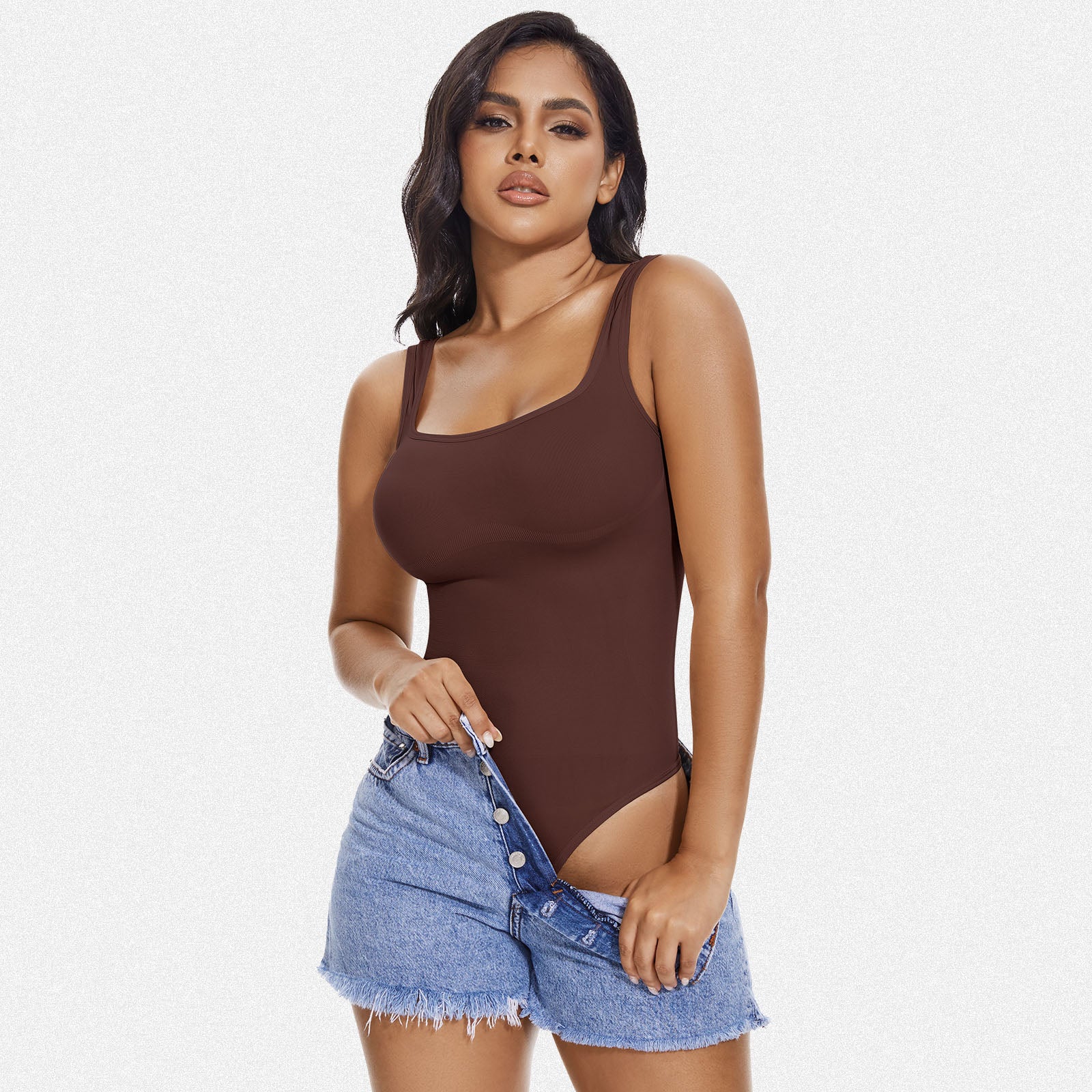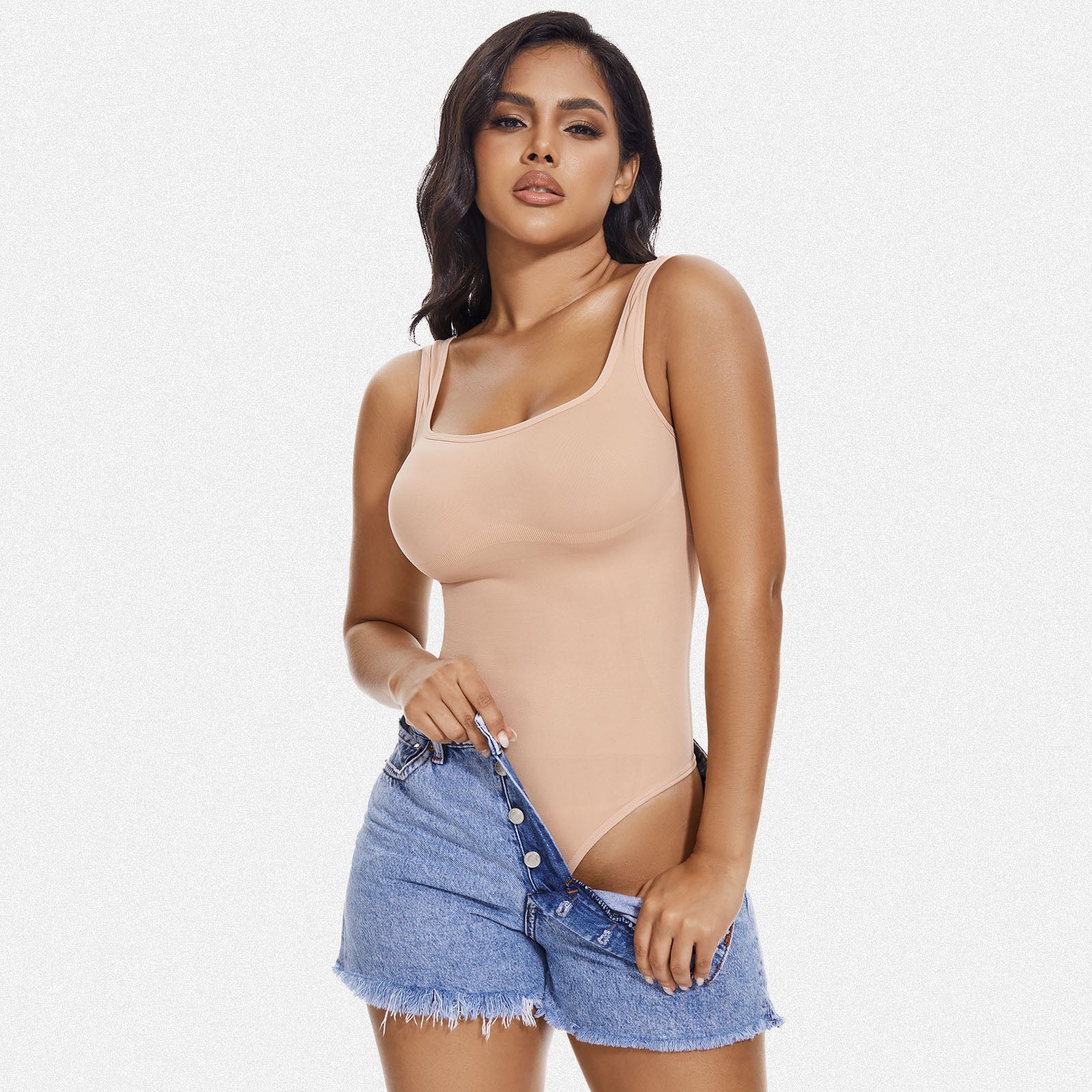 Shaperin Square Neck Tank Sleeveless Bodysuit Top