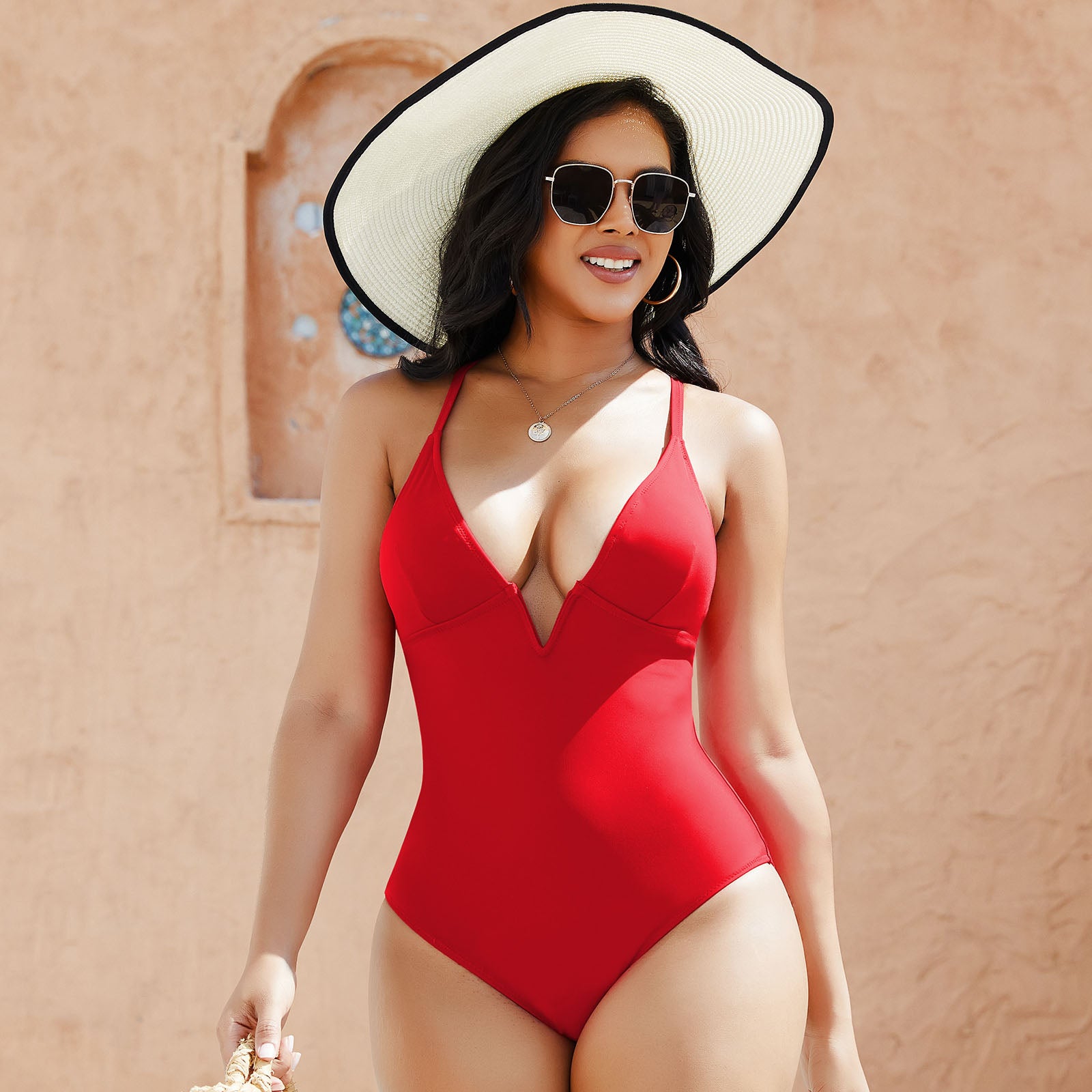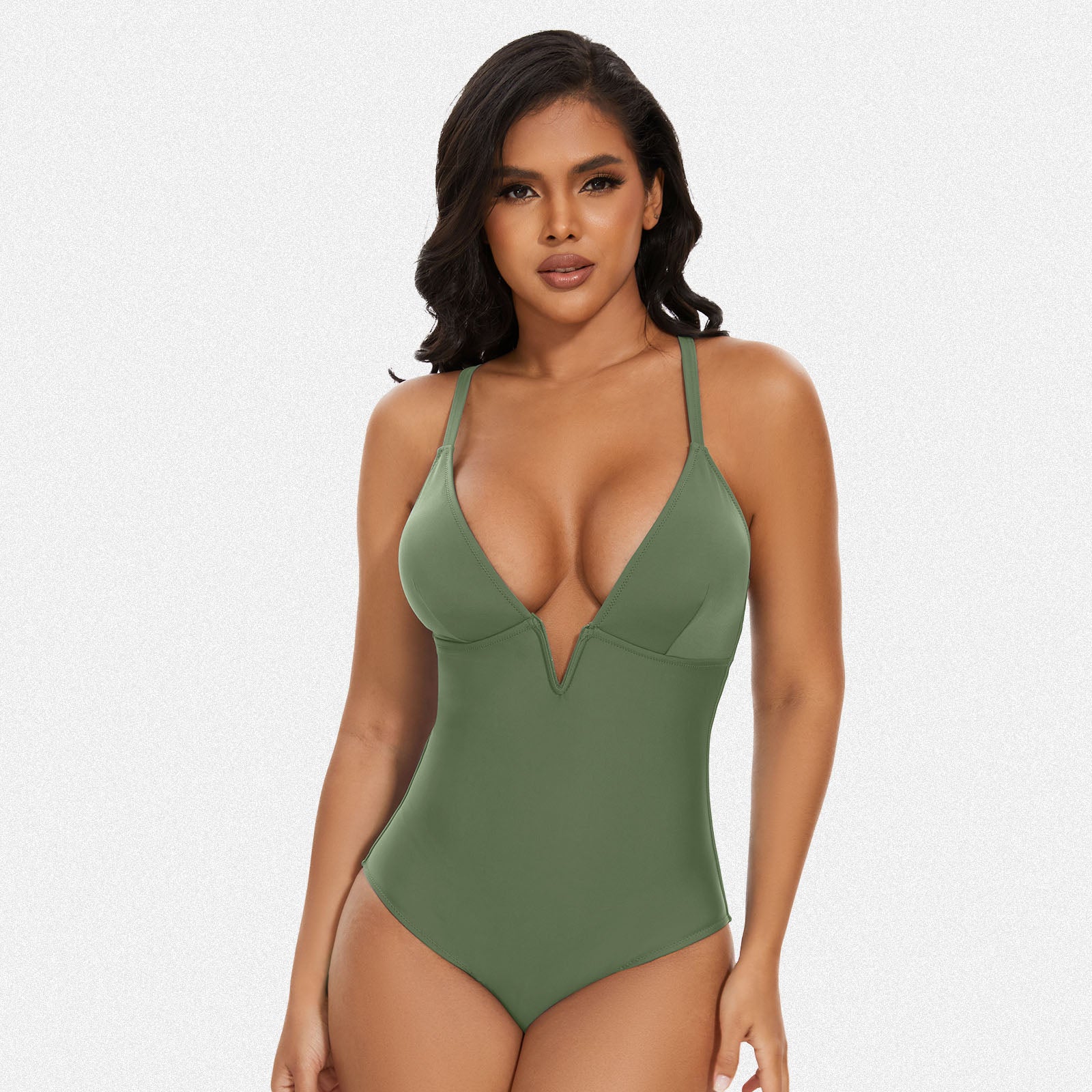 Shaperin Tummy Control Deep V Neck Shapewear Swimsuit
