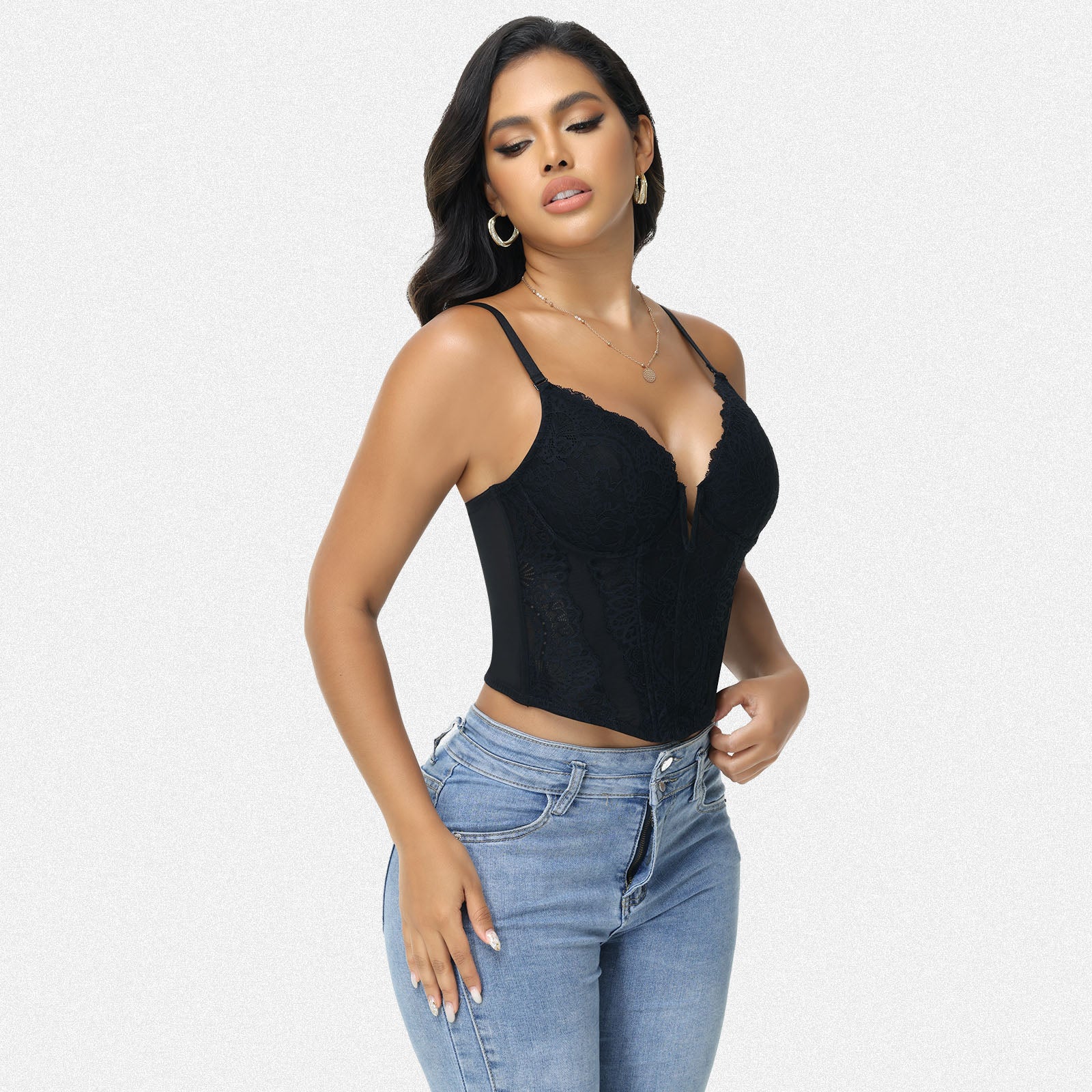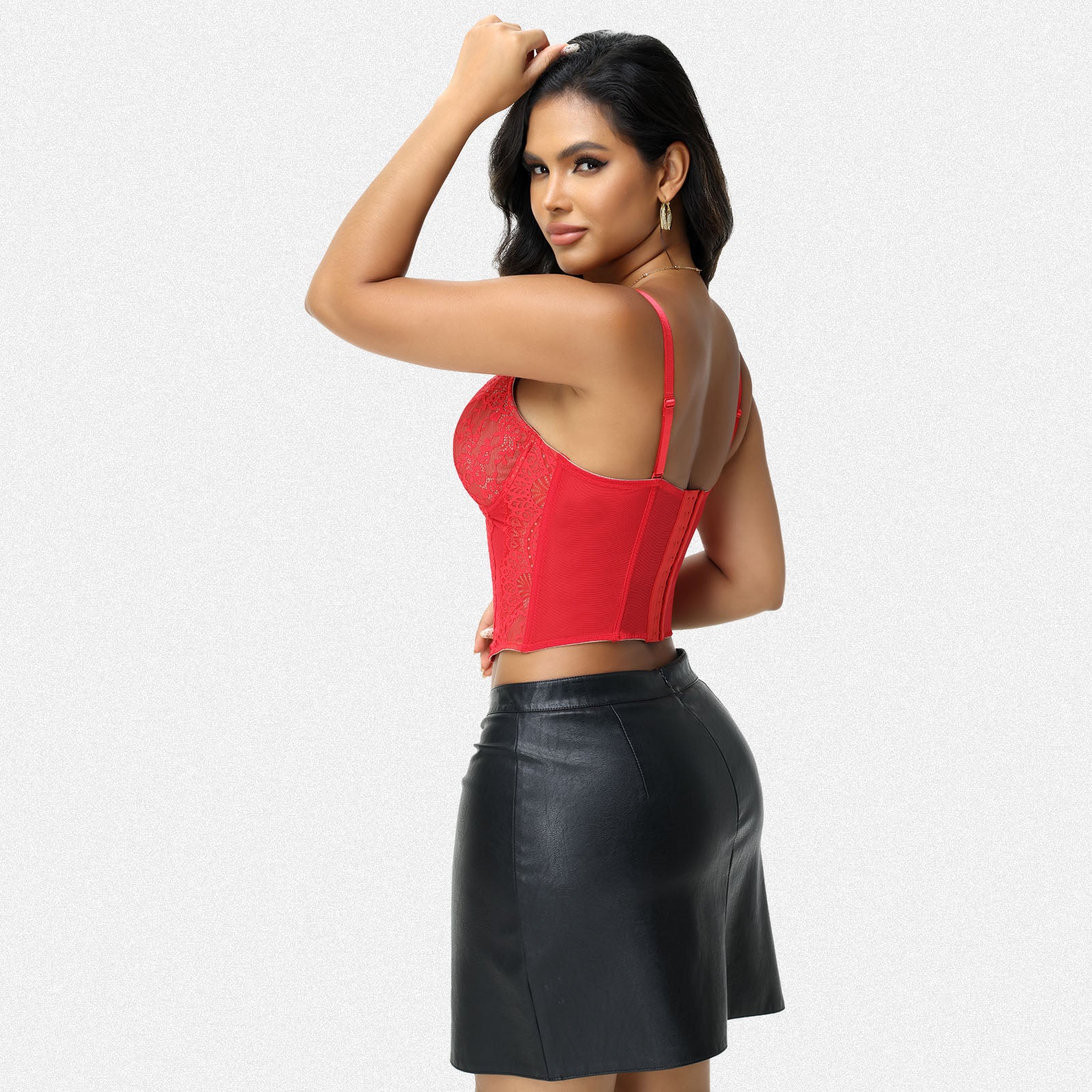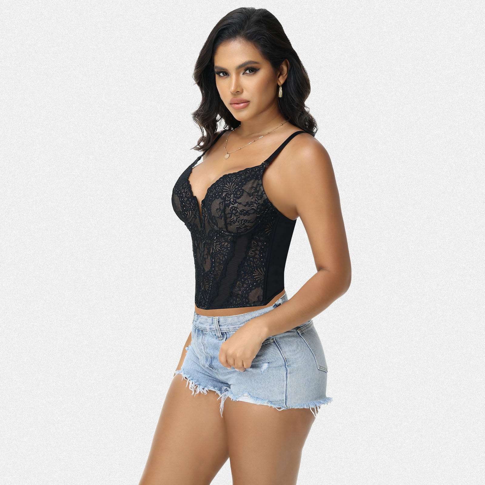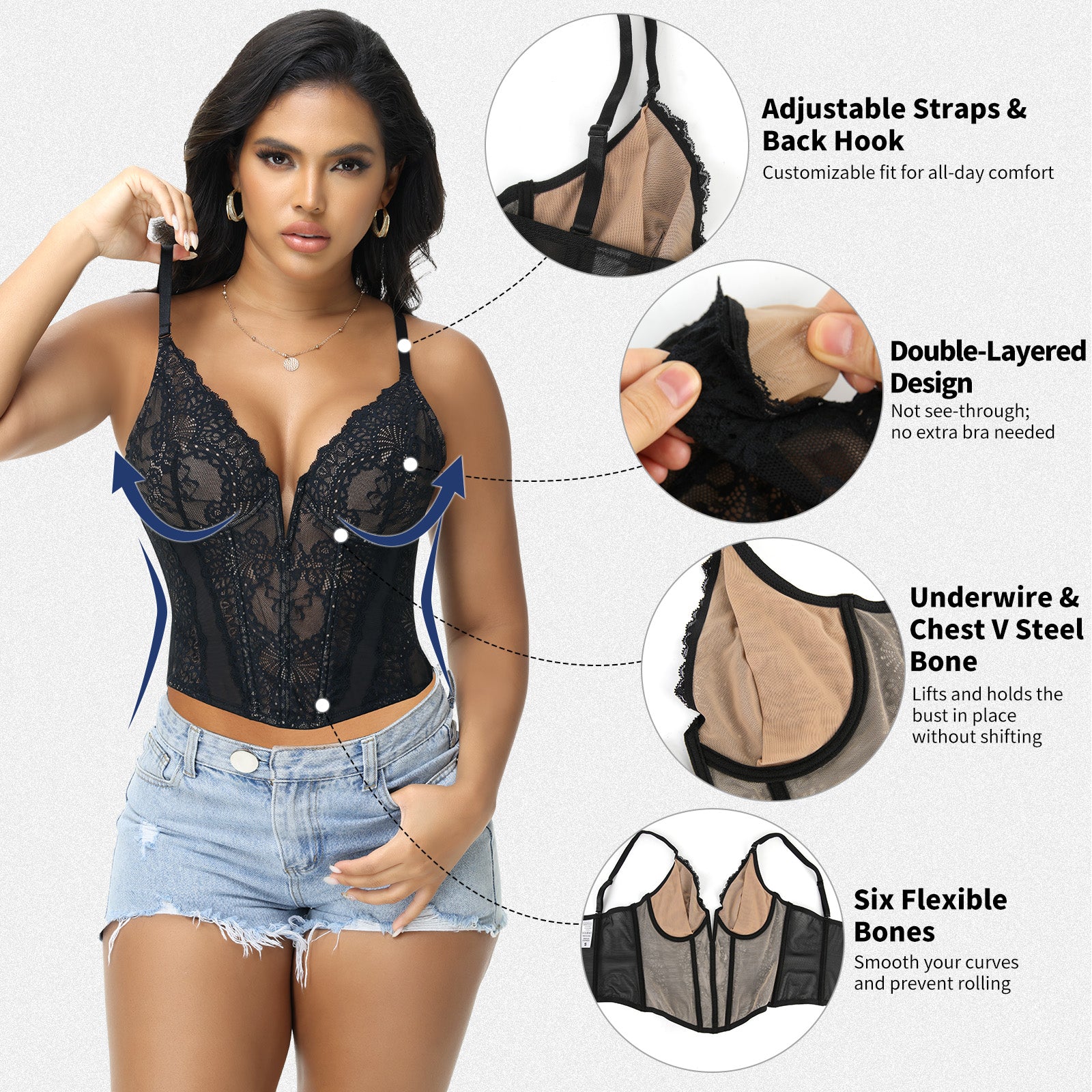 Shaperin Sexy Lace Bustier Crop Corset Top with Underwire for Women Going Out