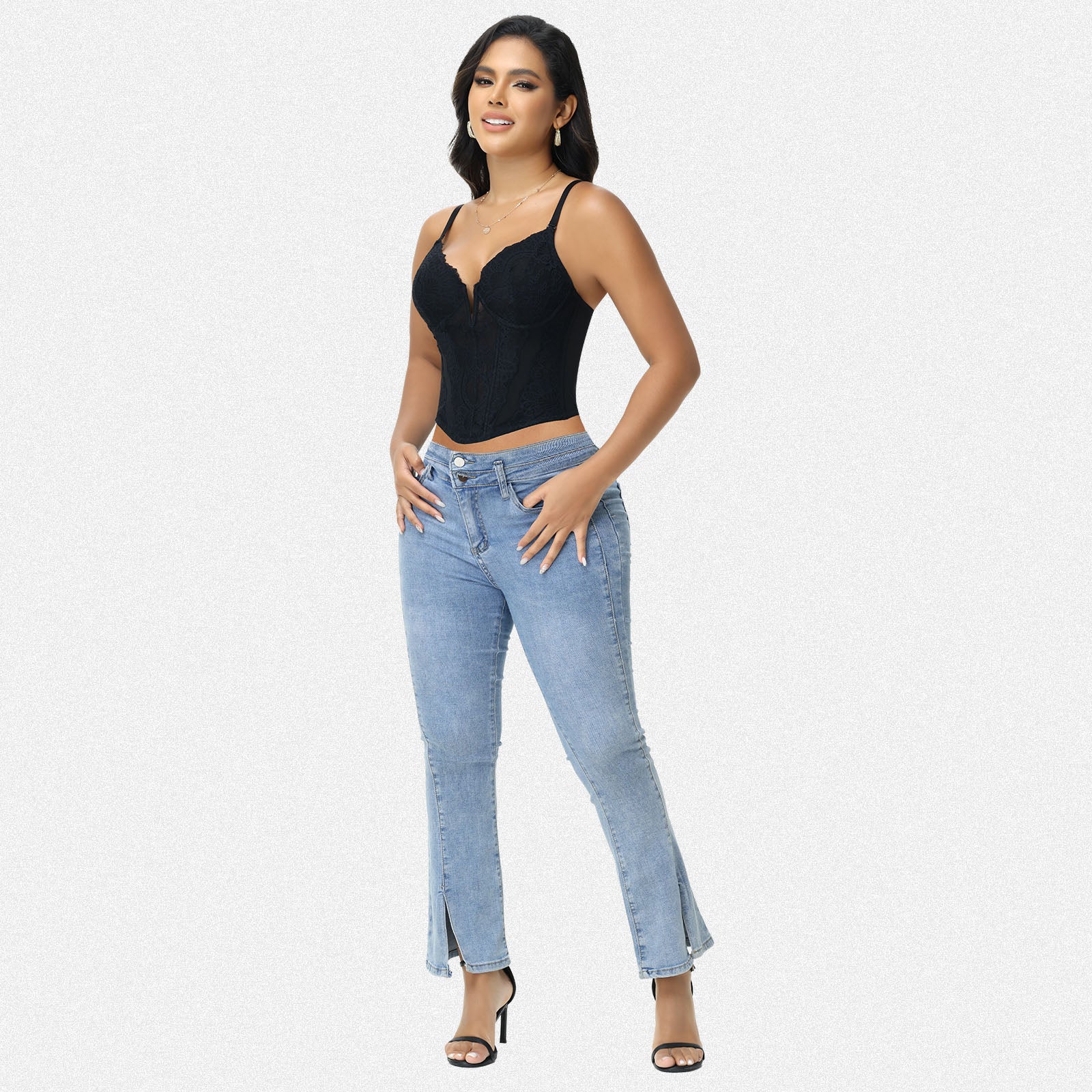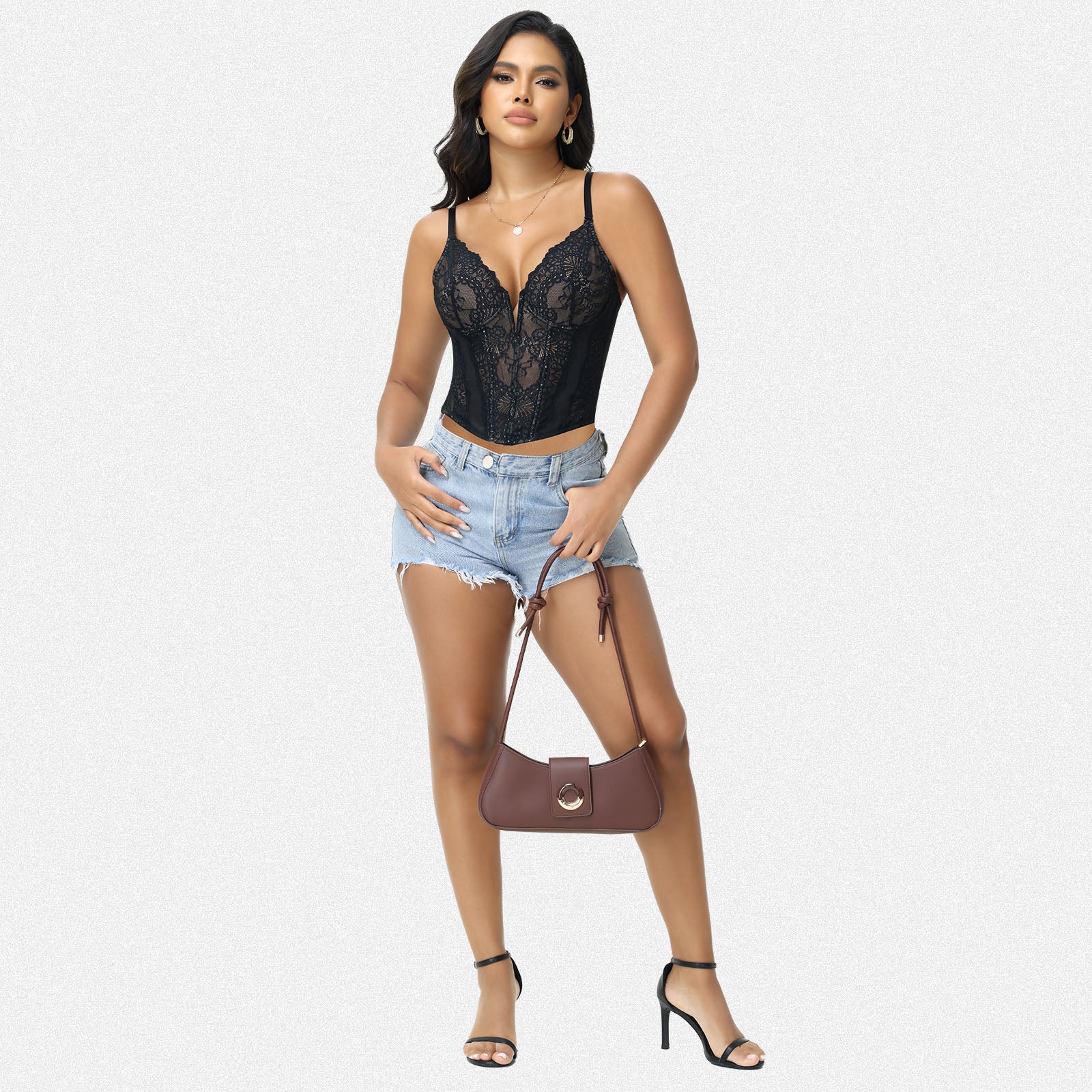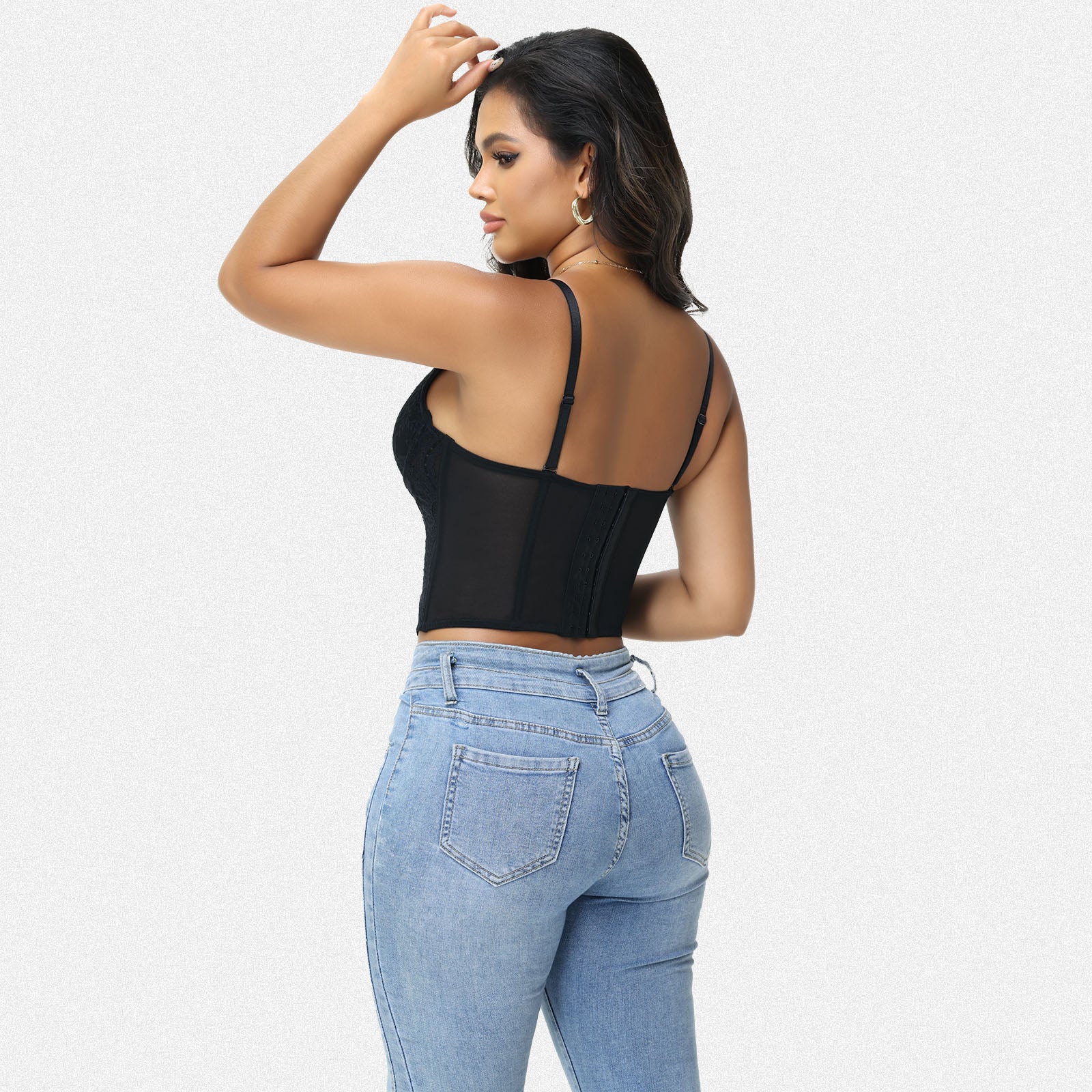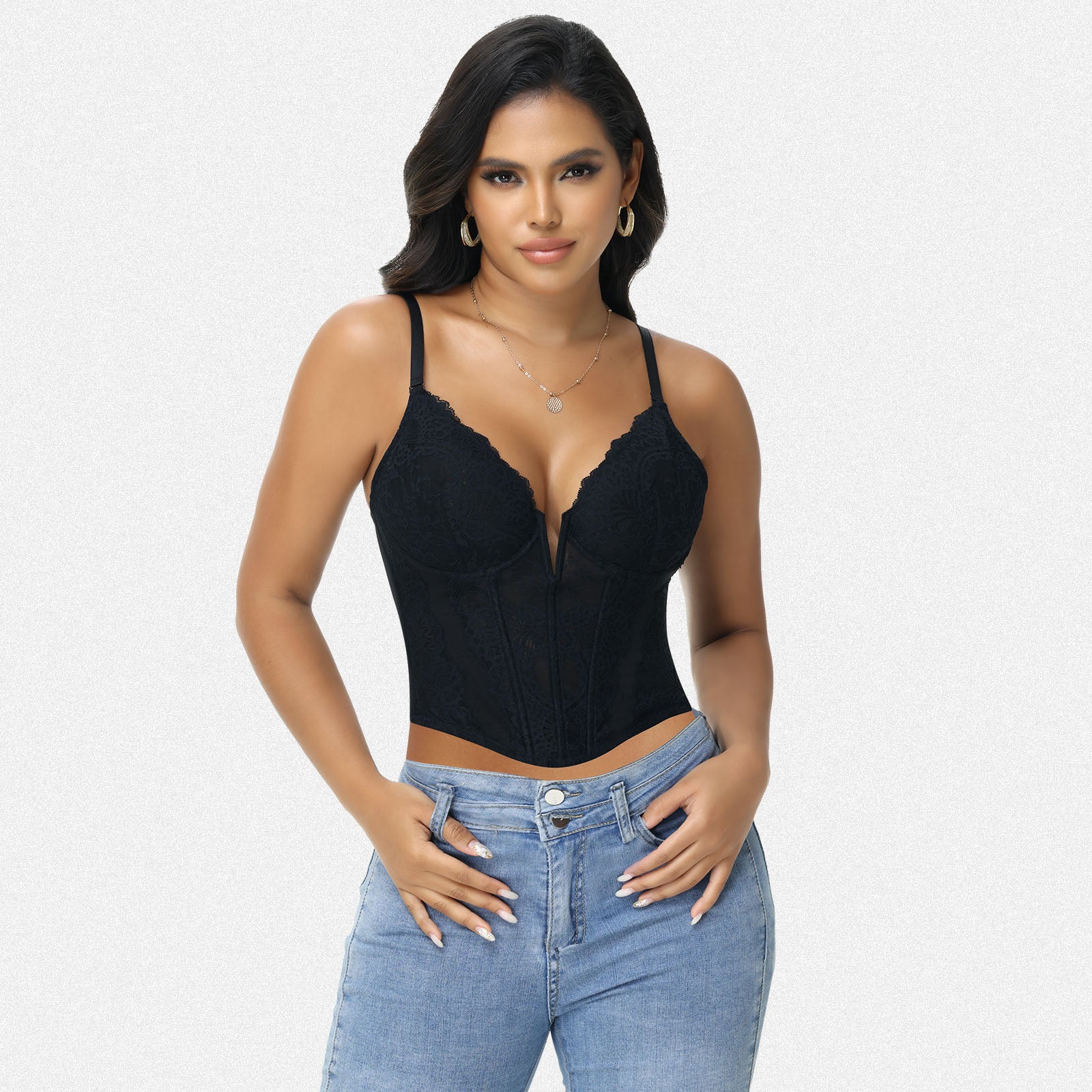Shaperin Sexy Lace Bustier Crop Corset Top with Underwire for Women Going Out