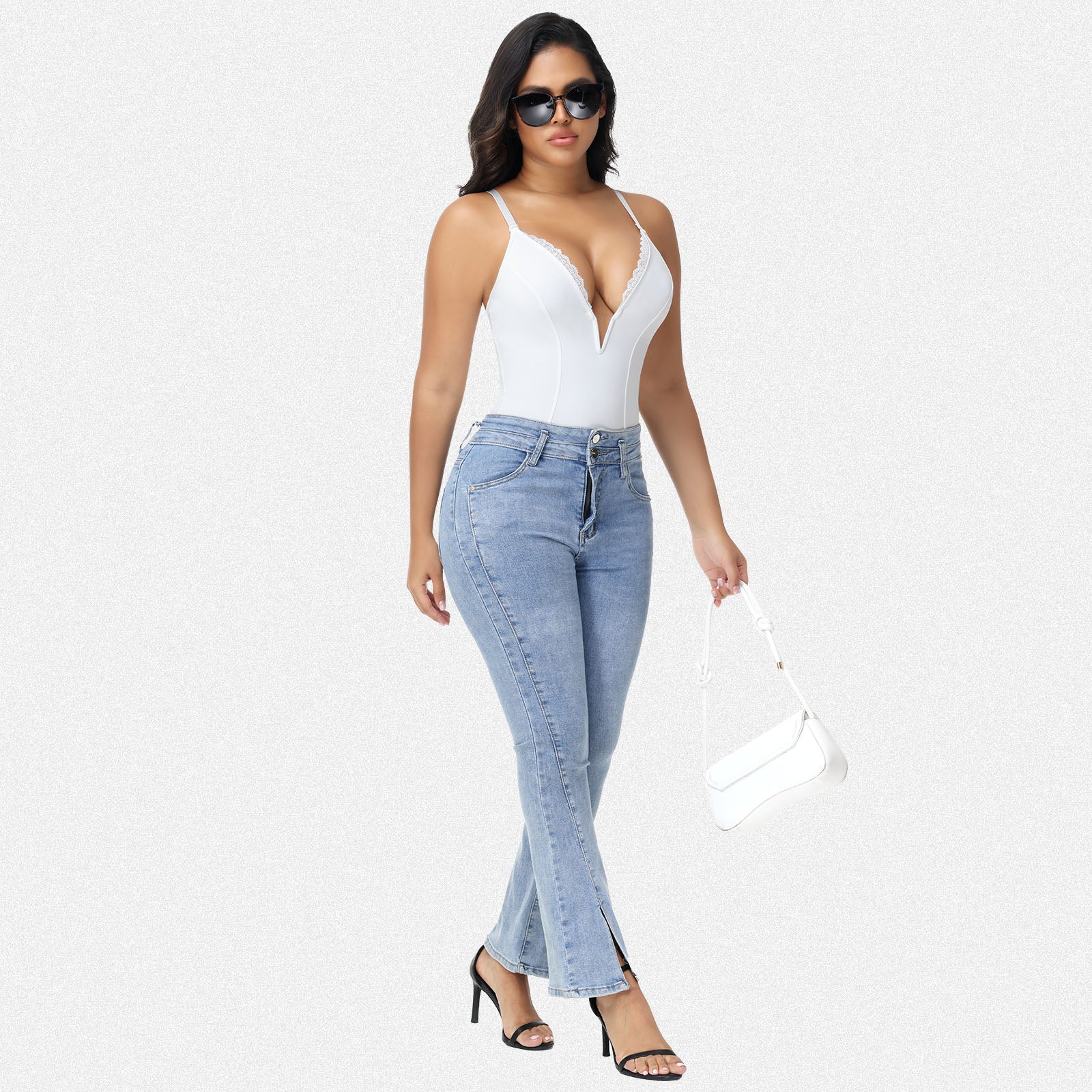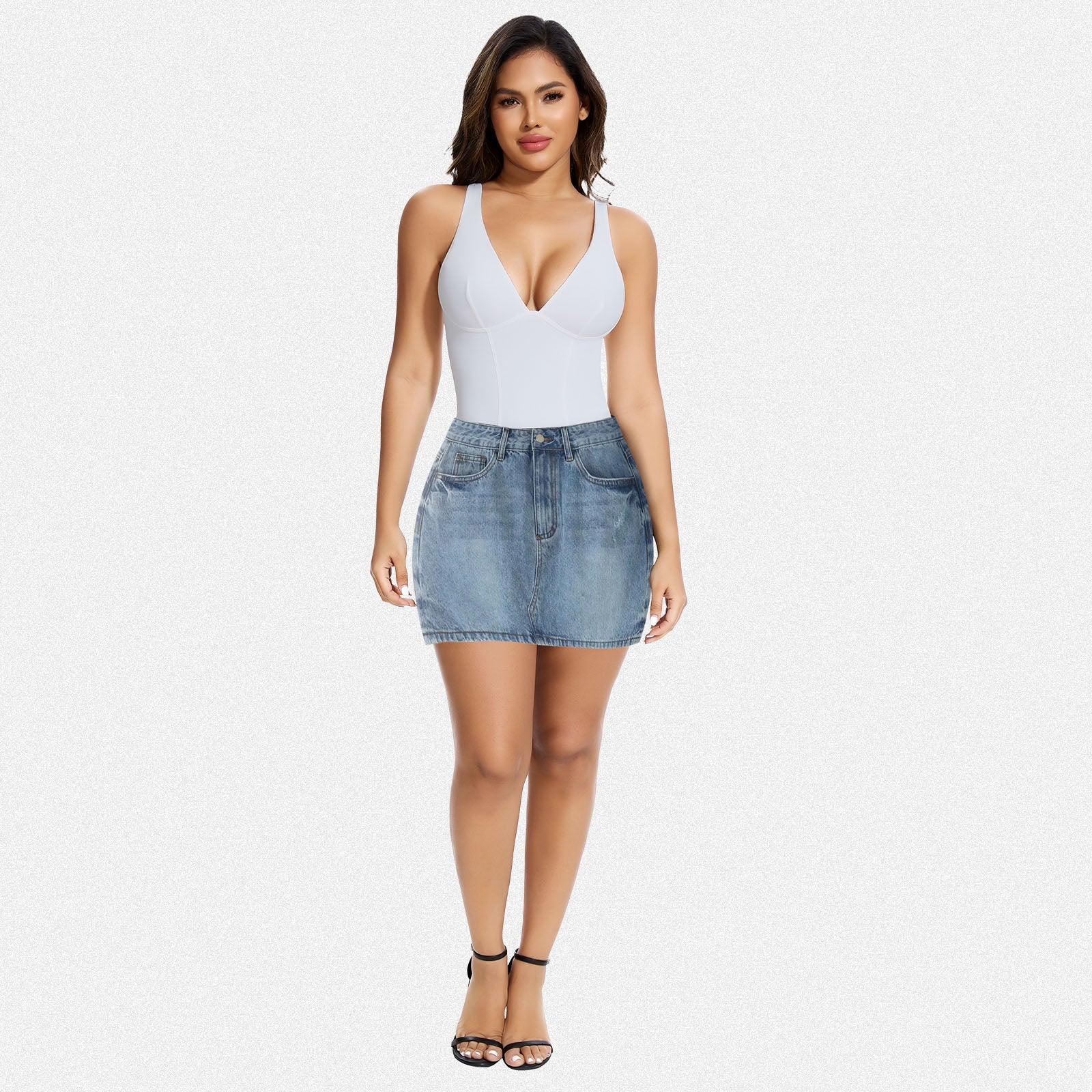 Shaperin Faux Denim Shapewear Bodysuit Tummy Control