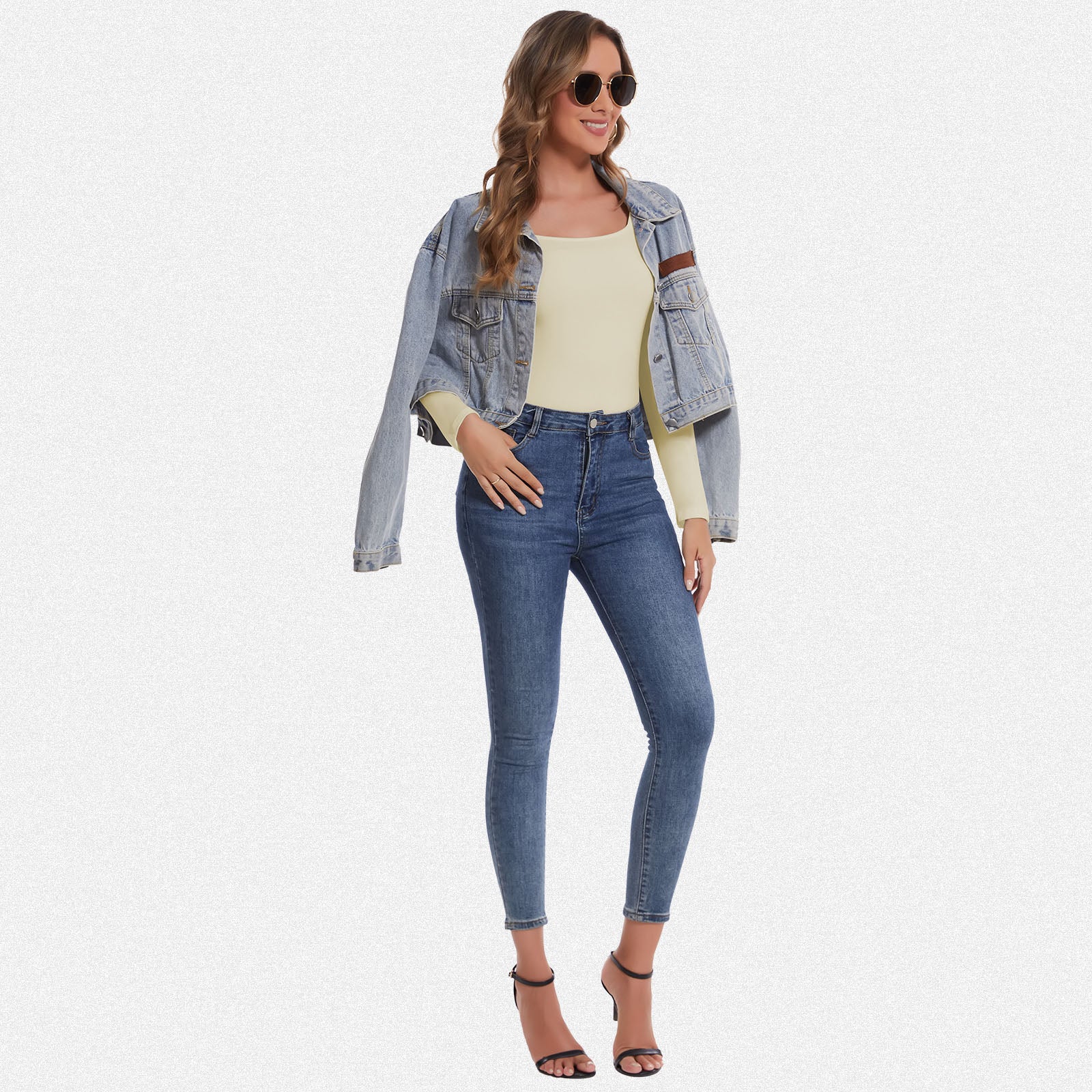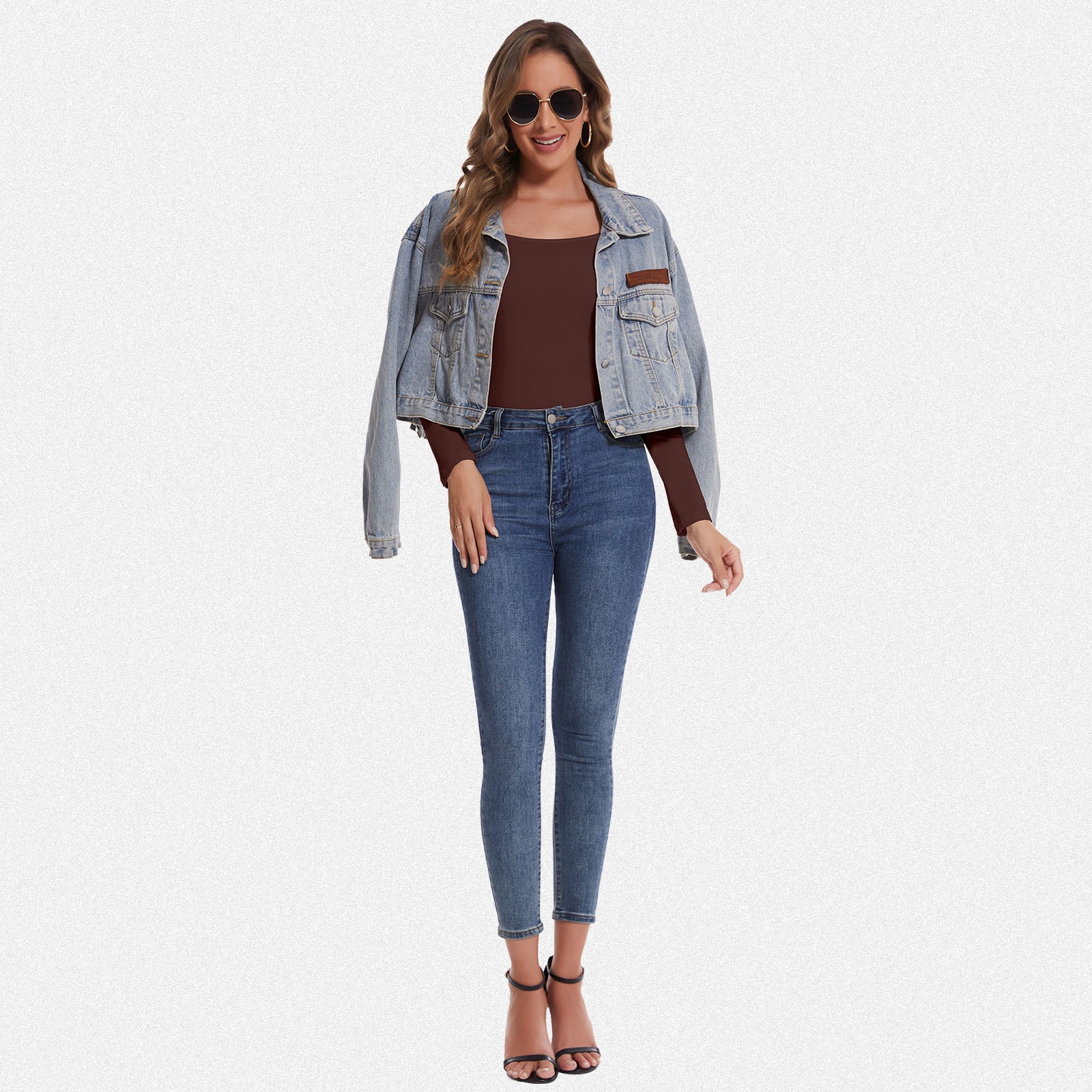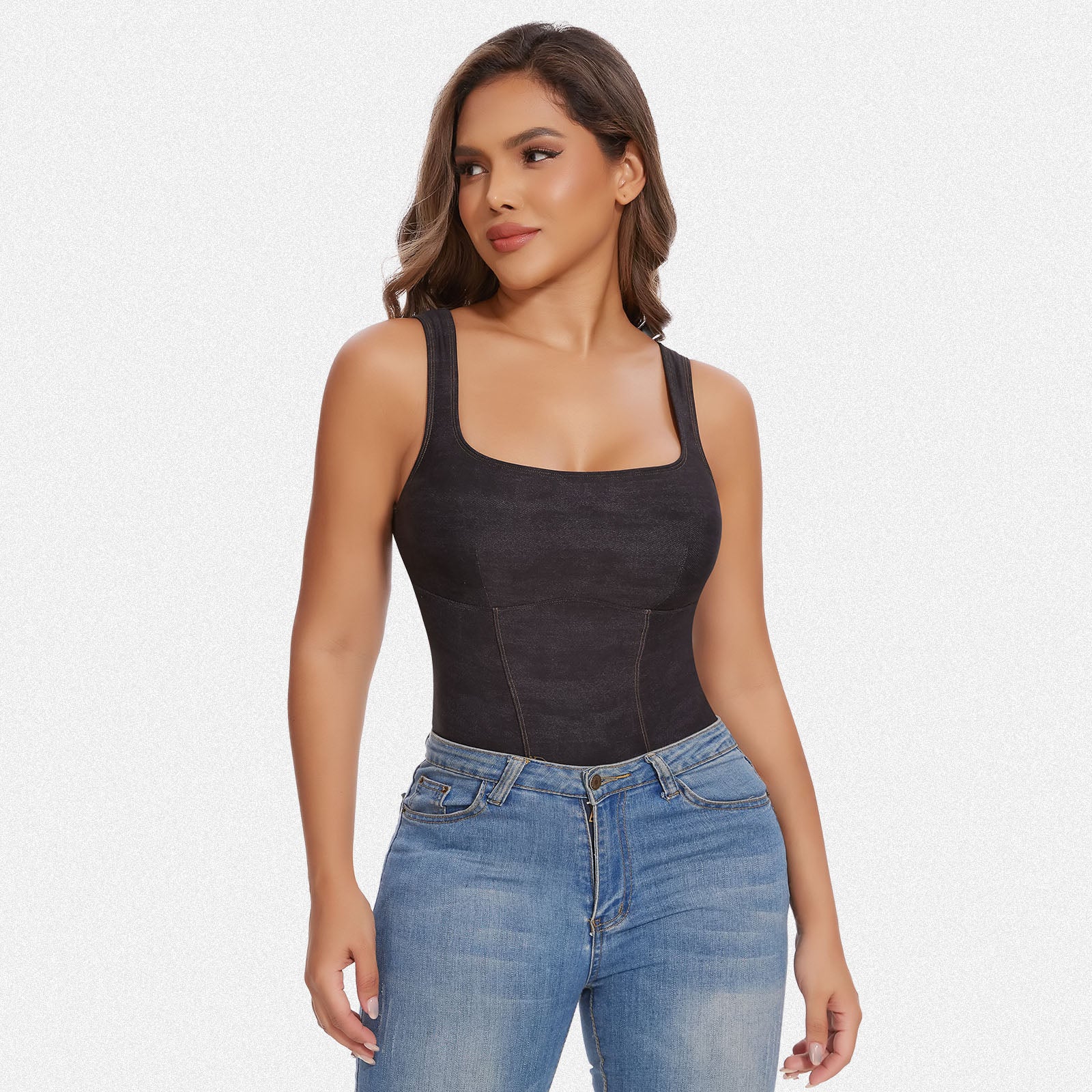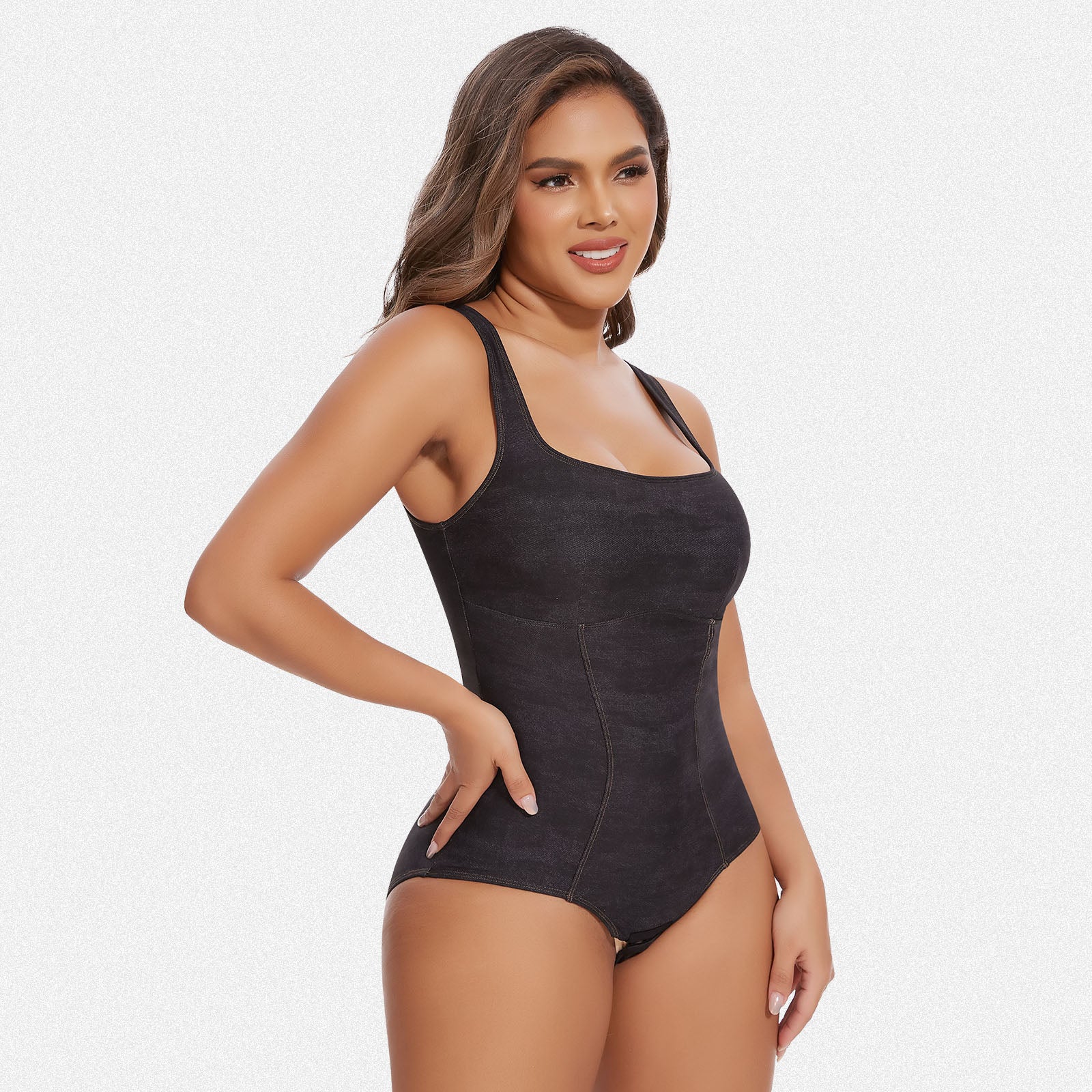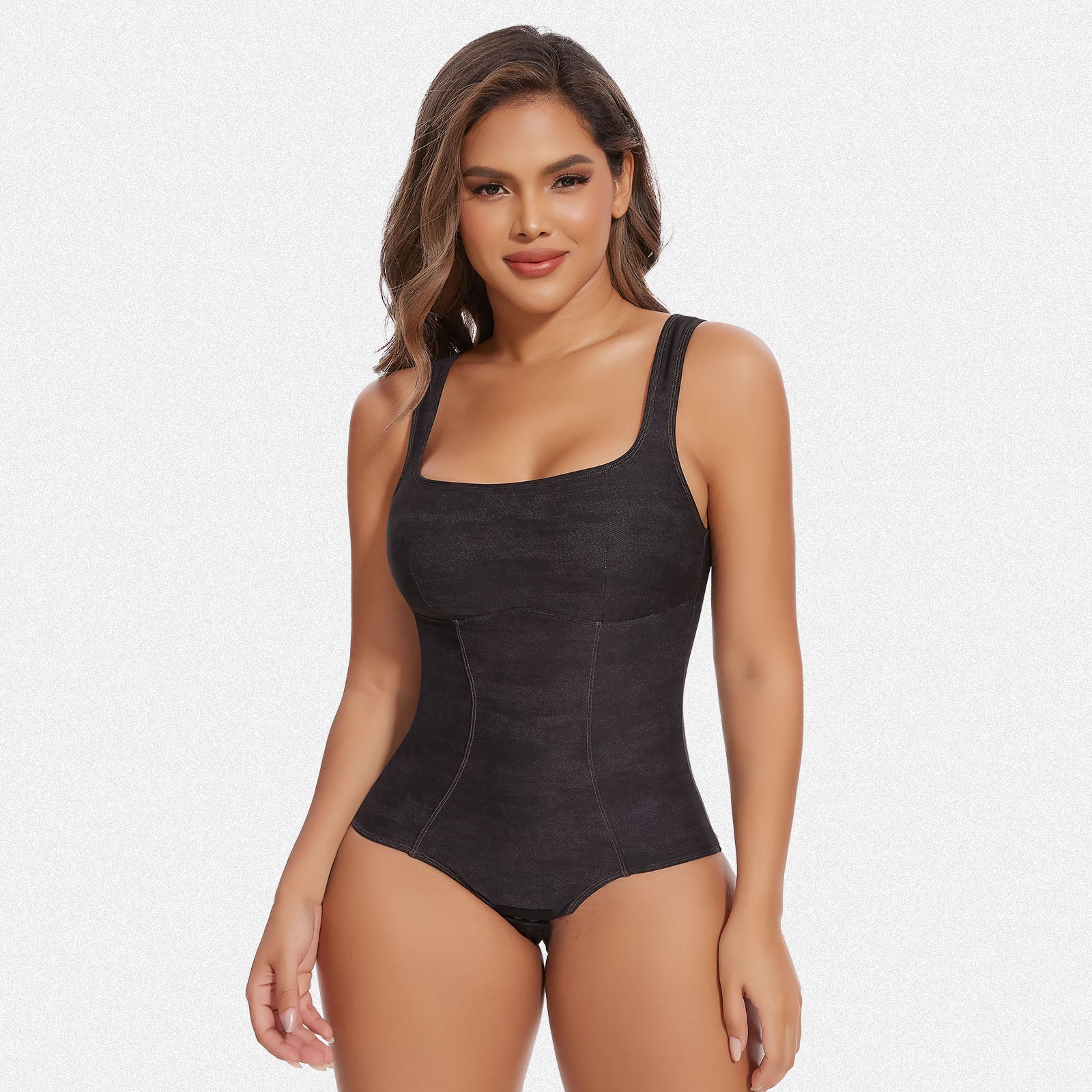 Shaperin Square Neck Faux Denim Shapewear Bodysuit