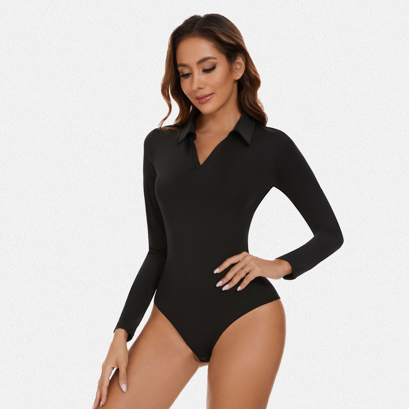 Shaperin V Neck Polo Long Sleeve Bodysuit