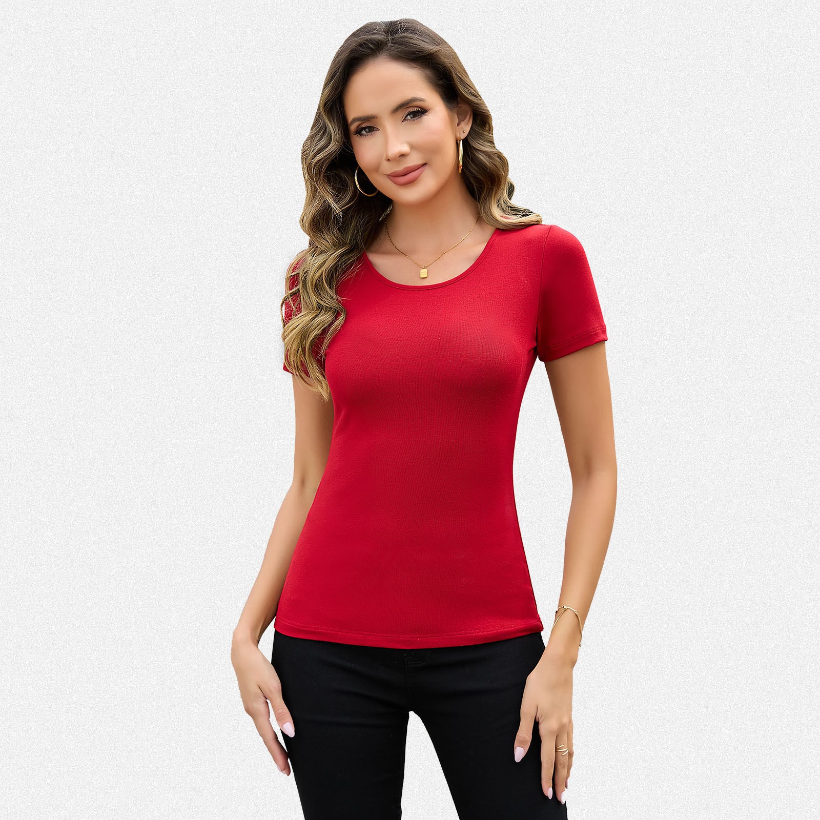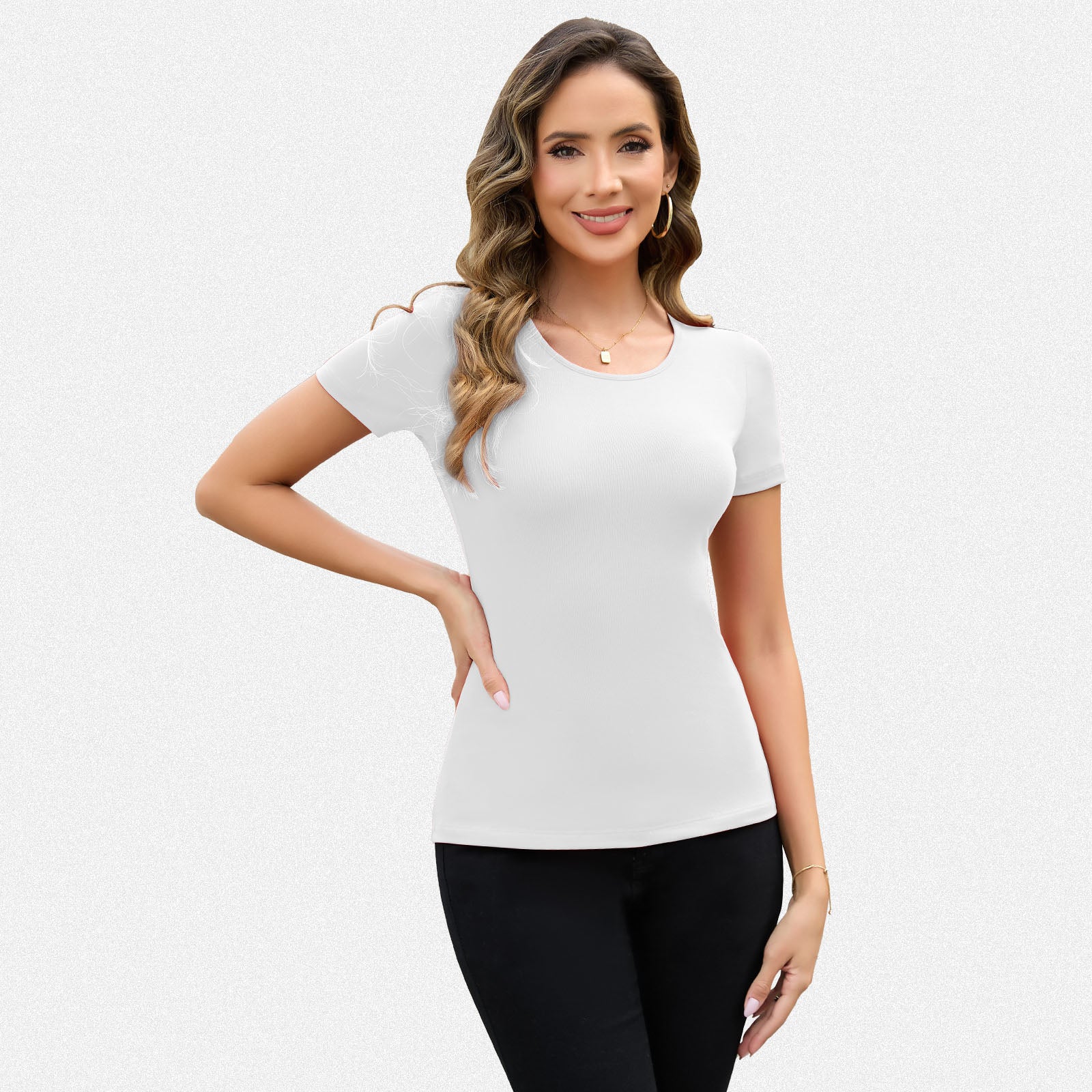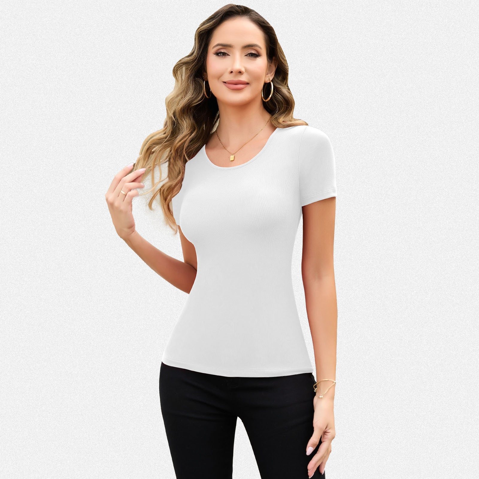 Shaperin Short Sleeve Crewneck Tops Slim Fit Blouse Round Neck T-Shirt