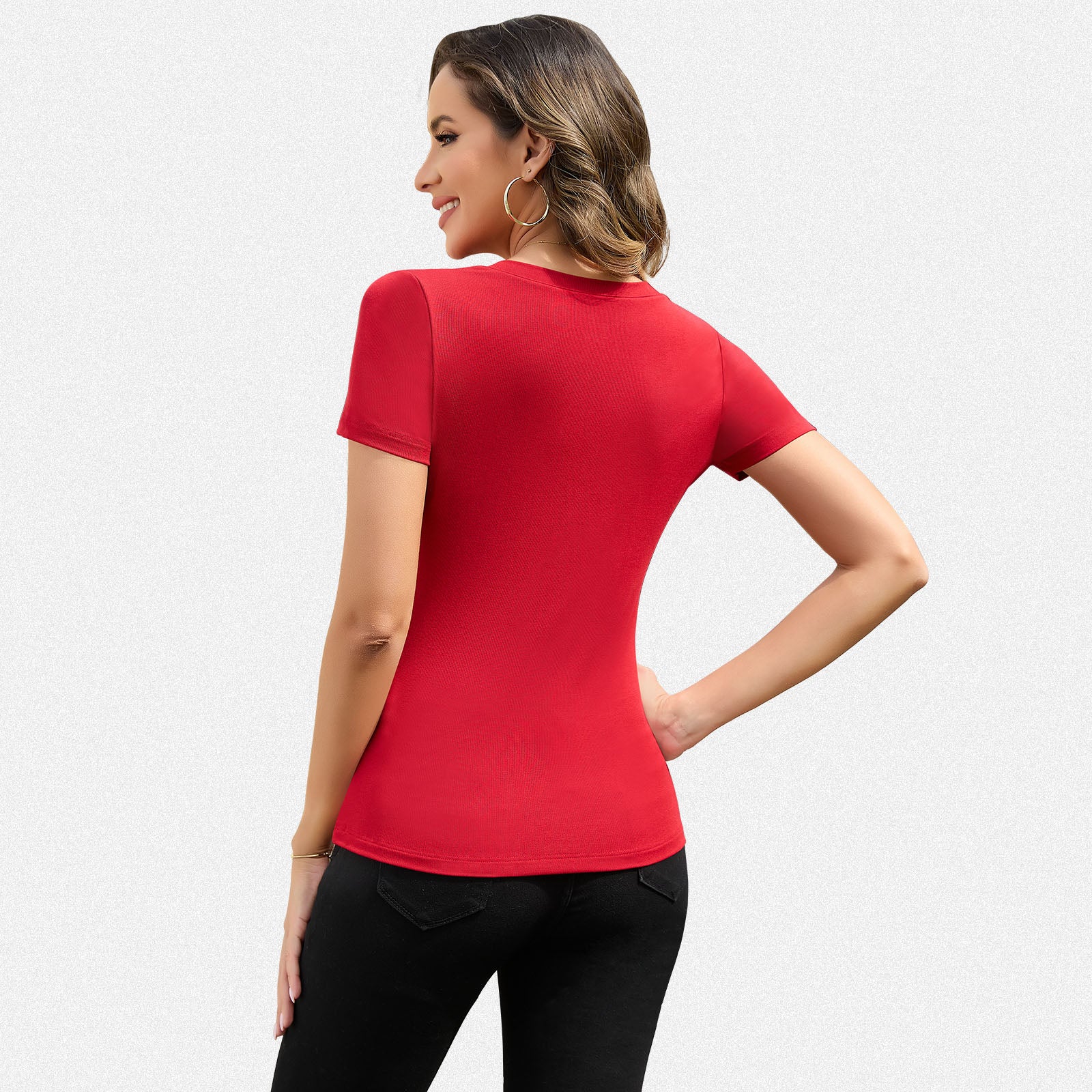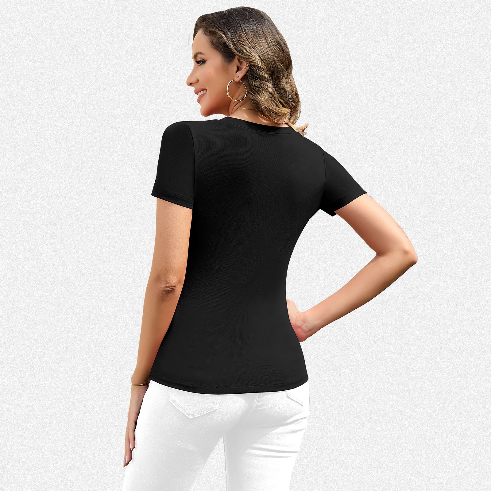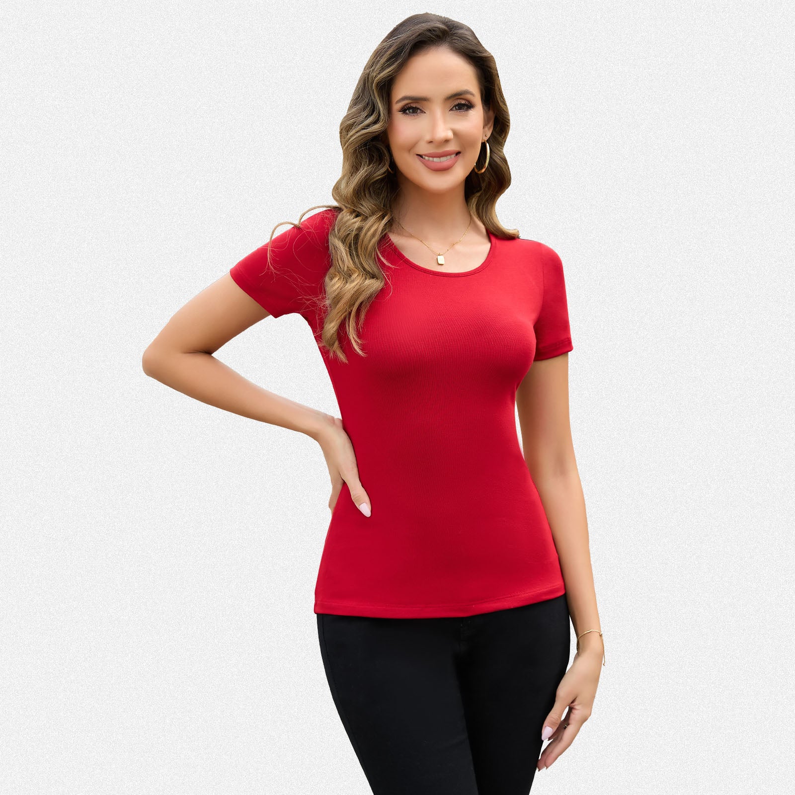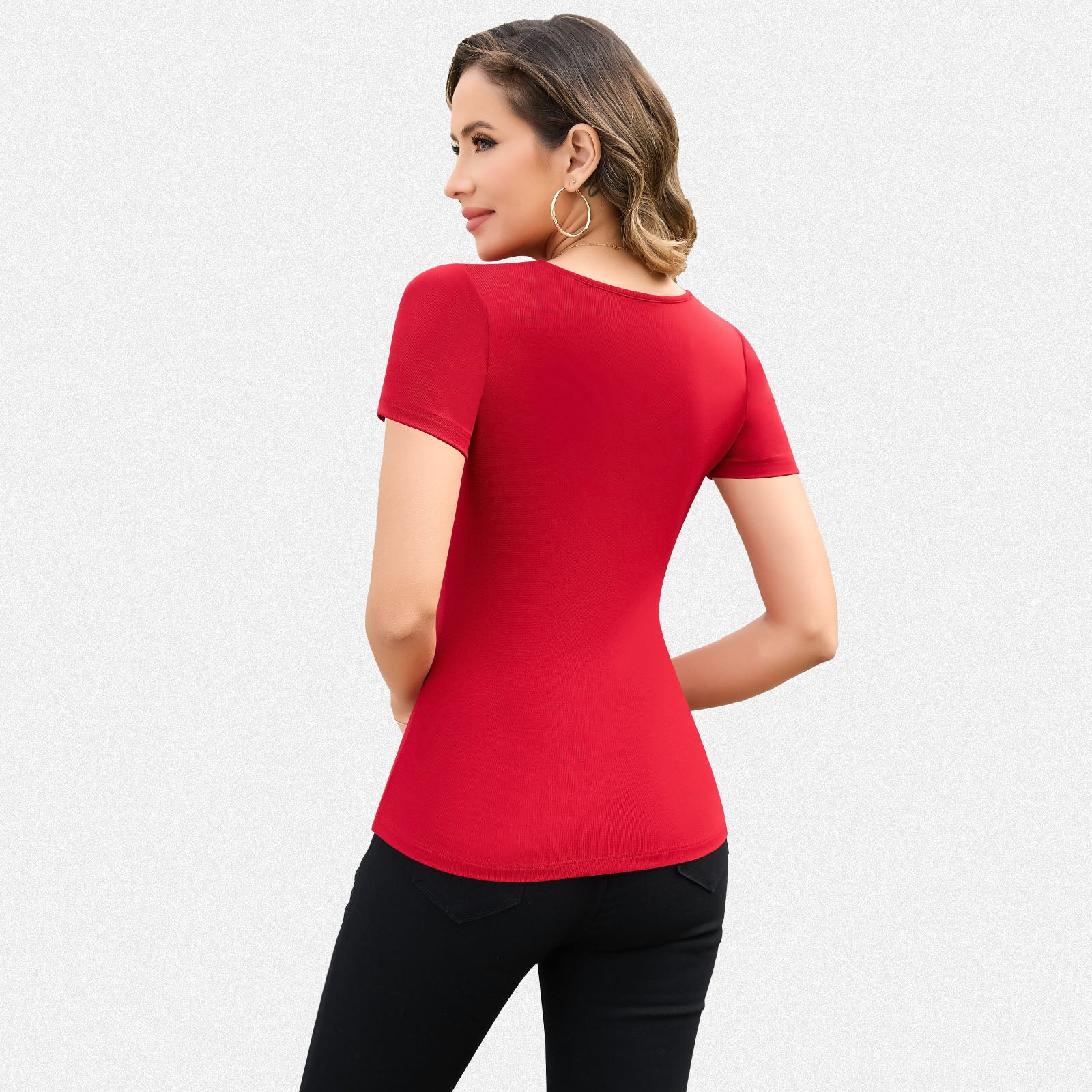 Shaperin Short Sleeve Crewneck Tops Slim Fit Blouse Round Neck T-Shirt