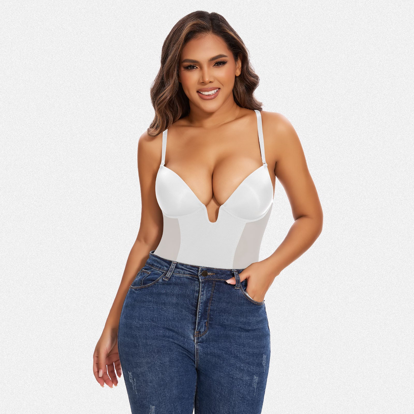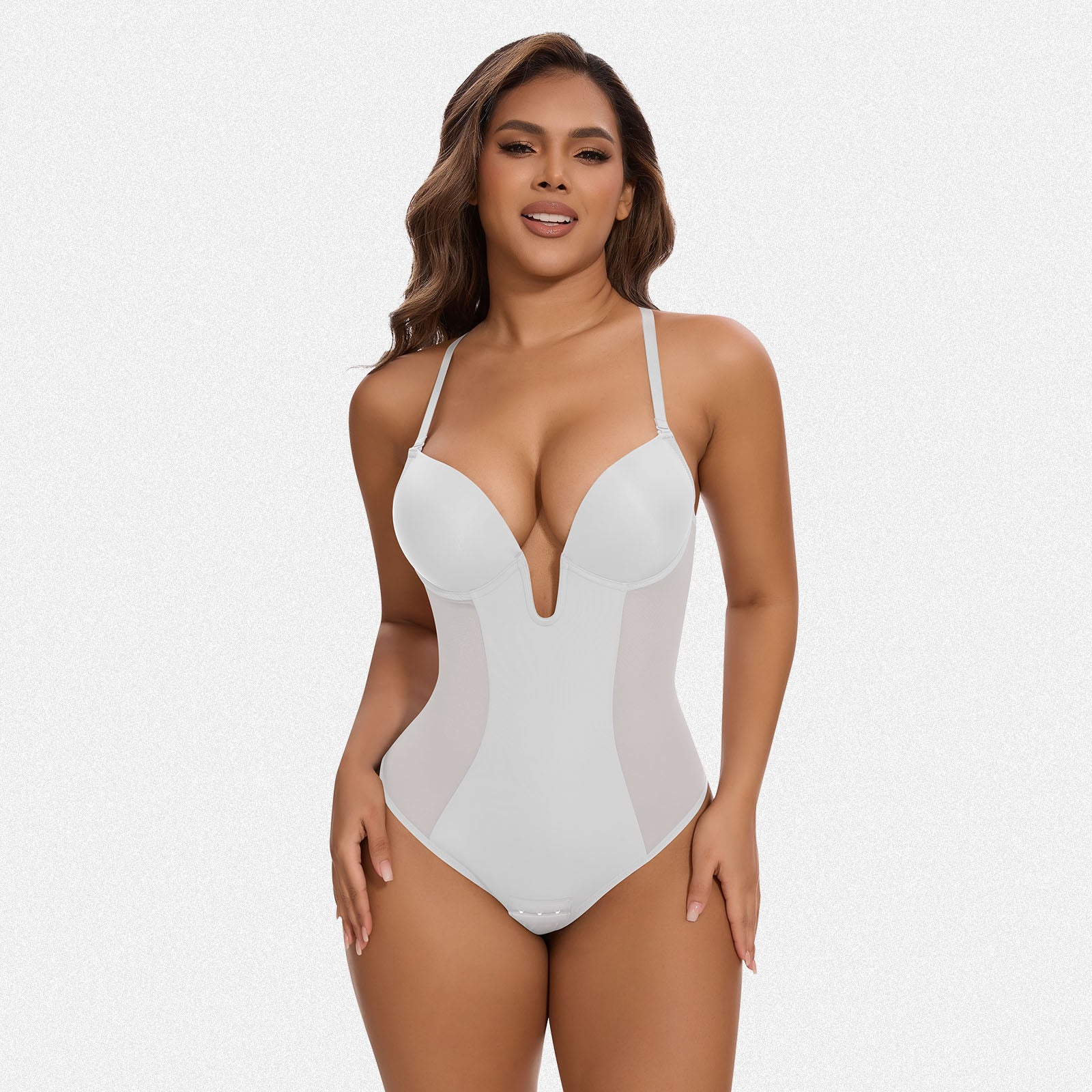 Shaperin Deep V Plunge Back Thong Shapewear Backless Tummy Control Bodysuit