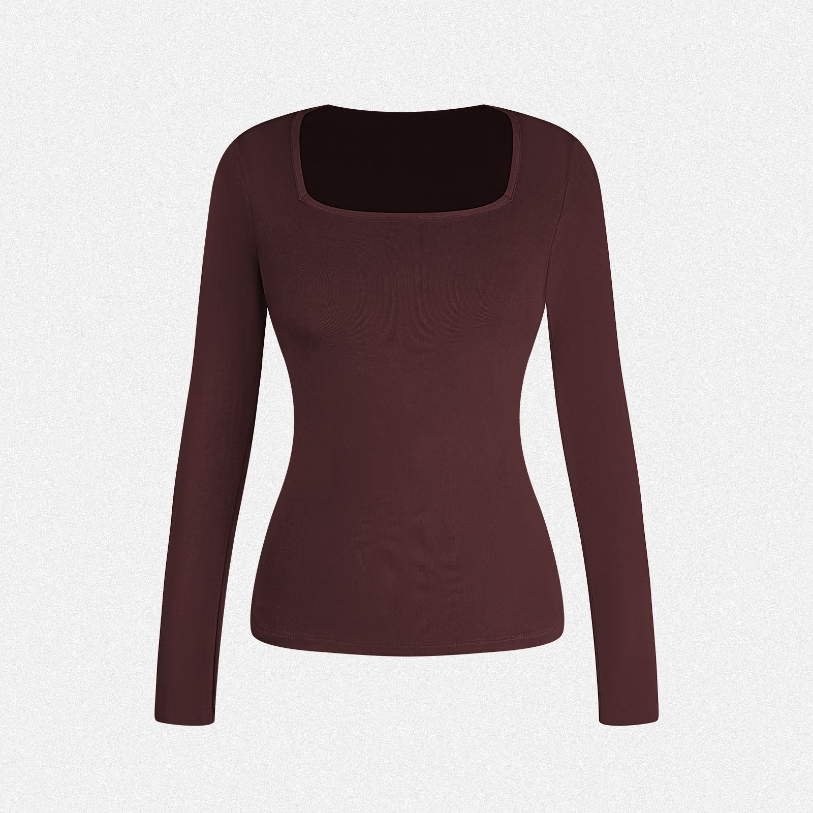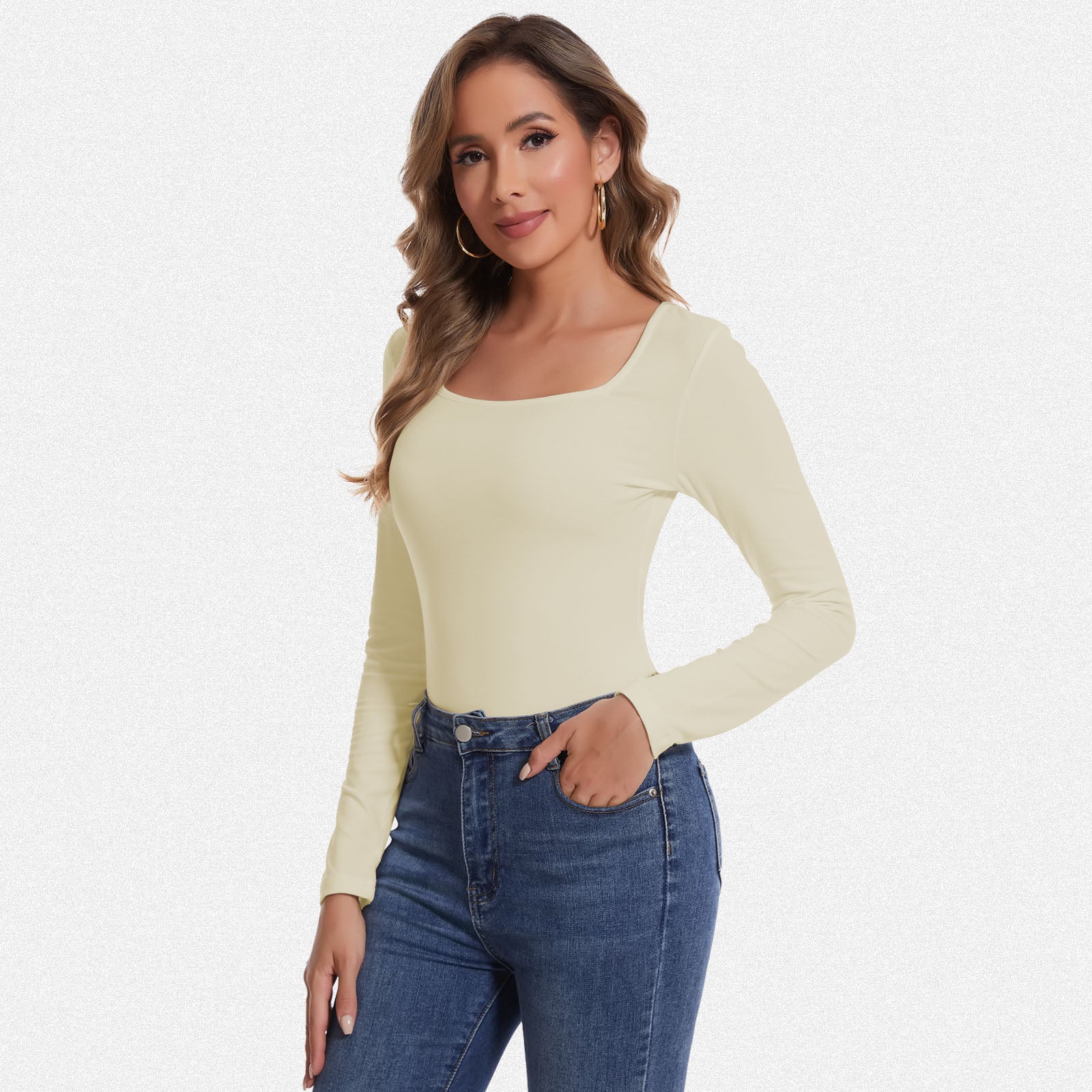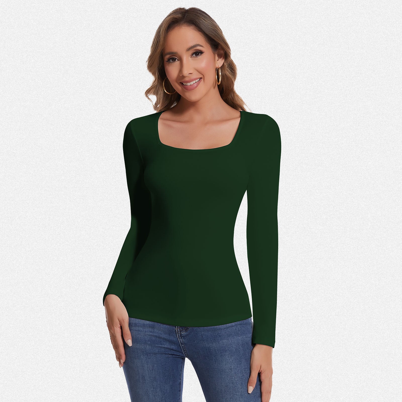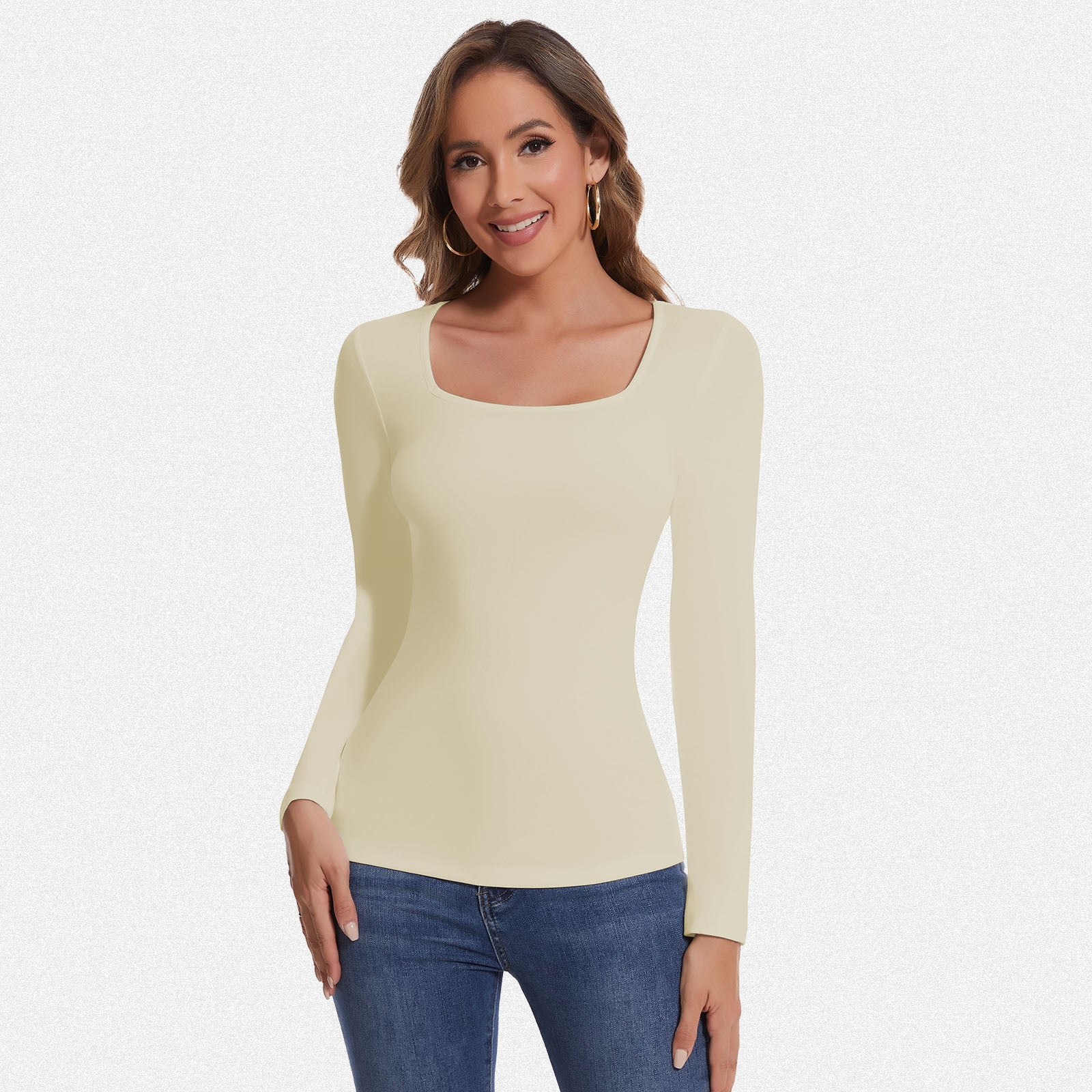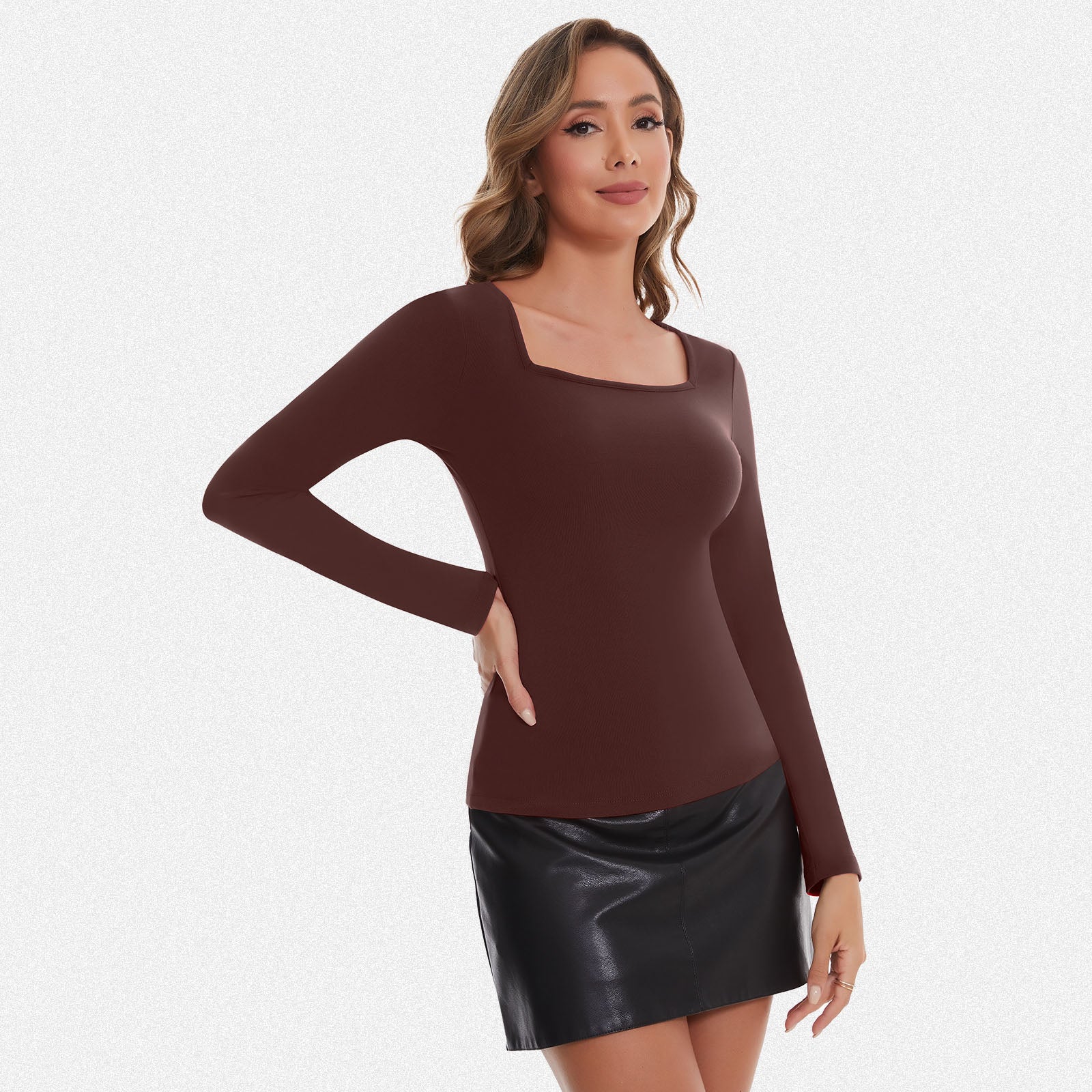 Shaperin Long Sleeve Square Neck Basic Slim Fit Top