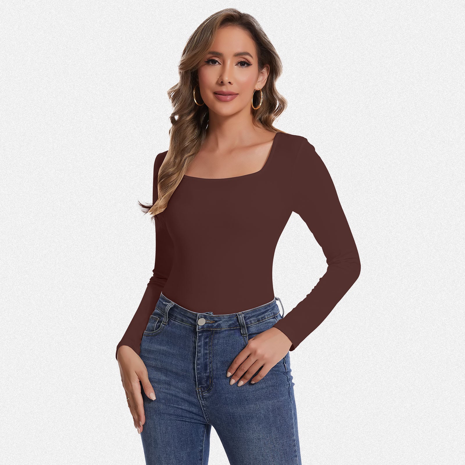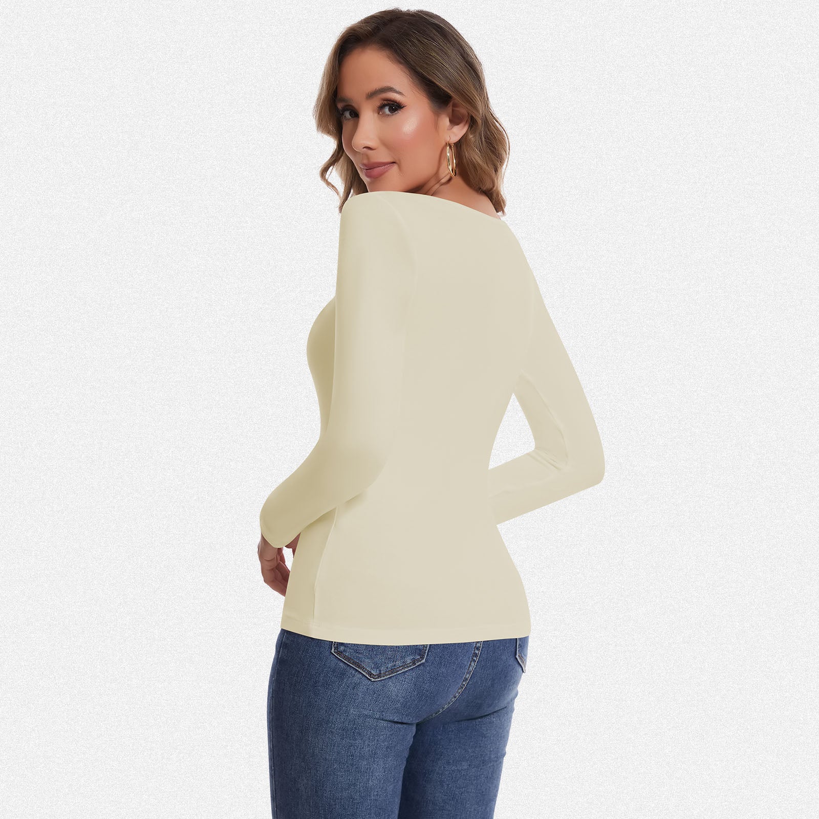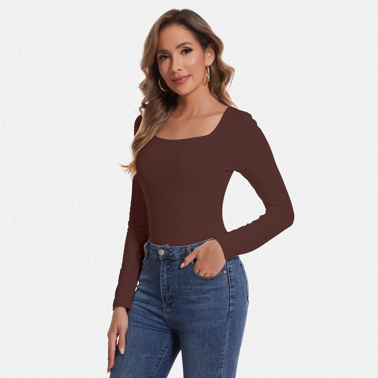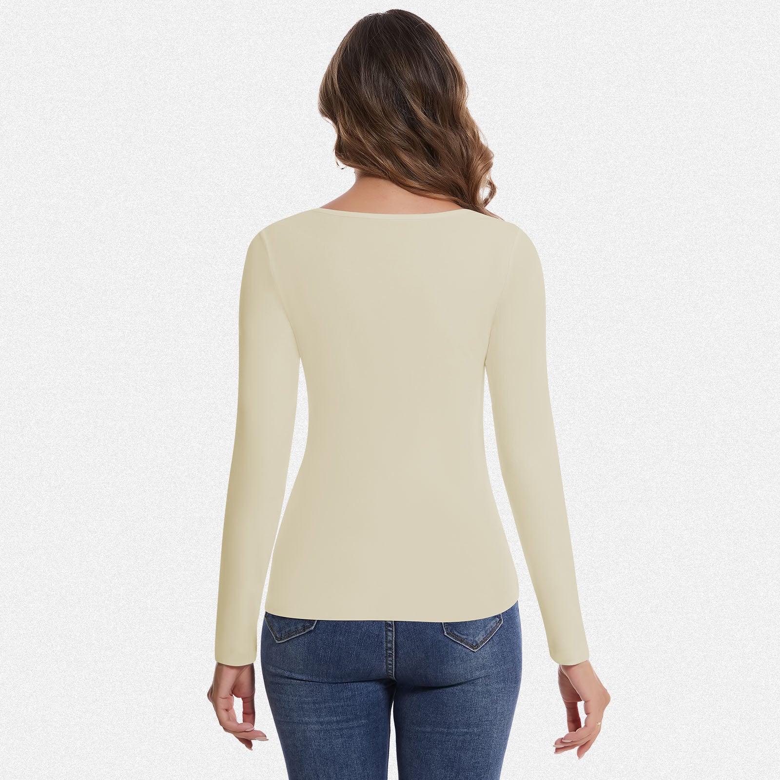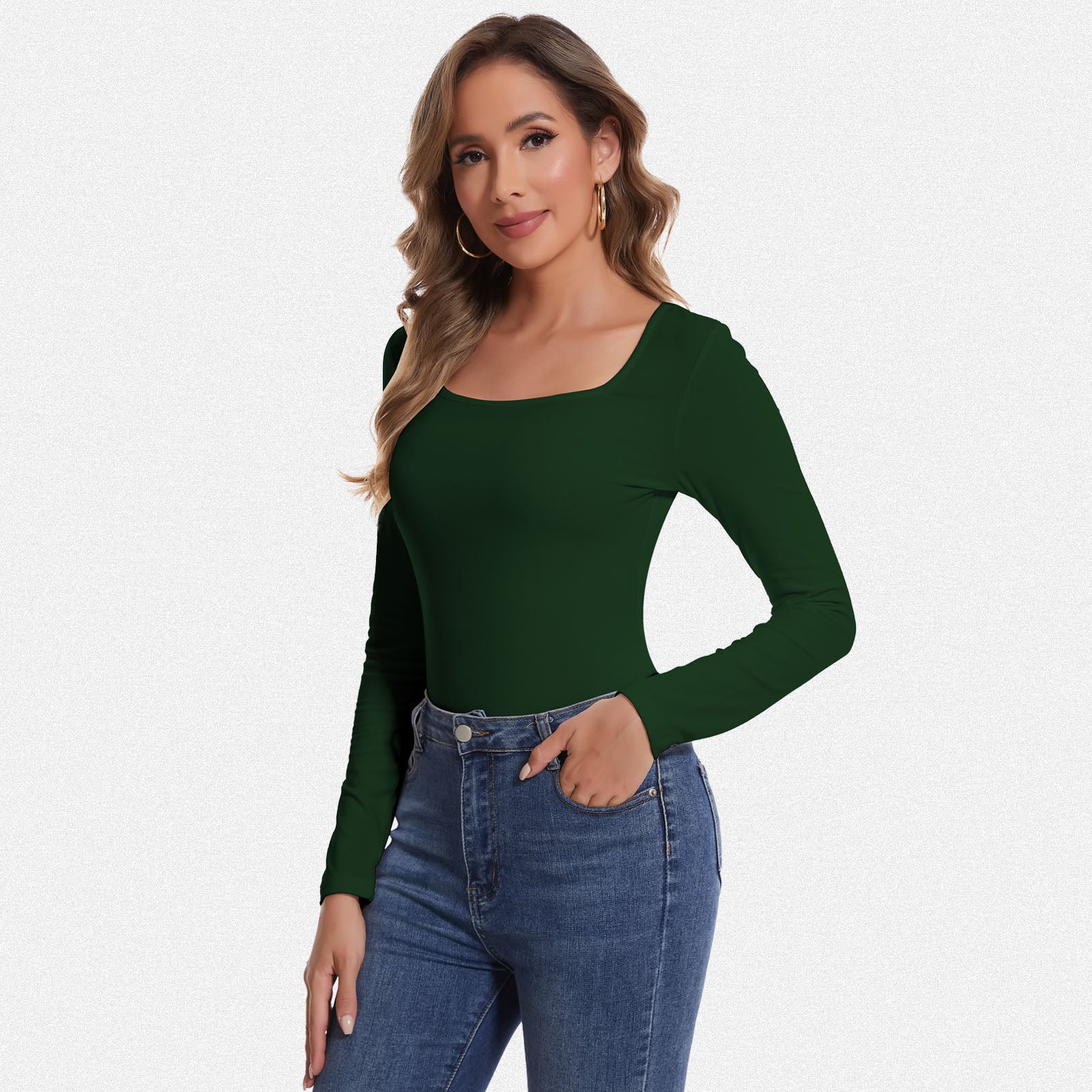 Shaperin Long Sleeve Square Neck Basic Slim Fit Top