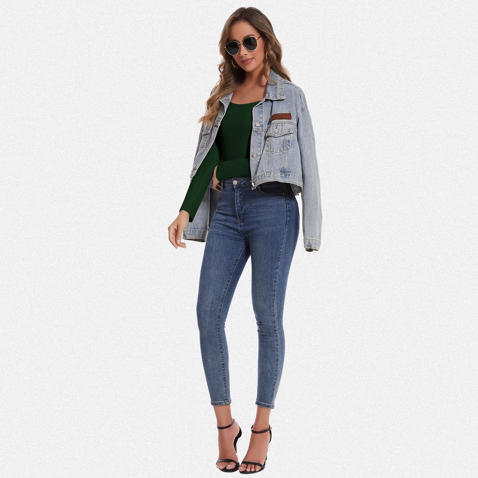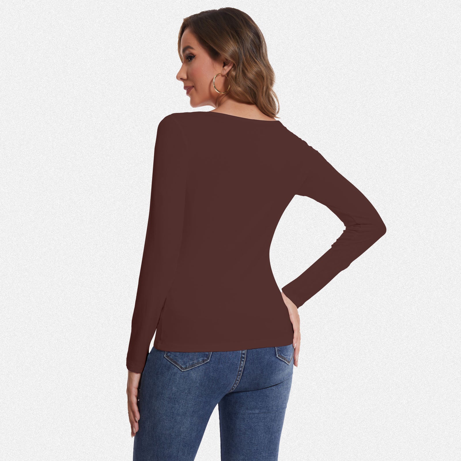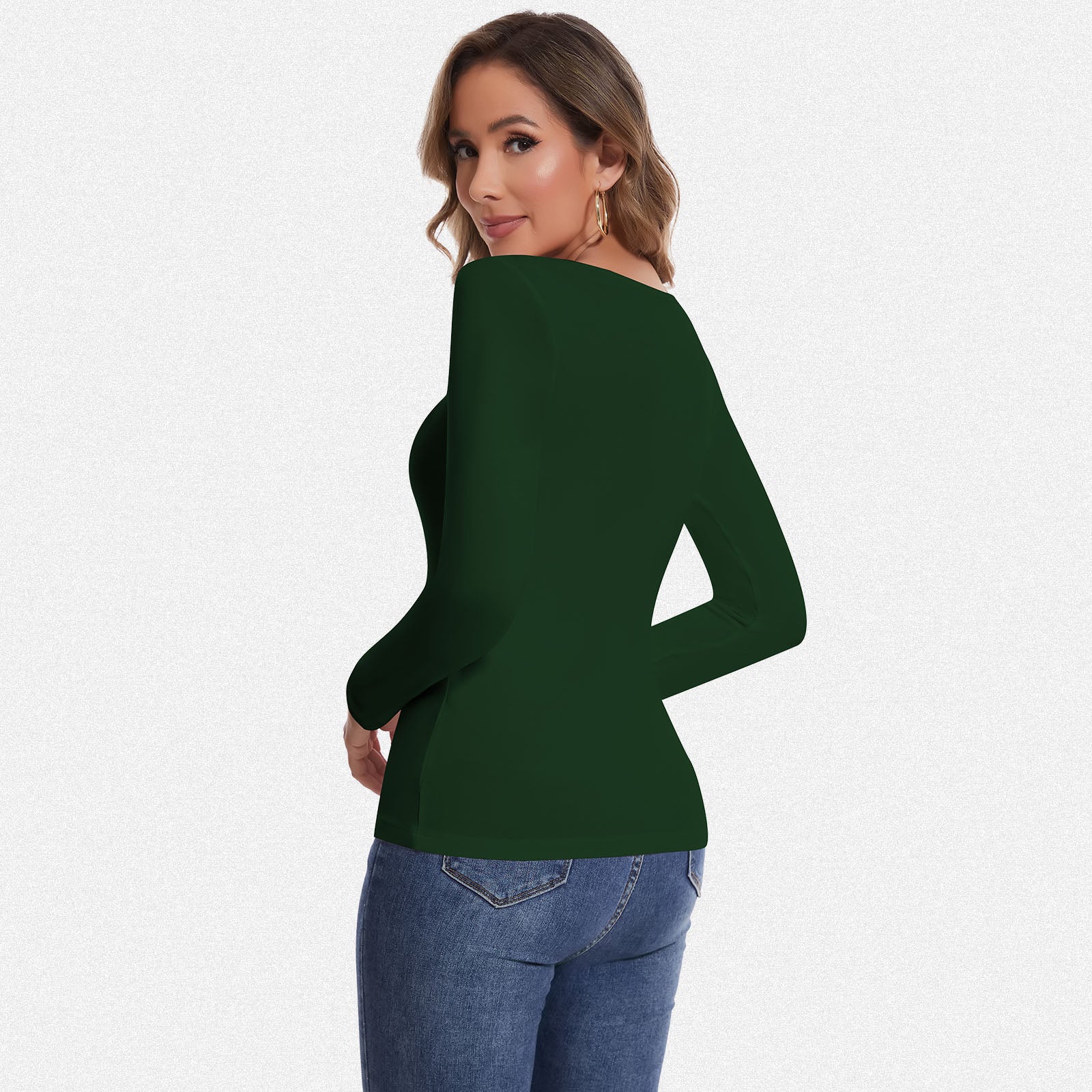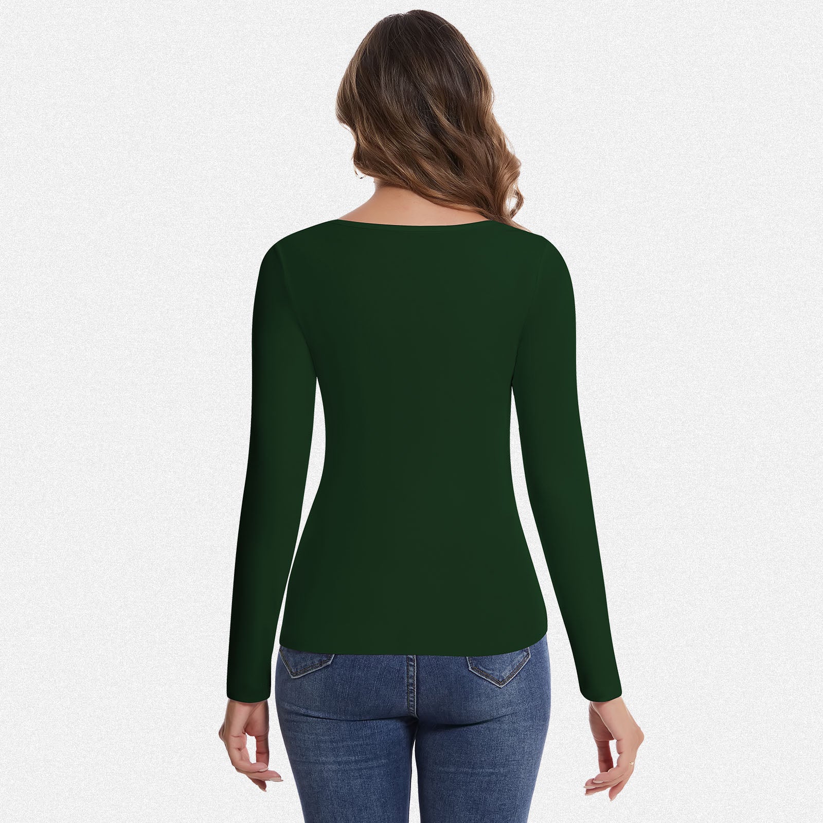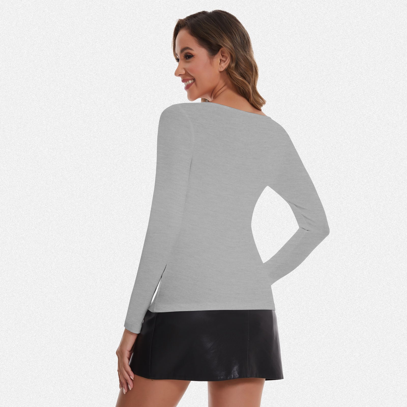 Shaperin Long Sleeve Square Neck Basic Slim Fit Top