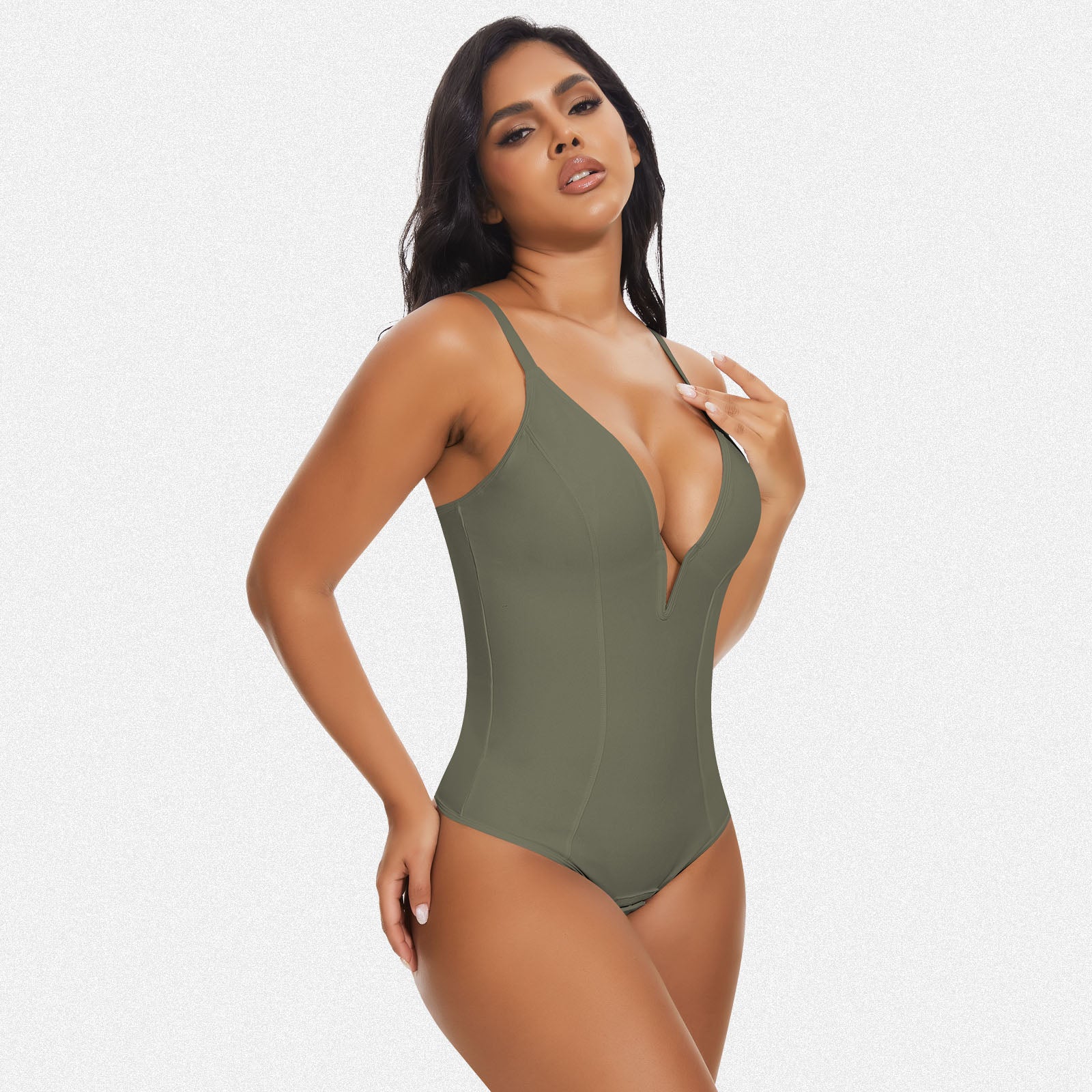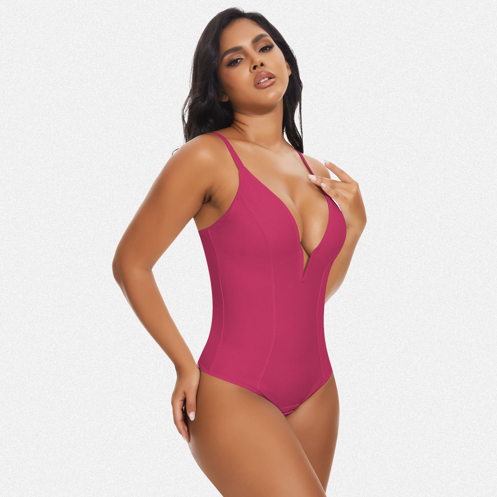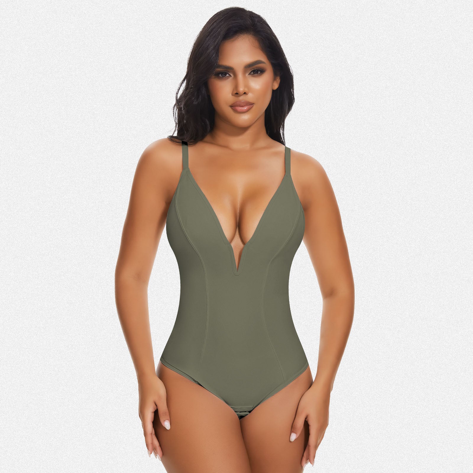 Shaperin Shapewear Bodysuit Deep V Neck Thong