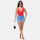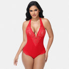 Lace Deep-V Convertible Design: Elegant lace deep-V neckline with halter or shoulder strap options for versatile styling.