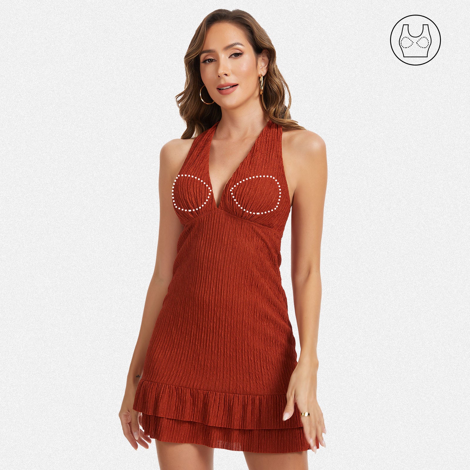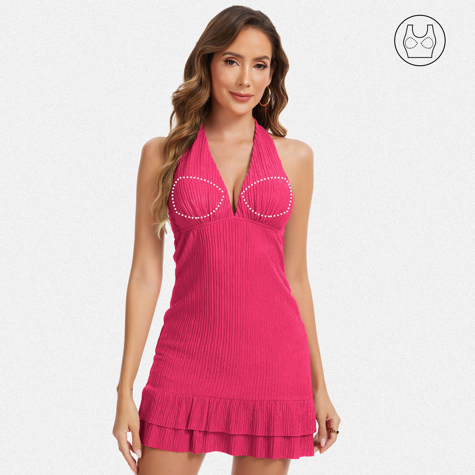 Shaperin Halter Deep V Ruched Backless Mini Dress with Built-In Bra