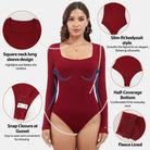 The Shaperin Square Neck Long Sleeve Bodysuit Top combines timeless style with everyday comfort. Made from soft ribbed fabric with a cozy fleece lining, it keeps you warm while remaining breathable and stretchy. The classic square neckline enhances the neckline with a chic and flattering touch, while the slim-fit silhouette smooths your curves for an elegant look. Designed with a half-coverage bottom for comfort and a snap closure for easy wear, this bodysuit is perfect to pair with jeans, skirts, or layered under blazers for versatile styling.