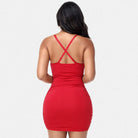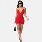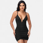 SHAPERIN Deep V Leather Bodycon Dress with Built-in Shapewear
